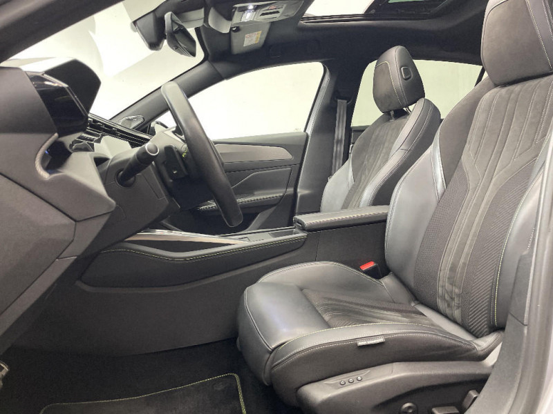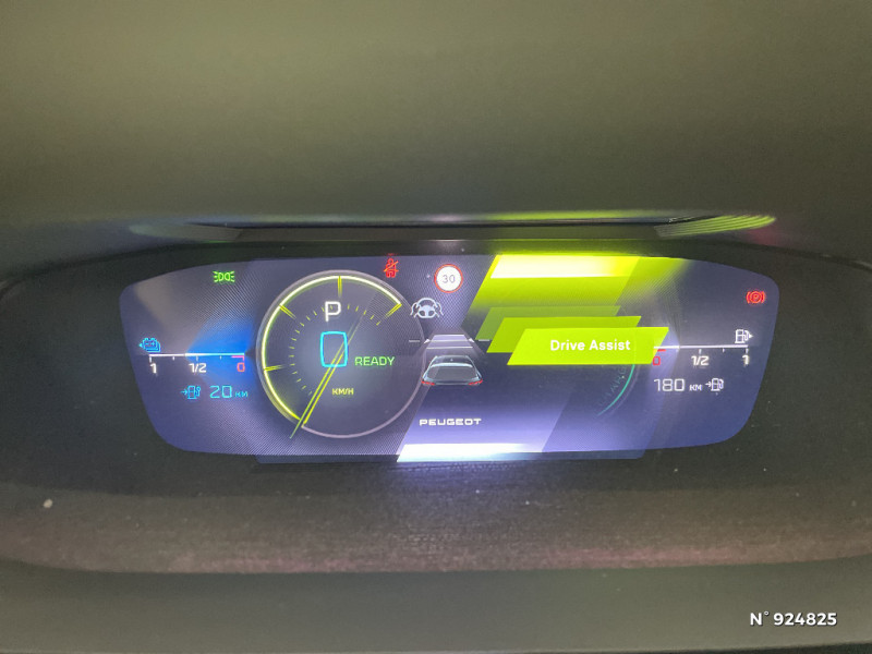 Pack Drive Assist Plus / VisioPark 360 / Décor Alu sur panneaux de porte / Elargisseurs de pare chocs AV et de bas de caisse latéraux / Planche de bord avec jonc transversal chromé, décor Alu et surpiqûres Vert / Siège conducteur AGR électrique à mémoire (longueur, inclinaison, hauteur, site, lombaire pneumatique et nez de coussin manuel). Siège passager à réglage mécanique en hauteur et lombaire pneumatique. Sièges AV chauffants, massants / Système Hi Fi Premium FOCAL 10 HP / Pack Drive Assist / Pack Safety Plus / Fonction Mirror Screen (Apple CarPlay/Android Auto) sans fil / Feux diurnes à LED sous projecteurs nouvelle signature Peugeot / Smart Multidrive: personnalisation du combiné et éclairage d'ambiance LED intérieur associés aux modes de conduite / Rétroviseurs extérieurs électriques, dégivrants et rabattables électriquement avec répétiteurs de feux clignotants à LED / Chargeur embarqué 3,7 kW / Projecteurs Peugeot Matrix LED / Feux AR spécifiques avec allumage dynamique griffe à griffe / Teinte métallisée Vert Olivine / 2 télécommandes 3 boutons / Diffuseurs d'air AR / Lève-vitres électriques AV et AR et séquentiels avec anti-pincement / Peugeot i-Cockpit 3D avec combiné d'instrumentation numérique personnalisable / Clean Cabin avec capteur de particules dans l'habitacle / Jantes alliage 18" Portland diamantées et vernies en Noir / Navigation connectée avec écran central tactile 10'' et écran avec i-Toggles virtuels personnalisables. Reconnaissance vocale en langage naturel. / Rétroviseurs extérieurs avec éclairage d'approche / Volant Cuir chauffant / 2 prises USB-C à l'AR / PEUGEOT Connect SOS & Assistance / Surveillance d'angles morts longue portée (Lane Change Assit) / Pare-brise teinté feuilleté acoustique / Driver Sport Pack / 4 poignées de maintien (2 à l'AV et 2 à l'AR) / Kit de dépannage de pneumatique : compresseur 12 volts, flacon de produit de colmatage, anneau de remorquage, deux cales de roue, manivelle de frein de stationnement électrique / Airbags frontaux conducteur et passager adaptatifs (passager neutralisable par clé), airbags latéraux conducteur et passager AV, airbags rideaux de tête aux places AV et AR / Rétroviseur intérieur photosensible sans cadre, avec témoin lumineux de roulage en mode Electric / Accès et démarrage mains libres / Bandeau entre feux AR noir brillant / Surtapis AV et AR / Pédalier Sport aluminium et repose pied en aluminium / Trappe à skis / Sélecteur de modes (Electric, Hybrid, Sport) / Garnissage tri-matières TEP/Alcantara Fraxx Knit, surpiqûres Vert / Navigation connectée / Ceintures de sécurité AV 3 points à enrouleur, réglables en hauteur avec prétensionneurs et limiteurs d'effort / Ceintures de sécurité AR 3 points à enrouleur (x3) avec prétensionneurs et limiteurs d'effort aux places latérales / Vitres latérales AR et lunette AR surteintées / Pré-conditionnement thermique via MyPeugeot ou l?écran central / ESP avec fonction Hill Assist (Aide au démarrage en pente) / Lécheurs de vitres Noir Brillant / Commutation automatique des feux de route / Ciel de pavillon noir / Trappe à ski (Rang 2) / Accoudoir central AV avec compartiment de rangement / Alerte attention conducteur / Pré-conditionnement thermique / Ceintures de sécurité AV 3 points à enrouleur, avec prétensionneurs et limiteurs d'effort / Air Quality System (sonde de pollution, couplée à un filtre à charbon actif Haute Efficacité) / Seuils de porte AV aluminium / 2 prises USB-C à l'AV / Réglage lombaire du siège conducteur / Alerte active de franchissement involontaire de ligne et bas côté / Câble de recharge mode 2 (8A, 1,8 kW, pour prise domestique standard) / Monogrammes latéraux Hybrid / Pack Drive Assist + Rear warning / Garnissage tri-matières TEP/Alcantara Fraxx Knit / Rear Warning / Détection de sous gonflage / Capacité batterie 12,4 kWh / Puissance batterie 100 kW / Frein de stationnement électrique / Alerte de trafic AR transversal (Rear Cross Traffic Alert) / Jupe AR Noir Brillant avec décors chromés / Pare-brise feuilleté acoustique / Calandre AV spécifique Noir verni avec inserts chromés et écopes Noir Brillant / Essuie-vitre AV à déclenchement automatique