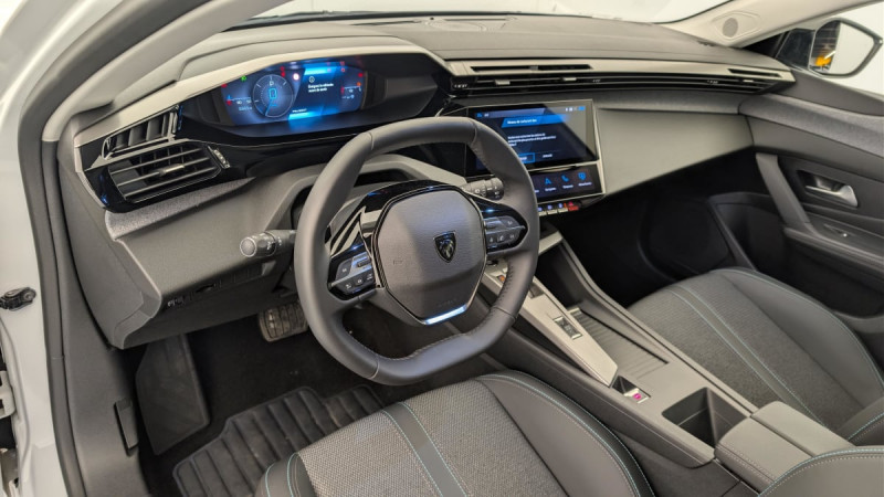 Frein de stationnement électrique / Jantes alliage 17" Halong diamantées / Détection de sous gonflage / Vitres latérales AR et lunette AR surteintées / Alerte attention conducteur / Commutation automatique des feux de route / Rétroviseur intérieur photosensible / Ceintures de sécurité AR 3 points à enrouleur (x3) avec prétensionneurs et limiteurs d'effort aux places latérales / Airbags frontaux conducteur et passager adaptatifs (passager neutralisable par clé), airbags latéraux conducteur et passager AV.airbags rideaux de tête aux places AV/AR / Essuie-vitre AV à déclenchement automatique / Alerte active de franchissement involontaire de ligne et bas côté / Bandeau entre feux AR Noir brillant / Sélecteur mode de conduite Eco et Sport / Lève-vitres électriques AV/ AR et séquentiels avec anti-pincement / Rétroviseurs extérieurs électriques, dégivrants et rabattables électriquement, avec répétiteurs de feux clignotants à LED / Peugeot i-Cockpit avec combiné d'instrumentation numérique 10'' personnalisable / Feux diurnes à LED sous projecteurs nouvelle signature Peugeot / Fonction Mirror Screen (Apple CarPlay/Android Auto) sans fil / Ceintures de sécurité AV 3 points à enrouleur, avec prétensionneurs et limiteurs d'effort / ESP avec fonction Hill Assist (Aide au démarrage en pente) / Accoudoir central AV avec compartiment de rangement / Garnissage tri-matières TEP/Tissu Falgo, surpiqûres Bleu / Pare-brise teinté feuilleté acoustique / Pack Drive Assist : Régulateur de vitesse adaptatif avec fonction Stop&Go / Pack Safety Plus : Active Safety Brake piloté par caméra et radar / Réglage lombaire du siège conducteur / Boîte de vitesse automatique, séquentielle (6 rapports) / / Véhicules équivalents: Megane - C4 - Mazda 3