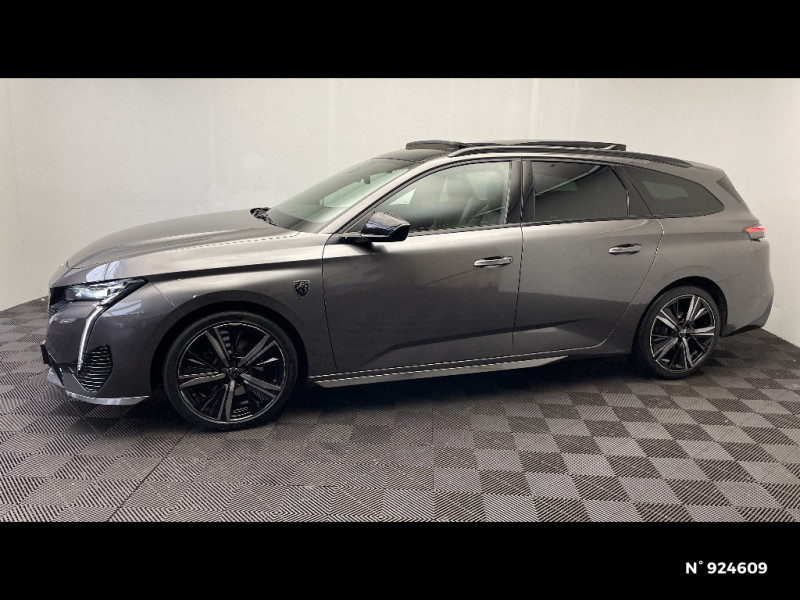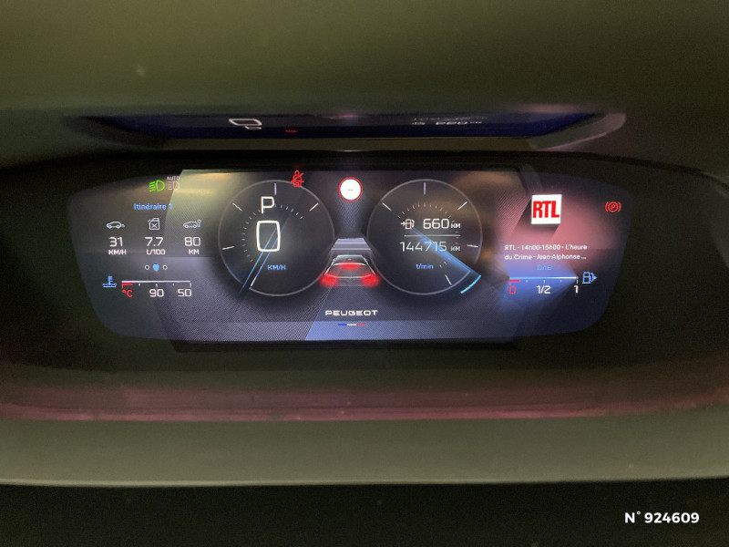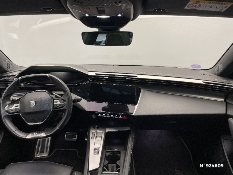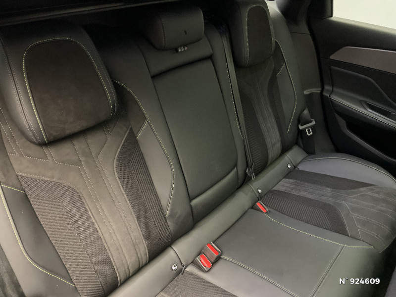 Projecteurs Peugeot Matrix LED / Sélecteur mode de conduite Eco et Sport / Kit de dépannage de pneumatique : compresseur 12 volts, flacon de produit de colmatage, anneau de remorquage, deux cales de roue, manivelle de frein de stationnement électrique / Prise 12V dans le coffre / Frein de stationnement électrique / Planche de bord avec jonc transversal chromé, décor Alu et surpiqûres Vert / Décor Alu sur panneaux de porte / Peugeot i-Cockpit 3D avec combiné d'instrumentation numérique personnalisable / Essuie-vitre AV à déclenchement automatique / Rétroviseurs extérieurs électriques, dégivrants et rabattables électriquement avec répétiteurs de feux clignotants à LED / Seuils de porte AV aluminium / Fixations pour 2 sièges enfants ISOFIX, aux places AR, inclus Top Tether / Rear Warning / 2 prises USB-C à l'AV / Détection de sous gonflage / Pédalier Sport aluminium et repose pied en aluminium / Alerte attention conducteur / Rétroviseur intérieur photosensible sans cadre / Commutation automatique des feux de route / Lécheurs de vitres latérales Noir Brillant / Driver Sport Pack / 4 poignées de maintien (2 à l'AV et 2 à l'AR) / Pack Safety Plus / Pack Drive Assist / Surtapis AV et AR / Pack Drive Assist + Rear warning / Pack Drive Assist Plus / VisioPark 360 / Alerte active de franchissement involontaire de ligne et bas côté / Plancher de coffre 2 positions / Diffuseurs d'air AR / Ciel de pavillon noir / Feux diurnes à LED sous projecteurs nouvelle signature Peugeot / Elargisseurs de pare chocs AV et de bas de caisse latéraux / Monogrammes latéraux emblème Lion / Airbags frontaux conducteur et passager adaptatifs (passager neutralisable par clé), airbags latéraux conducteur et passager AV, airbags rideaux de tête aux places AV et AR / Jupe AR Noir Brillant avec décors chromés / Ceintures de sécurité AV 3 points à enrouleur, avec prétensionneurs et limiteurs d'effort / Calandre AV spécifique Noir verni avec inserts chromés et écopes Noir Brillant / Feux AR spécifiques avec allumage dynamique griffe à griffe / Lève-vitres électriques AV et AR et séquentiels avec anti-pincement / Garnissage tri-matières TEP/Alcantara Fraxx Knit / Clean Cabin avec capteur de particules dans l'habitacle / Jantes alliage 18" Portland diamantées et vernies en Noir / Rétroviseurs extérieurs avec éclairage d'approche / Pare-brise feuilleté acoustique / Smart Multidrive: personnalisation du combiné et éclairage d'ambiance LED intérieur associés aux modes de conduite / Fonction Mirror Screen (Apple CarPlay/Android Auto) sans fil / 2 télécommandes 3 boutons / Volant Cuir chauffant / 2 prises USB-C à l'AR / Garnissage tri-matières TEP/Alcantara Fraxx Knit, surpiqûres Vert / Banquette AR rabattable 40-20-40 déverrouillable depuis le coffre / Vitres de custode AR et lunette AR chauffante temporisée surteintées / Accès et démarrage mains libres / Air Quality System (sonde de pollution, couplée à un filtre à charbon actif Haute Efficacité) / Navigation connectée avec écran central tactile 10'' et écran avec i-Toggles virtuels personnalisables. Reconnaissance vocale en langage naturel. / Volet motorisé mains libres / Navigation connectée / Barres de toit Alu/Noir Onyx / Siège conducteur AGR électrique à mémoire (longueur, inclinaison, hauteur, site, lombaire pneumatique et nez de coussin manuel). Siège passager à réglage mécanique en hauteur et lombaire pneumatique. Sièges AV chauffants, massants / PEUGEOT Connect SOS & Assistance / Surveillance d'angles morts longue portée (Lane Change Assit) / Alerte de trafic AR transversal (Rear Cross Traffic Alert) / Ceintures de sécurité AR 3 points à enrouleur (x3) avec prétensionneurs et limiteurs d'effort aux places latérales