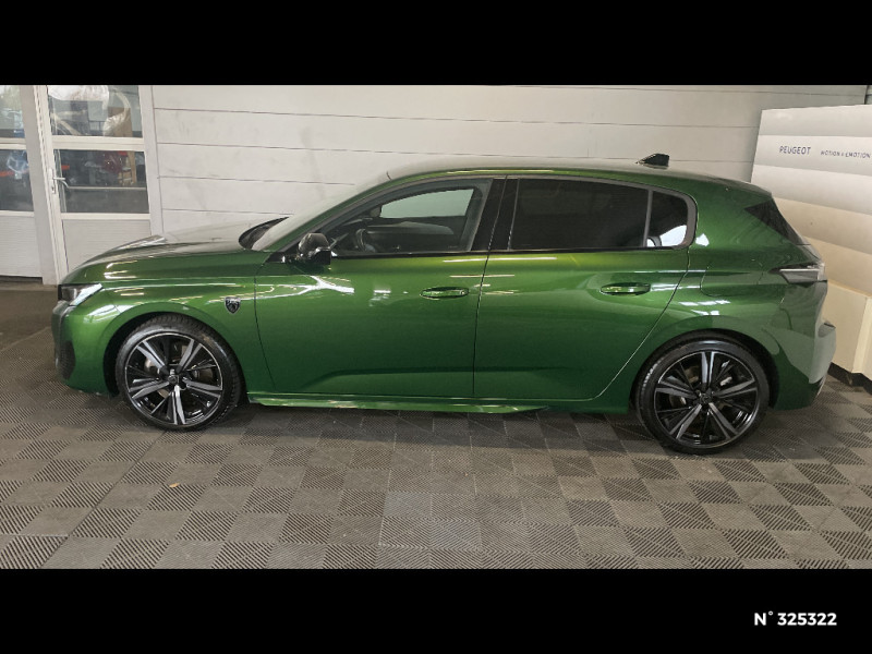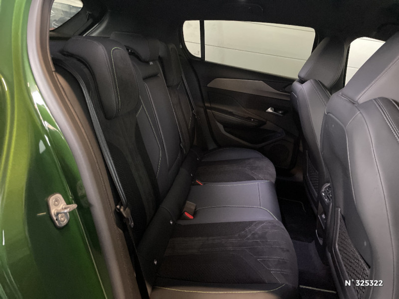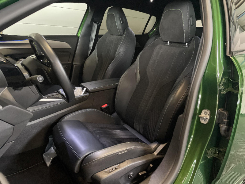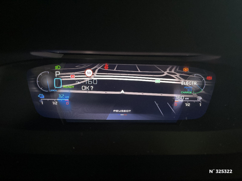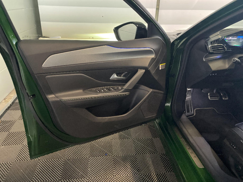 Siège conducteur AGR électrique à mémoire (longueur, inclinaison, hauteur, site, lombaire pneumatique et nez de coussin manuel). Siège passager à réglage mécanique en hauteur et lombaire pneumatique. Sièges AV chauffants, massants / Chargeur embarqué 3,7 kW / Ciel de pavillon noir / Clean cabin avec capteur de particules dans l'habitacle / Commutation automatique des feux de route / Décor Alu sur panneaux de porte / Smart Multidrive: personnalisation du combiné et éclairage d'ambiance LED intérieur associés aux modes de conduite / Sonorité du moteur amplifiée et plus sportive (désactivable) / Surtapis AV/AR / Surveillance d'angles morts longue portée (Lane Change Assit) / Système Hi Fi Premium FOCAL 10 HP Le système Hi- Fi Premium FOCAL est composé de 10 haut parleurs nouvelle génération, d¿un nouveau subwoofer et d¿une amplification renforcée. L¿amplificateur à 12 canaux délivre 690W de puissance. / Teinte métallisée Vert Olivine / Trappe à ski (Rang 2) / Trappe à skis / VisioPark 360° (4 caméras) / Vitres AV feuilletées acoustiques / Vitres latérales AR et lunette AR surteintées / Volant Cuir chauffant / Volant Cuir fleur chauffant / 2 prises USB pour les passagers AR / 2 prises USB-C à l'AR / 2 prises USB-C à l'AV / 2 télécommandes 3 boutons / 4 poignées de maintien (2 à l'AV et 2 à l'AR) / Sélecteur de modes de conduite (Electric, Hybrid, Sport) / Seuils de porte AV aluminium / Fixations pour 2 sièges enfants ISOFIX, aux places AR, inclus Top Tether / Fonction "Mirror Screen" (Apple CarPlay / Android Auto ) / Fonction Mirror Screen (Apple CarPlay/Android Auto) sans fil / Frein de stationnement électrique / Garnissage tri-matières TEP/Alcantara Fraxx Knit / Garnissage tri-matières TEP/Alcantara Fraxx Knit, surpiqûres Vert / Jantes alliage 18" Portland diamantées et vernies en Noir / Jupe AR Noir Brillant avec décors chromés / Kit de dépannage de pneumatique : compresseur 12 volts, flacon de produit de colmatage, anneau de remorquage, deux cales de roue, manivelle de frein de stationnement électrique / Lécheurs de vitres latérales Noir Brillant / Lécheurs de vitres Noir Brillant / Lève-vitres électriques AV/ AR et séquentiels avec anti-pincement / Monogrammes latéraux emblème Lion / Monogrammes latéraux Hybrid / Navigation connectée / Navigation connectée avec écran central tactile 10'' et écran avec i-Toggles virtuels personnalisables. Reconnaissance vocale en langage naturel. / Navigation connectée avec i-Toggles / Pack Drive Assist / Pack Drive Assist + Rear warning / Pack Drive Assist Plus / Pack Safety Plus / Pare-brise feuilleté acoustique / Pare-brise teinté feuilleté acoustique / Pédalier Sport aluminium et repose pied en aluminium / PEUGEOT Connect SOS & Assistance / Peugeot i-Cockpit 3D avec combiné d'instrumentation numérique personnalisable / Planche de bord avec jonc transversal chromé, décor Alu et surpiqûres Vert / Pré-conditionnement thermique / Pré-conditionnement thermique via MyPeugeot ou l'écran central / Projecteurs Peugeot Matrix LED / Puissance batterie 100kW / Rear Warning / Réglage lombaire du siège conducteur / Rétroviseur intérieur à réglage jour/nuit manuel / Rétroviseur intérieur photosensible sans cadre, avec témoin lumineux de roulage en mode Electric / Rétroviseurs extérieurs avec éclairage d'accueil à LED et témoins de surveillance d'angles morts / Rétroviseurs extérieurs électriques, dégivrants et rabattables électriquement, avec répétiteurs de feux clignotants à LED / Alerte active de franchissement involontaire de ligne et bas côté / Alerte attention conducteur / Alerte de trafic AR transversal (Rear Cross Traffic Alert) / Bandeau entre feux AR Noir brillant / Câble de recharge mode 2 (8A, 1,8 kW, pour prise domestique standard) / Calandre AV spécifique Noir verni avec inserts chromés et écopes Noir Brillant / Capacité batterie 12,4kWh / Ceintures de sécurité AR 3 points à enrouleur (x3) avec prétensionneurs et limiteurs d'effort aux places latérales / Ceintures de sécurité AV 3 points à enrouleur, avec prétensionneurs et limiteurs d'effort / Ceintures de sécurité AV 3 points à enrouleur, réglables en hauteur avec prétensionneurs et limiteurs d'effort / Détection de sous gonflage / Diffuseurs d'air aux places AR / Direction assistée électrique, colonne de direction réglable en hauteur et profondeur (mécanique) / Driver Sport Pack / Eclairage d'ambiance (8 couleurs) / Ecran tactile capacitif 10" et 2 prises USB AV / Elargisseurs de pare chocs AV et de bas de caisse latéraux / ESP avec fonction Hill Assist (Aide au démarrage en pente) / Essuie-vitre AV à déclenchement automatique / Feux AR spécifiques avec allumage dynamique griffe à griffe / Feux diurnes à LED sous projecteurs nouvelle signature Peugeot / Accès et démarrage mains libres / Accoudoir central AV avec compartiment de rangement / Air Quality System (sonde de pollution, couplée à un filtre à charbon actif Haute Efficacité) / Airbags frontaux conducteur et passager adaptatifs (passager neutralisable par clé), airbags latéraux conducteur et passager AV.airbags rideaux de tête aux places AV/AR