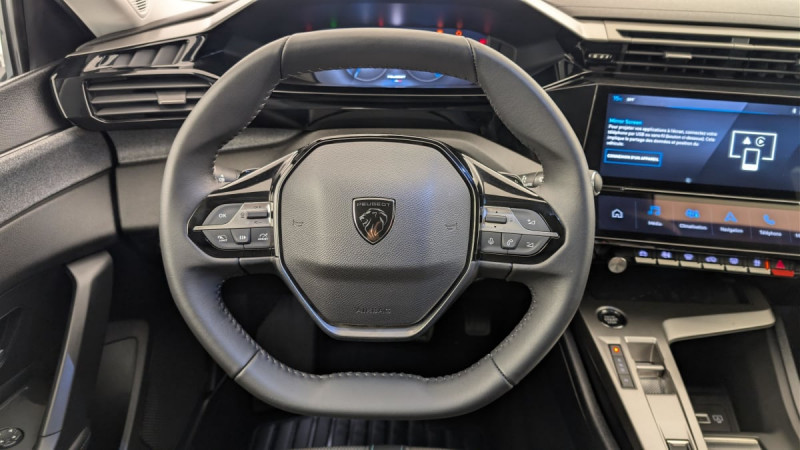 Frein de stationnement électrique / Système stop & go couplé avec l'assistance au positionnement sur la voie / Jantes alliage 17" Halong diamantées / Détection de sous gonflage / Vitres latérales AR et lunette AR surteintées / Alerte attention conducteur / Commutation automatique des feux de route / Rétroviseur intérieur photosensible / Ceintures de sécurité AR 3 points à enrouleur (x3) avec prétensionneurs et limiteurs d'effort aux places latérales / Airbags frontaux conducteur et passager adaptatifs (passager neutralisable par clé), airbags latéraux conducteur et passager AV.airbags rideaux de tête aux places AV/AR / Essuie-vitre AV à déclenchement automatique / Alerte active de franchissement involontaire de ligne et bas côté / Bandeau entre feux AR Noir brillant / Sélecteur mode de conduite Eco et Sport / Lève-vitres électriques AV/ AR et séquentiels avec anti-pincement / Rétroviseurs extérieurs électriques, dégivrants et rabattables électriquement, avec répétiteurs de feux clignotants à LED / Peugeot i-Cockpit avec combiné d'instrumentation numérique 10'' personnalisable / Calandre AV Noir avec inserts chromés et écopes Noir / Jupe AR Noir Brillant avec décors chromés / Feux diurnes à LED sous projecteurs nouvelle signature Peugeot / Fonction Mirror Screen (Apple CarPlay/Android Auto) sans fil / Ceintures de sécurité AV 3 points à enrouleur, avec prétensionneurs et limiteurs d'effort / 2 prises USB-C à l'AV / Lécheurs de vitres Noir Brillant / ESP avec fonction Hill Assist (Aide au démarrage en pente) / Accoudoir central AV avec compartiment de rangement / Garnissage tri-matières TEP/Tissu Falgo, surpiqûres Bleu / Pare-brise teinté feuilleté acoustique / Planche de bord avec jonc transversal peint et décor textile Texa / 4 poignées de maintien / Pack Drive Assist : Régulateur de vitesse adaptatif avec fonction Stop&Go / Pack Safety Plus : Active Safety Brake piloté par caméra et radar / Réglage lombaire du siège conducteur / Boîte de vitesse automatique, séquentielle (6 rapports) / / Véhicules équivalents: Megane - C4 - Mazda 3