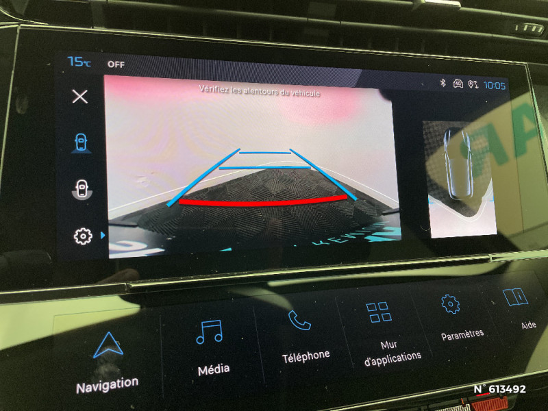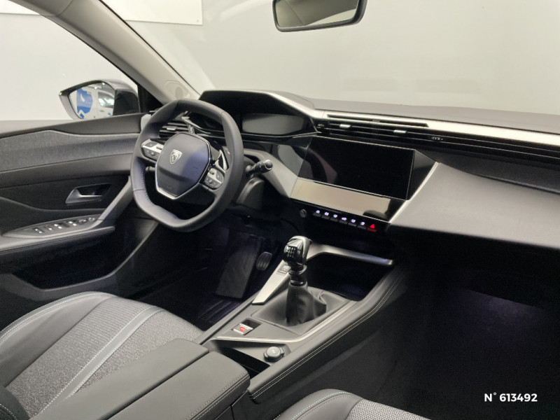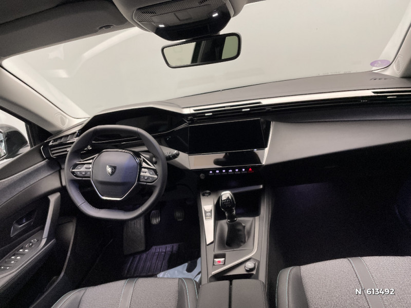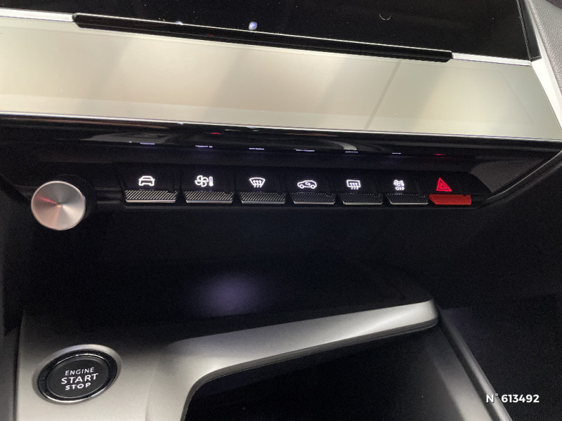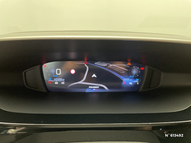 Lécheurs de vitres Noir Brillant / Ceintures de sécurité AR 3 points à enrouleur (x3) avec prétensionneurs et limiteurs d'effort aux places latérales / Bandeau entre feux AR noir brillant / ESP avec fonction Hill Assist (Aide au démarrage en pente) / Trappe à ski (Rang 2) / Accoudoir central AV avec compartiment de rangement / Air Quality System / Alerte active de franchissement involontaire de ligne et bas côté / Garnissage tri-matières TEP/Tissu Falgo, surpiqûres Bleu / Pare-brise teinté feuilleté acoustique / Réglage lombaire du siège conducteur / Frein de stationnement électrique / Ceintures de sécurité AV 3 points à enrouleur, avec prétensionneurs et limiteurs d'effort / Ciel de pavillon clair / Détection de sous gonflage / 2 télécommandes 3 boutons / Lève-vitres électriques AV et AR et séquentiels avec anti-pincement / 4 poignées de maintien (2 à l'AV et 2 à l'AR) / Air Quality System (sonde de pollution, couplée à un filtre à charbon actif Haute Efficacité) / Alerte attention conducteur / Commutation automatique des feux de route / Rétroviseur intérieur photosensible / Vitres latérales AR et lunette AR surteintées / 2 prises USB-C à l'AV / Kit de dépannage de pneumatique : compresseur 12 volts, flacon de produit de colmatage, anneau de remorquage, deux cales de roue, manivelle de frein de stationnement électrique / Airbags frontaux conducteur et passager adaptatifs (passager neutralisable par clé), airbags latéraux conducteur et passager AV, airbags rideaux de tête aux places AV et AR / Feux diurnes à LED sous projecteurs nouvelle signature Peugeot / Navigation connectée / Planche de bord avec jonc transversal peint et décor textile Texa / Peugeot i-Cockpit avec combiné d'instrumentation numérique 10'' personnalisable / Calandre AV Noir avec inserts chromés et écopes Noir / Rétroviseurs extérieurs avec éclairage d'approche / Diffuseurs d'air AR / Jupe AR Noir Brillant avec décors chromés / 2 prises USB-C à l'AR / Fonction Mirror Screen (Apple CarPlay/Android Auto) sans fil / Essuie-vitre AV à déclenchement automatique / Rétroviseurs extérieurs électriques, dégivrants et rabattables électriquement avec répétiteurs de feux clignotants à LED / Jantes alliage 17'' Calgary diamantées