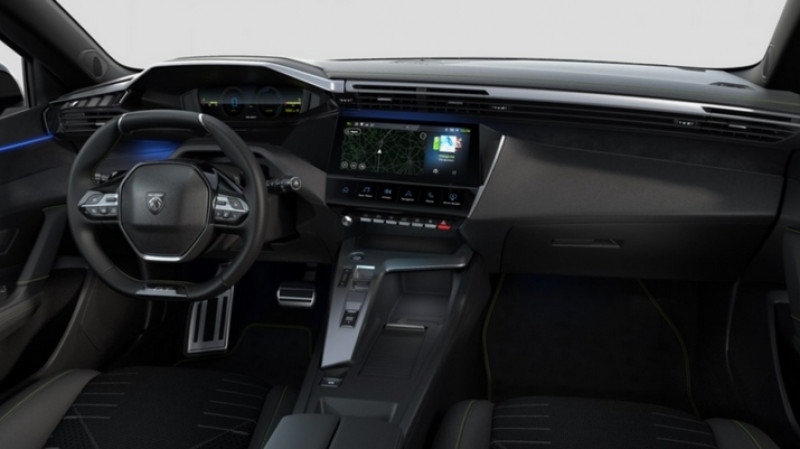 2 hp large bande à l'ar / 2 prises usb-c à l'ar / 4 poignées de maintien / 6 airbags airbags frontaux conducteur et passager (passager neutralisable par clé) airbags latéraux conducteur et passager av airbags rideaux aux places av et ar / Accès et démarrage mains libres proximity / Aide au changement de voie longue portée et alerte de trafi ar transversal) / Boîte de vitesse automatique / Diffuseurs d'air aux places ar / Doubles surpiqûres vert adamite / gris tramontane / Driver sport pack - personnalisation du combiné spécifique - sonorité du moteur amplifiée et plus sportive / Eclairage intérieur : plafonnier av et liseuses ar à led + boite à gants et rangement de console éclairés à led + eclairage de coffre à lampe / Eléments de design extérieur : calandre av avec grille supérieure et blason peugeot illuminés + Élargisseurs de pare-chocs av et de bas de caisse + monogrammes blason peugeot sur ailes av + lécheurs de vitre noir brillant / Eléments de design intérieur : planche de bord moussée avec décor alcantara / Essuie-vitre av à déclenchement automatique / Et blason peugeot sur appuie-têtes av / Et détection de sous-gonflage indirect / Et i-toogles virtuels personnalisables / Et surpiqûres vert adamite + panneaux de portes avec décor alcantara / Feux ar 3 griffes à led allumage dynamique griffe à griffe / Frein de stationnement électrique / Graphique et sonore / Jantes alliage 18'' helsinki diamantées bi-tons noir onyx et inserts noir onyx mat / Jonc chromé transversal / Kit de dépannage pneumatique / Mirror screen compatible apple carplay et androïd auto / Navigation connectée / Pack drive assist : régulateur de vitesse adaptatif avec fonction stop&go / Pack safety plus : régulateur / limiteur de vitesse + freinage d'urgence automatique avec alerte risque de collision + alerte active de franchissement involontaire de ligne et bas-côté + reconnaissance étendue des panneaux de signalisation et préconisation de vitesse + alerte attention conducteur / Pack vision 360° & drive assist plus : aide au maintien de la position dans la voie (conduite semi-autonome) + clean cabin avec capteur de particules dans l'habitacle + peugeot i-cockpit avec instrumentation numérique 10" 3d personnalisable + pack inviolabilité : alarme périmétrique / Pare-brise teinté feuilleté acoustique / Peugeot i-cockpit avec instrumentation numérique 10" 3d personnalisable / Peugeot i-connect advanced navigation 3d connectée / Poignée de portes en similicuir avec doubles surpiqûres vert adamite / gris tramontane + planche de bord et panneaux de portes av avec éclairage d'ambiance + accoudoirs de portes en similicuir avec doubles surpiqûres vert adamite / gris tramontane + ciel de pavillon noir + pédalier sport et repose-p / Projecteurs peugeot matrix led technology Éclairage adaptatif en fonction des conditions extérieures et de la circulation / Rétroviseur intérieur électrochrome / Rétroviseurs extérieurs avec éclairage d'approche / Sellerie tissu noir uzila embossé / Séquentielle (6 rapports) / Séquentiels / Siège conducteur avec réglage lombaire / Siège conducteur et passager av avec réglage manuel de la hauteur d'assise / Système audio avec 6 hp 2 tweeters et 2 woofers à l'av / Teinte métallisée bleu lagoa / Tri-matières avec accompagnement tep isabella mistral / Visiopark360° (4 caméras) / Vitres latérales ar et lunette ar surteintées / Volant compact gt en cuir pleine fleur avec surpiqûres vert adamite / Volumétrique et anti-soulèvement + aide au stationnement av + visiopark360° (4 caméras) + rear warning (surveillance d'angles morts