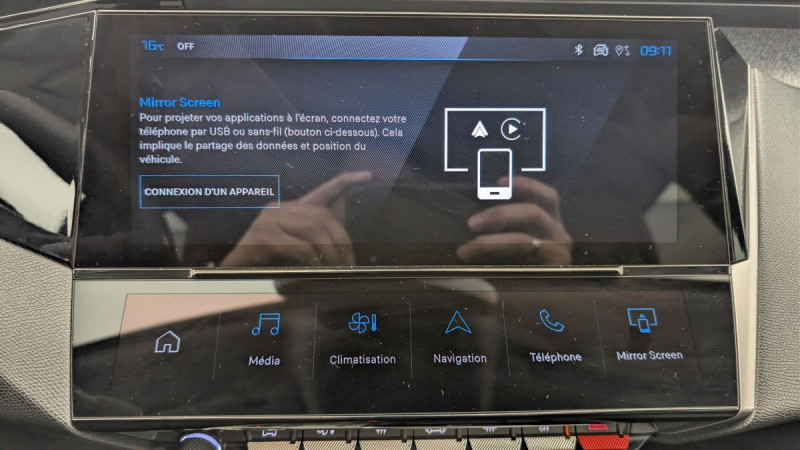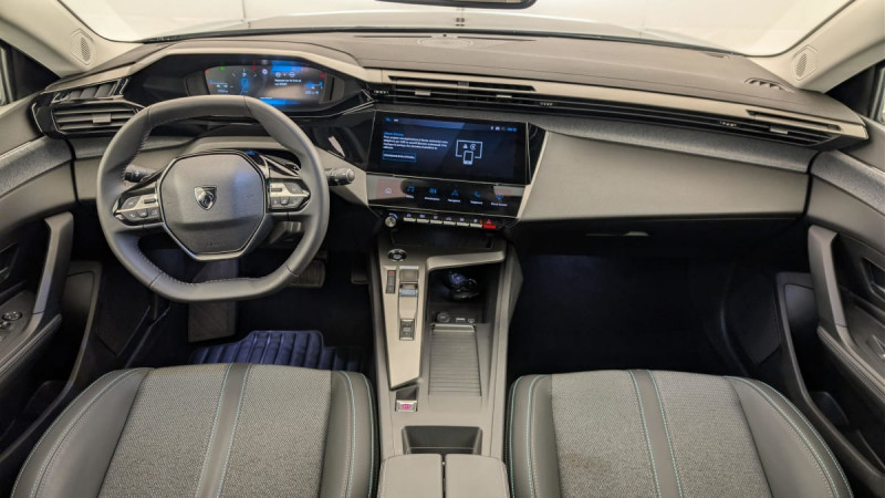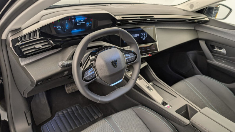Frein de stationnement électrique / Système stop & go couplé avec l'assistance au positionnement sur la voie / Jantes alliage 17" Halong diamantées / Détection de sous gonflage / Vitres latérales AR et lunette AR surteintées / Alerte attention conducteur / Commutation automatique des feux de route / Rétroviseur intérieur photosensible / Ceintures de sécurité AR 3 points à enrouleur (x3) avec prétensionneurs et limiteurs d'effort aux places latérales / Airbags frontaux conducteur et passager adaptatifs (passager neutralisable par clé), airbags latéraux conducteur et passager AV.airbags rideaux de tête aux places AV/AR / Essuie-vitre AV à déclenchement automatique / Alerte active de franchissement involontaire de ligne et bas côté / Bandeau entre feux AR Noir brillant / Sélecteur mode de conduite Eco et Sport / Lève-vitres électriques AV/ AR et séquentiels avec anti-pincement / Rétroviseurs extérieurs électriques, dégivrants et rabattables électriquement, avec répétiteurs de feux clignotants à LED / Ciel de pavillon clair / Peugeot i-Cockpit avec combiné d'instrumentation numérique 10'' personnalisable / Calandre AV Noir avec inserts chromés et écopes Noir / Jupe AR Noir Brillant avec décors chromés / Feux diurnes à LED sous projecteurs nouvelle signature Peugeot / Fonction Mirror Screen (Apple CarPlay/Android Auto) sans fil / Ceintures de sécurité AV 3 points à enrouleur, avec prétensionneurs et limiteurs d'effort / 2 prises USB-C à l'AV / ESP avec fonction Hill Assist (Aide au démarrage en pente) / Accoudoir central AV avec compartiment de rangement / Garnissage tri-matières TEP/Tissu Falgo, surpiqûres Bleu / Pack Drive Assist - Régulateur de vitesse adaptatif avec fonction Stop&Go : Maintient automatiquement la vitesse du véhicule à la vitesse de référence définie par le conducteur, et ajuste automatiquement la vitesse du véhicule pour garder une distance de sécurité avec le véhicule qui précède, conformément au réglage sélectionné par le conducteur. Maintient et ajuste la vitesse jusqu'à l'arrêt. Le redémarrage du véhicule est automatique si l'arrêt a été d'une durée inférieure à 3 secondes / Pack Safety Plus : Active Safety Brake piloté par caméra et radar / Réglage lombaire du siège conducteur / Boîte de vitesse automatique, séquentielle (6 rapports) / Intervalle de maintenance 25 000 km ou 1 an / / Véhicules équivalents: Megane - C4 - Mazda 3