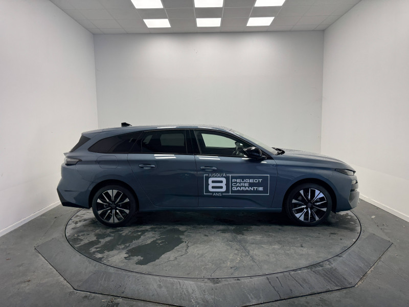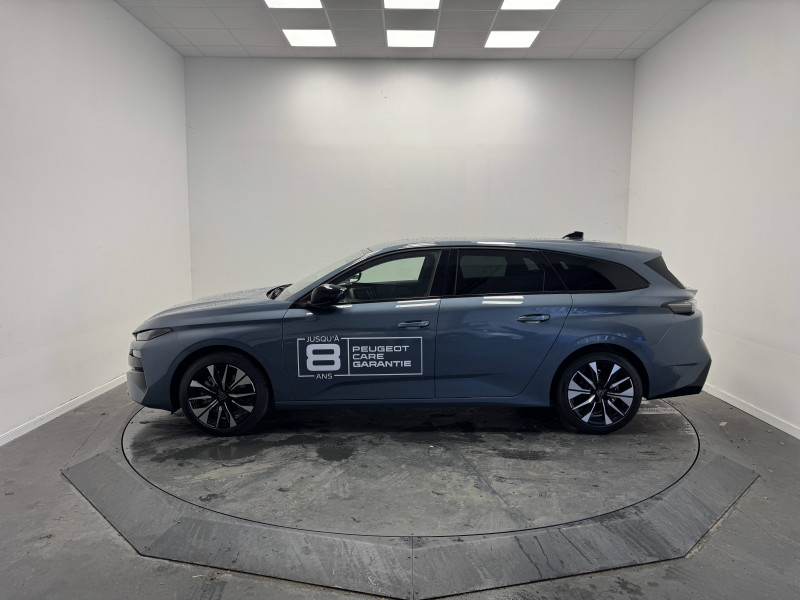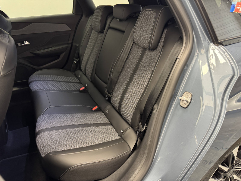 2 prises USB-C à l'AR / 4 poignées de maintien / 6 airbags Airbags frontaux conducteur et passager (passager neutralisable par clé) Airbags latéraux conducteur et passager AV Airbags rideaux aux places AV et AR / Aide au stationnement AR, graphique et sonore / Banquette AR avec dossier rabattable 40/20/40 / Boîte de vitesse automatique, séquentielle (6 rapports) / Démarrage mains libres avec 2 télécommandes 3 boutons / Diffuseurs d'air aux places AR / Eclairage intérieur Plafonnier AV et liseuses AR à LED, Boite à gants et rangement de console éclairés à LED, Eclairage de coffre à lampe / Eléments de design extérieur Calandre couleur caisse Coques de rétroviseurs extérieurs Noir Brillant Lécheurs de vitres Noir mat Jupe AR Noir brillant Antenne requin Monogrammes AV et AR / Eléments de design intérieur Planche de bord moussée avec décor tissu gris chiné, Panneaux de portes avec décor tissu gris chiné, Accoudoirs de portes en similicuir avec surpiqûres gris Tramontane, Éclairage des caves à pieds AV à LED / ESP avec aide au démarrage en pente, et détection de sous-gonflage indirect / Essuie-vitre AV à déclenchement automatique / Feux AR 3 griffes à LED Allumage dynamique griffe à griffe / Frein de stationnement électrique / Jantes alliage 17" BANGKOK diamantées Bi-tons Noir Orbital, vernis brillant / Lève-vitres AV et AR électriques, séquentiels et antipincement / Pack Drive Assist - Régulateur de vitesse adaptatif avec fonction Stop&Go / Pack Safety Plus Régulateur / Limiteur de vitesse, Freinage d'urgence automatique avec alerte risque de collision, piloté par caméra et radar Alerte active de franchissement involontaire de ligne et bas-côté, Reconnaissance étendue des panneaux de signalisation et préconisation de vitesse, Alerte attention conducteur / Pare-brise teinté feuilleté acoustique / Peugeot Connect SOS & Assistance / Peugeot i-Cockpit avec combiné numérique 10" personnalisable / PEUGEOT i-Connect Radio DAB avec écran tactile couleur personnalisable 10'' HD, Bluetooth, Mirror Screen sans fil, 2 prises USB-C sur console AV (1 prise Data & Charge, 1 prise Charge), Pack Connect One (Abonnement inclus 10 ans) / Prise 12V dans le coffre / Projecteurs Peugeot Full LED Technology avec feux diurnes à LED 3 griffes à LED au-dessus des projecteurs, Allumage et commutation automatique des feux, Éclairage d'accueil et d'accompagnement / Rétroviseur intérieur électrochrome / Sellerie tissu gris TREMEZZO embossé, tri-matières avec accompagnement TEP Isabella Mistral, et surpiqûres Quartz / Siège conducteur et passager AV avec réglage manuel de la hauteur d'assise / Système audio avec 6 HP 2 tweeters et 2 woofers à l'AV, 2 HP large bande à l'AR / Visiopark 1 Caméra de recul HD et aide au stationnement AR, graphique et sonore / Vitres de custode AR et lunette AR chauffante temporisée surteintées / Vitres latérales AR et lunette AR chauffante surteintées