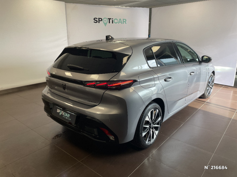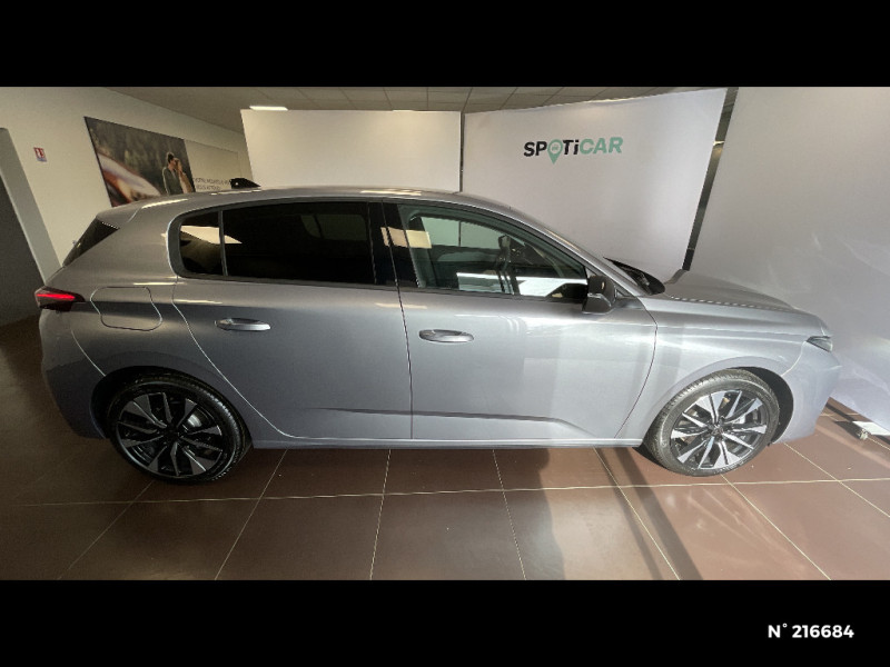 Lève-vitres AV et AR électriques, séquentiels et antipincement / Aide au stationnement AR, graphique et sonore / 4 poignées de maintien / Projecteurs Peugeot Full LED Technology avec feux diurnes à LED 3 griffes à LED au-dessus des projecteurs, Allumage et commutation automatique des feux, Éclairage d'accueil et d'accompagnement / Pack Drive Assist - Régulateur de vitesse adaptatif avec fonction Stop & Go / Peugeot Connect SOS & Assistance / Rétroviseur intérieur électrochrome / Visiopark 1 Caméra de recul HD et aide au stationnement AR, graphique et sonore / Démarrage mains libres avec 2 télécommandes 3 boutons / Frein de stationnement électrique / Vitres de custode AR et lunette AR chauffante temporisée surteintées / Pack Safety Plus Régulateur / Limiteur de vitesse, Freinage d'urgence automatique avec alerte risque de collision, piloté par caméra et radar Alerte active de franchissement involontaire de ligne et bas-côté, Reconnaissance étendue des panneaux de signalisation et préconisation de vitesse, Alerte attention conducteur / Peugeot i-Cockpit avec combiné numérique 10" personnalisable / Visiopark 1 Caméra de recul & aide au stationnement AR, graphique et sonore / 2 prises USB-C à l'AR / ESP avec aide au démarrage en pente, et détection de sous-gonflage indirect / 6 airbags Airbags frontaux conducteur et passager (passager neutralisable par clé) Airbags latéraux conducteur et passager AV Airbags rideaux aux places AV et AR / Sellerie tissu gris TREMEZZO embossé, tri-matières avec accompagnement TEP Isabella Mistral, et surpiqûres Quartz / PEUGEOT i-Connect Radio DAB avec écran tactile couleur personnalisable 10'' HD, Bluetooth, Mirror Screen sans fil, 2 prises USB-C sur console AV (1 prise Data & Charge, 1 prise Charge), Pack Connect One (Abonnement inclus 10 ans) / Système audio avec 6 HP 2 tweeters et 2 woofers à l?AV, 2 haut-parleurs large bande à l?AR / Essuie-vitre AV à déclenchement automatique / Jantes alliage 17" BANGKOK diamantées Bi-tons Noir Orbital, vernis brillant / Eléments de design intérieur Planche de bord moussée avec décor tissu gris chiné, Panneaux de portes avec décor tissu gris chiné, Accoudoirs de portes en similicuir avec surpiqûres gris Tramontane, Éclairage des caves à pieds AV à LED / Eléments de design extérieur Calandre couleur caisse Coques de rétroviseurs extérieurs Noir Brillant Lécheurs de vitres Noir mat Jupe AR Noir brillant Antenne requin Monogrammes AV et AR / Siège conducteur et passager AV avec réglage manuel de la hauteur d'assise / Eclairage intérieur Plafonnier AV et liseuses arrière à LED, Boite à gants et rangement de console éclairés à LED, Eclairage de coffre à lampe / Feux AR 3 griffes à LED Allumage dynamique griffe à griffe / Vitres latérales AR et lunette AR chauffante surteintées / Pare-brise teinté feuilleté acoustique / Boîte de vitesse automatique, séquentielle (6 rapports) / Diffuseurs d'air AR / 6 airbags (Frontaux adaptatifs, latéraux AV, rideaux AV et AR)