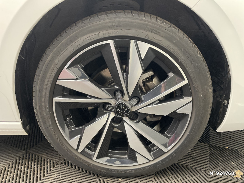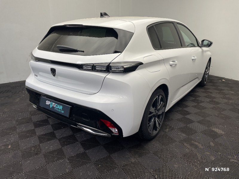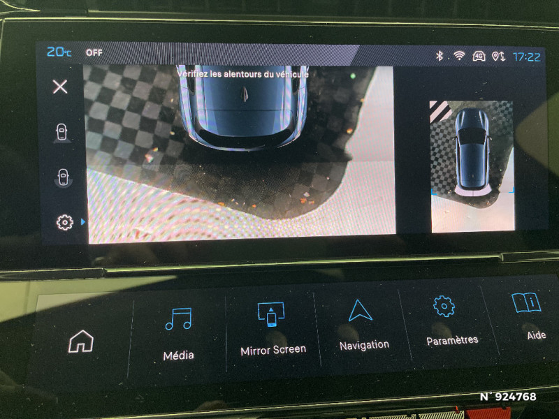 Lécheurs de vitres Noir Brillant / ESP avec fonction Hill Assist (Aide au démarrage en pente) / 4 poignées de maintien (2 à l'AV et 2 à l'AR) / Ceintures de sécurité AR 3 points à enrouleur (x3) avec prétensionneurs et limiteurs d'effort aux places latérales / Bandeau entre feux AR noir brillant / Alerte active de franchissement involontaire de ligne et bas côté / Navigation connectée / Feux diurnes à LED sous projecteurs nouvelle signature Peugeot / 2 prises USB-C à l'AV / Détection de sous gonflage / Réglage lombaire du siège conducteur / Rétroviseur intérieur photosensible / Pare-brise teinté feuilleté acoustique / Air Quality System (sonde de pollution, couplée à un filtre à charbon actif Haute Efficacité) / Garnissage tri-matières TEP/Tissu Falgo, surpiqûres Bleu / Air Quality System / Vitres latérales AR et lunette AR surteintées / Ceintures de sécurité AV 3 points à enrouleur, avec prétensionneurs et limiteurs d'effort / Lève-vitres électriques AV et AR et séquentiels avec anti-pincement / Rétroviseurs extérieurs électriques, dégivrants et rabattables électriquement avec répétiteurs de feux clignotants à LED / Airbags frontaux conducteur et passager adaptatifs (passager neutralisable par clé), airbags latéraux conducteur et passager AV, airbags rideaux de tête aux places AV et AR / Alerte attention conducteur / Commutation automatique des feux de route / Rétroviseurs extérieurs avec éclairage d'approche / Calandre AV Noir avec inserts chromés et écopes Noir / Jupe AR Noir Brillant avec décors chromés / Diffuseurs d'air AR / Peugeot i-Cockpit avec combiné d'instrumentation numérique 10'' personnalisable / 2 télécommandes 3 boutons / Sélecteur mode de conduite Eco et Sport / Kit de dépannage de pneumatique : compresseur 12 volts, flacon de produit de colmatage, anneau de remorquage, deux cales de roue, manivelle de frein de stationnement électrique / Trappe à ski (Rang 2) / Accoudoir central AV avec compartiment de rangement / 2 prises USB-C à l'AR / Ciel de pavillon clair / Frein de stationnement électrique / Fonction Mirror Screen (Apple CarPlay/Android Auto) sans fil / Jantes alliage 17'' Calgary diamantées / Essuie-vitre AV à déclenchement automatique / Planche de bord avec jonc transversal peint et décor textile Texa