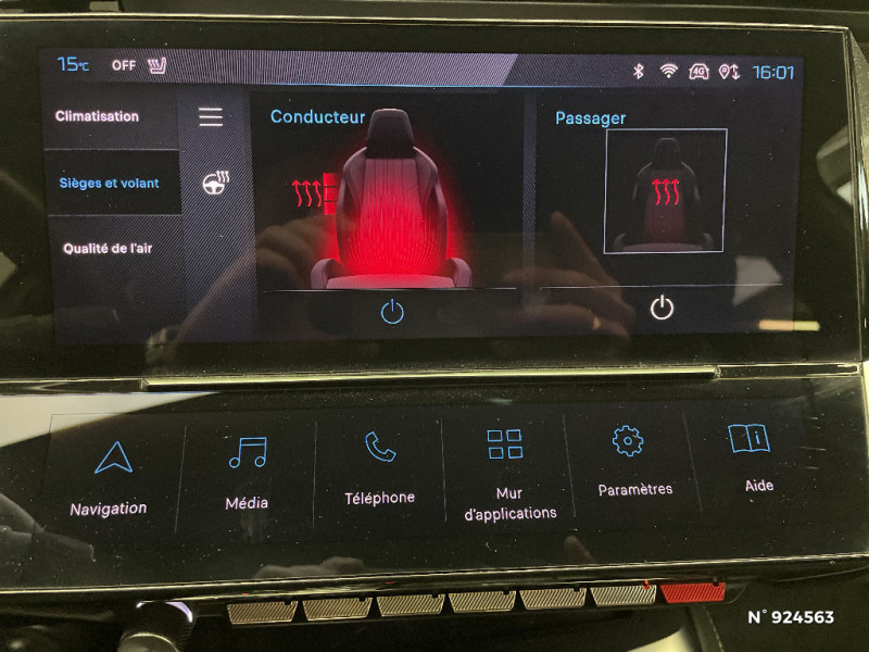 2 prises USB-C à l'AV / Détection de sous gonflage / Réglage lombaire du siège conducteur / Driver Sport Pack / Pare-brise teinté feuilleté acoustique / Accès et démarrage mains libres / Garnissage tri-matières TEP/Alcantara Fraxx Knit, surpiqûres Vert / Air Quality System / Air Quality System (sonde de pollution, couplée à un filtre à charbon actif Haute Efficacité) / Navigation connectée / Seuils de porte AV aluminium / ESP avec fonction Hill Assist (Aide au démarrage en pente) / 4 poignées de maintien (2 à l'AV et 2 à l'AR) / Lécheurs de vitres Noir Brillant / Trappe à ski (Rang 2) / Bandeau entre feux AR noir brillant / Pédalier Sport aluminium et repose pied en aluminium / Ciel de pavillon noir / Ceintures de sécurité AR 3 points à enrouleur (x3) avec prétensionneurs et limiteurs d'effort aux places latérales / Alerte active de franchissement involontaire de ligne et bas côté / Feux AR spécifiques avec allumage dynamique griffe à griffe / Smart Multidrive: personnalisation du combiné et éclairage d'ambiance LED intérieur associés aux modes de conduite / Rétroviseurs extérieurs électriques, dégivrants et rabattables électriquement avec répétiteurs de feux clignotants à LED / Vitres latérales AR et lunette AR surteintées / Projecteurs Peugeot Matrix LED / Calandre AV spécifique Noir verni avec inserts chromés et écopes Noir Brillant / Airbags frontaux conducteur et passager adaptatifs (passager neutralisable par clé), airbags latéraux conducteur et passager AV, airbags rideaux de tête aux places AV et AR / Ceintures de sécurité AV 3 points à enrouleur, avec prétensionneurs et limiteurs d'effort / Lève-vitres électriques AV et AR et séquentiels avec anti-pincement / Diffuseurs d'air AR / Commutation automatique des feux de route / Sélecteur mode de conduite Eco et Sport / Accoudoir central AV avec compartiment de rangement / Alerte attention conducteur / Rétroviseurs extérieurs avec éclairage d'approche / Jupe AR Noir Brillant avec décors chromés / Kit de dépannage de pneumatique : compresseur 12 volts, flacon de produit de colmatage, anneau de remorquage, deux cales de roue, manivelle de frein de stationnement électrique / 2 télécommandes 3 boutons / Jantes alliage 18" Kamakura diamantées / Planche de bord avec jonc transversal chromé, décor Alu et surpiqûres Vert / 2 prises USB-C à l'AR / Elargisseurs de pare chocs AV et de bas de caisse latéraux / Frein de stationnement électrique / Monogrammes latéraux emblème Lion / Décor Alu sur panneaux de porte / Peugeot i-Cockpit 3D avec combiné d'instrumentation numérique personnalisable / Surtapis AV et AR / Fonction Mirror Screen (Apple CarPlay/Android Auto) sans fil / Eclairage d?ambiance (8 couleurs) / Essuie-vitre AV à déclenchement automatique / Pack Drive Assist + Rear warning / Rétroviseur intérieur photosensible sans cadre / PEUGEOT Connect SOS & Assistance / Pack Safety Plus / Pack Drive Assist / Feux diurnes à LED sous projecteurs nouvelle signature Peugeot