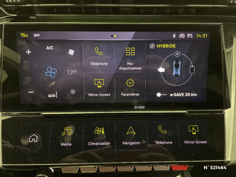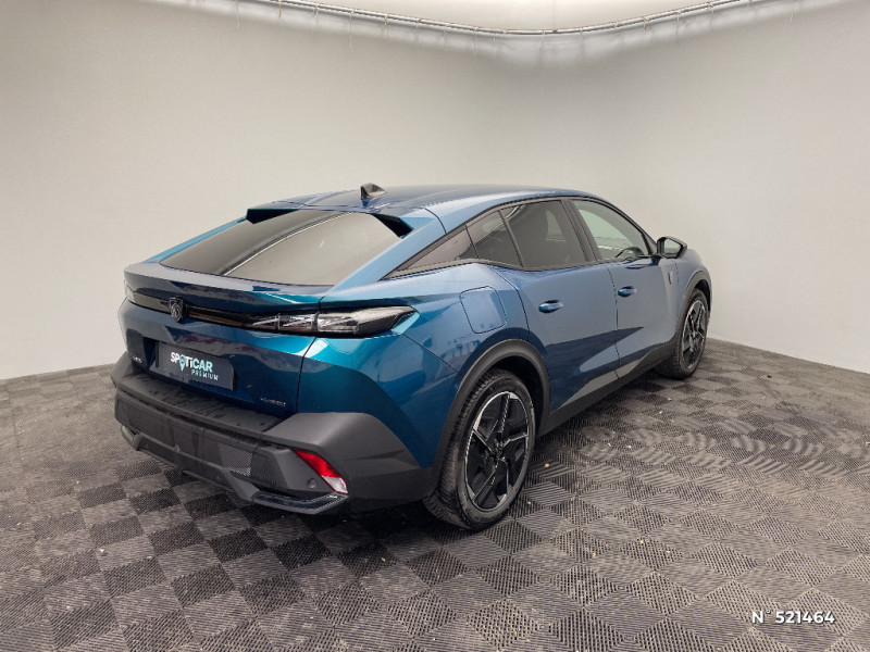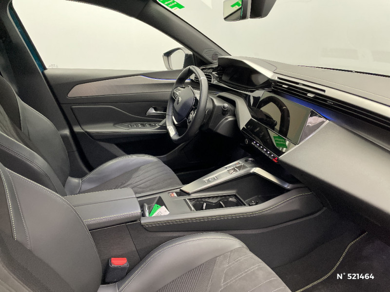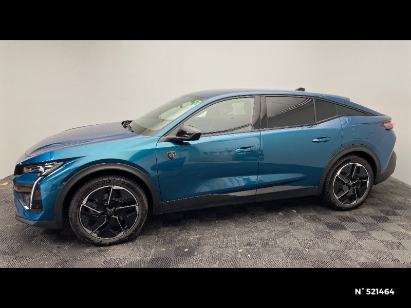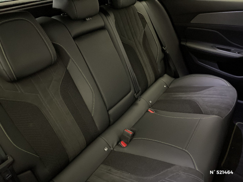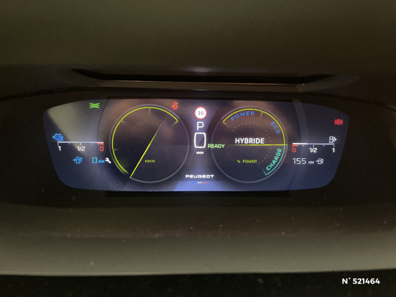2 prises USB-C à l'AV / Lécheurs de vitres Noir Brillant / Pack Safety Plus / 2 prises USB-C à l'AR / Vitres AV feuilletées acoustiques / ESP avec fonction Hill Assist (Aide au démarrage en pente) / Pédalier Sport aluminium et repose pied en aluminium / Pare-brise teinté feuilleté acoustique / 4 poignées de maintien (2 à l'AV et 2 à l'AR) / Chargeur embarqué 3,7 kW / Réglage lombaire du siège conducteur / Kit de dépannage de pneumatique / Câble de recharge mode 2 (10 A, 2,3 kW, pour prise domestique standard) / Pack Drive Assist Plus / Volant chauffant / Planche de bord avec jonc transversal peint, décor Alu et surpiqûres Vert / Active Safety Brake piloté par caméra et radar / Air Quality System (filtre à charbon HEPA) / Reconnaissance vocale en langage naturel / Ciel de pavillon Noir Mistral / Console centrale avec double surpiqûre et arche de console chromée / Montants de baie textile Noir Mistral / Fonction DAB (Radio Numérique Terrestre) / Navigation connectée avec écran central tactile 10"et i-Toggles virtuels personnalisables + Peugeot Connect SOS & Assistance / Fonction Mirror Screen (Apple CarPlay / Android Auto ) sans fil / Peugeot i-Cockpit avec instrumentation numérique 10" 3D personnalisable / Projecteurs Peugeot Matrix LED Technology / Jantes alliage 19" diamantées GRAPHITE / Pack Rear traffic detection / Driver Sport Pack / Rétroviseurs extérieurs électrique avec éclairage d'approche, dégivrants et rabattables électriquement, avec répétiteurs de feux clignotants à LED / Rétroviseur intérieur électrochrome sans cadre / Sellerie Tri matières maille Fraxx Knit / TEP / Alcantara® / Volet motorisé avec accès bras chargés / Accoudoir central avec rangement et porte gobelet / Sièges dynamiques avec appuis tête AV deux voies / Capacité batterie 12,4 kWh / Puissance batterie 100 kW / Accès et démarrage mains libres / Frein de stationnement électrique / Seuils de portes AV aluminium / Commutation automatique des feux de route / Peugeot Connect SOS & Assistance / Vitres latérales AR et lunette AR chauffante temporisée surteintées / Informations sur la position, consommation, télémaintenance, statistiques de roulage et état de charge de la batterie / Monogrammes Hybrid / Pré-conditionnement thermique et charge différée via My Peugeot ou l'écran central / Calandre avec grille verticale couleur caisse / Lève-vitres AV et AR électriques séquentiels avec antipincement / Panneaux de porte avec surpiqûre Vert Adamite et décors aluminium / Feux diurnes à LED sous projecteurs / Sélecteur de modes (Electric, Hybrid, Sport) / Feux AR spécifiques avec allumage dynamique griffe à griffe / 2 télécommandes 3 boutons / Airbags frontaux conducteur et passager adaptatifs (passager neutralisable par clé), airbags latéraux conducteur et passager AV, airbags rideaux de tête aux places AV et AR / Surtapis AV et AR / Pré-conditionnement thermique et charge différée via l'écran central / Monogrammes latéraux emblème Lion / Eclairage d'ambiance (8 couleurs) / Planche de bord avec jonc transversal chromé, décor Alu et surpiqûres Vert / Clean Cabin avec capteur de particules dans l'habitacle / Détection de sous gonflage / Essuie-vitre AV à déclenchement automatique