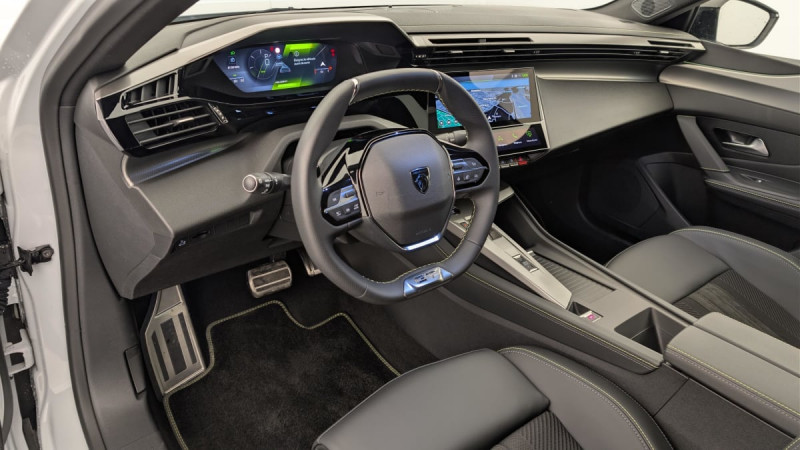 Accès et démarrage mains libres / Frein de stationnement électrique / Détection de sous gonflage / Commutation automatique des feux de route / Rétroviseur intérieur photosensible / Vitres AV feuilletées acoustiques / Airbags frontaux conducteur et passager adaptatifs (passager neutralisable par clé), airbags latéraux conducteur et passager AV.airbags rideaux de tête aux places AV/AR / Essuie-vitre AV à déclenchement automatique / Feux diurnes à LED sous projecteurs / Vitres latérales AR et lunette AR chauffante temporisée surteintées / Fonction DAB (Radio Numérique Terrestre) / Sélecteur mode de conduite Eco et Sport / Rétroviseurs extérieurs électriques, dégivrants et rabattables électriquement, avec répétiteurs de feux clignotants à LED / Feux AR spécifiques avec allumage dynamique griffe à griffe / ESP avec fonction Hill Assist (Aide au démarrage en pente) / Pare-brise teinté feuilleté acoustique / Navigation connectée avec écran central tactile 10'' et i-Toggles virtuels personnalisables / Fonction Mirror Screen (Apple CarPlay / Android Auto ) sans fil / Projecteurs Peugeot Matrix LED Technology / Jantes alliage 19" diamantées GRAPHITE / Accoudoir central avec rangement et porte gobelet / Volant chauffant / 4 poignées de maintien / Pack Safety Plus : Alerte attention conducteur Reconnaissance étendue des panneaux de signalisation et préconisation de vitesse Alerte active de franchissement involontaire de ligne et bas côté Freinage d'urgence automatique de jour et de nuit (caméra & radar) Freinage d'urgence automatique (Active Safety Brake) avec alerte risque de collision / Peugeot i-Cockpit avec instrumentation numérique 10" personnalisable / Pack Drive Assist Plus : Régulateur de vitesse adaptatif avec fonction Stop&Go Conduite semi-autonome (niveau 2) Aide au maintien de la position dans la voie / Réglage lombaire du siège conducteur / Peugeot Connect SOS / Lève-vitres AV/AR électriques et séquentiels avec antipincement /