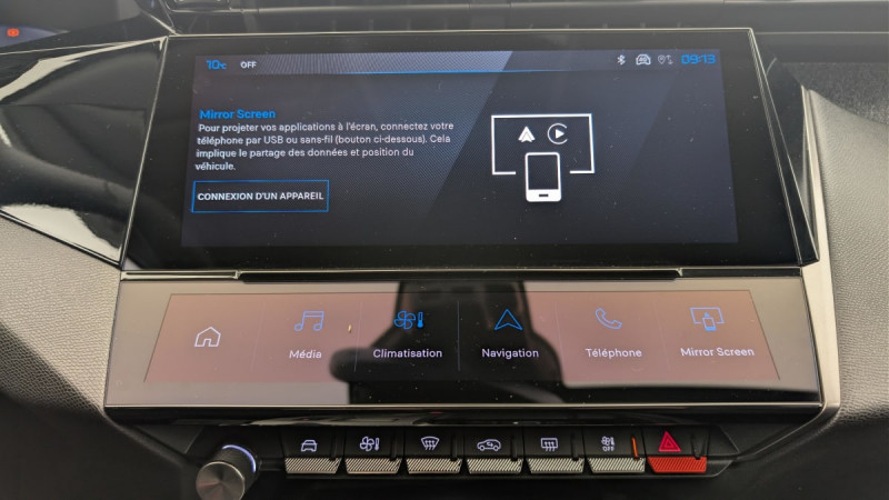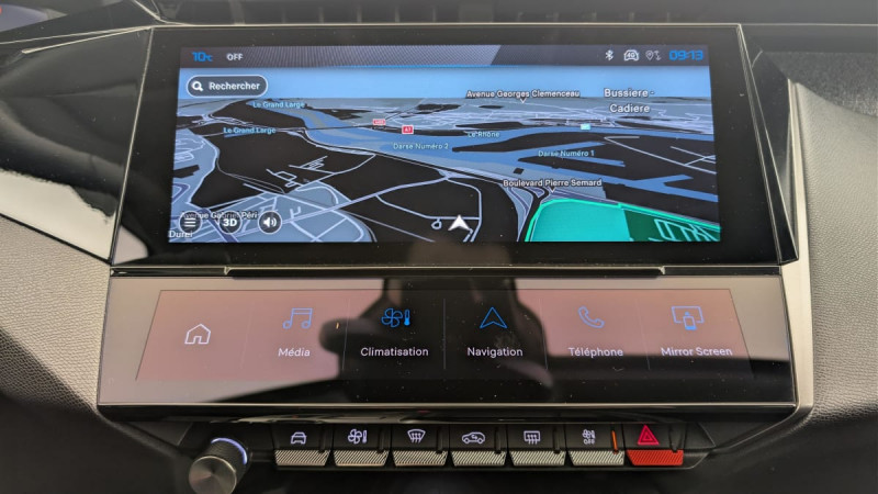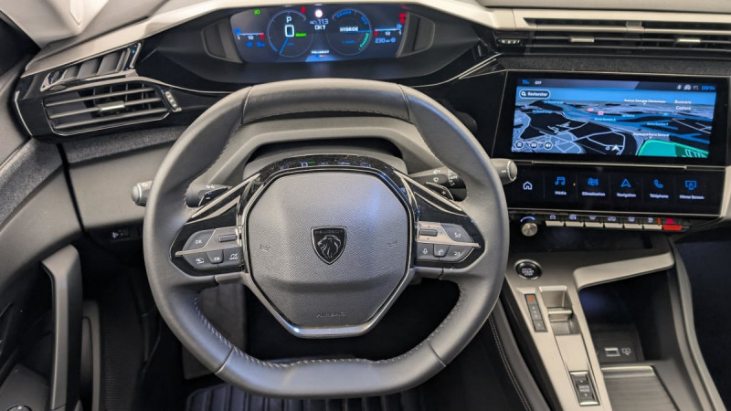 Accès et démarrage mains libres / Frein de stationnement électrique / Détection de sous gonflage / Commutation automatique des feux de route / Airbags frontaux conducteur et passager adaptatifs (passager neutralisable par clé), airbags latéraux conducteur et passager AV.airbags rideaux de tête aux places AV/AR / Essuie-vitre AV à déclenchement automatique / Sélecteur de modes de conduite (Electric, Hybrid, Sport) / Feux diurnes à LED sous projecteurs / Vitres latérales AR et lunette AR chauffante temporisée surteintées / Fonction DAB (Radio Numérique Terrestre) / Projecteurs Peugeot LED Technology / Rétroviseurs extérieurs électriques, dégivrants et rabattables électriquement, avec répétiteurs de feux clignotants à LED / ESP avec fonction Hill Assist (Aide au démarrage en pente) / Pare-brise teinté feuilleté acoustique / Câble de recharge mode 2 (10A, 2,3kW) pour prise domestique standard / Navigation connectée avec écran central tactile 10'' et i-Toggles virtuels personnalisables / Fonction Mirror Screen (Apple CarPlay / Android Auto ) sans fil / Sellerie Tri matières Tissus FRACTIL et BALADIN / TEP / Accoudoir central avec rangement et porte gobelet / Reconnaissance vocale en langage naturel / 4 poignées de maintien / Pack Drive Assist : Régulateur de vitesse adaptatif avec fonction Stop&Go / Pack Safety Plus : Alerte attention conducteur Reconnaissance étendue des panneaux de signalisation et préconisation de vitesse Freinage d'urgence automatique de jour et de nuit (caméra & radar) Freinage d'urgence automatique (Active Safety Brake) avec alerte risque de collision / Peugeot i-Cockpit avec instrumentation numérique 10" personnalisable / Réglage lombaire du siège conducteur / Lève-vitres AV/AR électriques et séquentiels avec antipincement / Kit de dépannage de pneumatique /