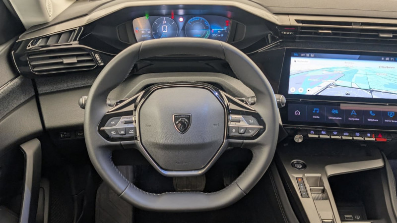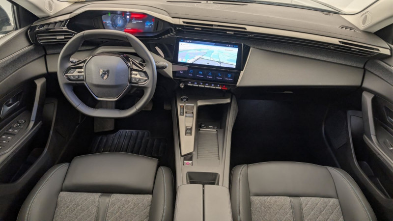 Accès et démarrage mains libres / Frein de stationnement électrique / Système stop & go couplé avec l'assistance au positionnement sur la voie / Détection de sous gonflage / Commutation automatique des feux de route / Vitres AV feuilletées acoustiques / Airbags frontaux conducteur et passager adaptatifs (passager neutralisable par clé), airbags latéraux conducteur et passager AV.airbags rideaux de tête aux places AV/AR / Essuie-vitre AV à déclenchement automatique / Feux diurnes à LED sous projecteurs / Vitres latérales AR et lunette AR chauffante temporisée surteintées / Fonction DAB (Radio Numérique Terrestre) / Projecteurs Peugeot LED Technology / VisioPark 1 (caméra de recul) / Sélecteur mode de conduite Eco et Sport / Rétroviseurs extérieurs électriques, dégivrants et rabattables électriquement, avec répétiteurs de feux clignotants à LED / 2 prises USB-C à l'AR / 2 prises USB-C à l'AV / Lécheurs de vitres Noir Brillant / ESP avec fonction Hill Assist (Aide au démarrage en pente) / Pare-brise teinté feuilleté acoustique / Navigation connectée avec écran central tactile 10'' et i-Toggles virtuels personnalisables / Fonction Mirror Screen (Apple CarPlay / Android Auto ) sans fil / Sellerie Tri matières Tissus FRACTIL et BALADIN / TEP / Accoudoir central avec rangement et porte gobelet / Sièges dynamiques avec appuis tête AV deux voies / Calandre avec grille chromée / Décors intérieurs textiles (planche de bord, panneaux de porte) / Air Quality System (filtre à charbon HEPA) / Reconnaissance vocale en langage naturel / Active Safety Brake piloté par caméra et radar / 4 poignées de maintien / Pack Drive Assist : Régulateur de vitesse adaptatif avec fonction Stop&Go / Pack Safety Plus : Alerte attention conducteur Reconnaissance étendue des panneaux de signalisation et préconisation de vitesse Alerte active de franchissement involontaire de ligne et bas côté Freinage d'urgence automatique de jour et de nuit (caméra & radar) Freinage d'urgence automatique (Active Safety Brake) avec alerte risque de collision / Peugeot i-Cockpit avec instrumentation numérique 10" personnalisable / Réglage lombaire du siège conducteur / Lève-vitres AV/AR électriques et séquentiels avec antipincement / Kit de dépannage de pneumatique /