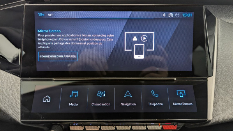 Accès et démarrage mains libres / Frein de stationnement électrique / Système stop & go couplé avec l'assistance au positionnement sur la voie / Détection de sous gonflage / Commutation automatique des feux de route / Airbags frontaux conducteur et passager adaptatifs (passager neutralisable par clé), airbags latéraux conducteur et passager AV.airbags rideaux de tête aux places AV/AR / Essuie-vitre AV à déclenchement automatique / Feux diurnes à LED sous projecteurs / Vitres latérales AR et lunette AR chauffante temporisée surteintées / Fonction DAB (Radio Numérique Terrestre) / Projecteurs Peugeot LED Technology / VisioPark 1 (caméra de recul) / 2 télécommandes 3 boutons / Sélecteur mode de conduite Eco et Sport / Rétroviseurs extérieurs électriques, dégivrants et rabattables électriquement, avec répétiteurs de feux clignotants à LED / 2 prises USB-C à l'AR / 2 prises USB-C à l'AV / Lécheurs de vitres Noir Brillant / ESP avec fonction Hill Assist (Aide au démarrage en pente) / Pare-brise teinté feuilleté acoustique / Navigation connectée avec écran central tactile 10'' et i-Toggles virtuels personnalisables / Fonction Mirror Screen (Apple CarPlay / Android Auto ) sans fil / Accoudoir central avec rangement et porte gobelet / Sièges dynamiques avec appuis tête AV deux voies / Calandre avec grille chromée / Décors intérieurs textiles (planche de bord, panneaux de porte) / Reconnaissance vocale en langage naturel / Active Safety Brake piloté par caméra et radar / 4 poignées de maintien / Pack Drive Assist - Régulateur de vitesse adaptatif avec fonction Stop&Go : Régulateur de vitesse adaptatif avec fonction Stop&Go / Pack Safety Plus - Freinage d'urgence automatique (Active Safety Brake ) avec alerte risque de collision - Freinage d'urgence automatique de jour et de nuit (caméra & radar) - Alerte active de franchissement involontaire de ligne et bas côté - Reconnaissance étendue des panneaux de signalisation et préconisation de vitesse - Alerte attention conducteur : Alerte attention conducteur Reconnaissance étendue des panneaux de signalisation et préconisation de vitesse Alerte active de franchissement involontaire de ligne et bas côté Freinage d'urgence automatique de jour et de nuit (caméra & radar) Freinage d'urgence automatique (Active Safety Brake) avec alerte risque de collision / Peugeot i-Cockpit avec instrumentation numérique 10" personnalisable / Réglage lombaire du siège conducteur / Lève-vitres AV/AR électriques et séquentiels avec antipincement /
