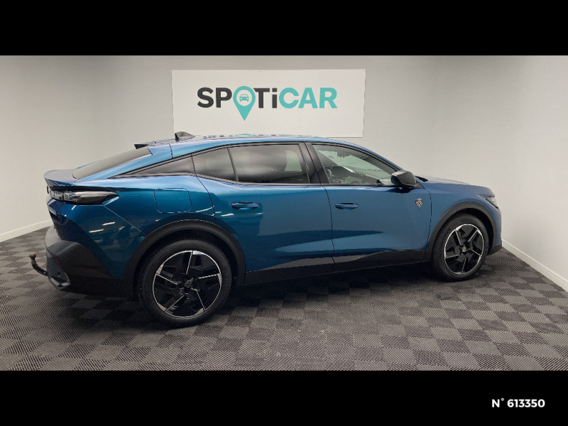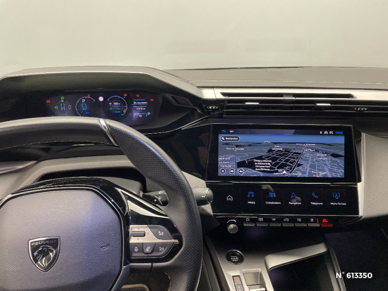 Montants de baie textile Noir Mistral / Pré-conditionnement thermique et charge différée via l'écran central / Sellerie Tri matières maille Fraxx Knit / TEP / Alcantara® / Volet motorisé avec accès bras chargés / Accoudoir central avec rangement et porte gobelet / Pédalier Sport aluminium et repose pied en aluminium / Rétroviseurs extérieurs électriques, dégivrants et rabattables électriquement avec répétiteurs de feux clignotants à LED / Chargeur embarqué 3,7 kW / Lève-vitres AV et AR électriques séquentiels avec antipincement / 2 télécommandes 3 boutons / 4 poignées de maintien / Driver Sport Pack - personnalisation du combiné spécifique, sonorité du moteur amplifiée et plus sportive (désactivable) / Pédalier Sport et repose pied en aluminium / Airbags frontaux conducteur et passager adaptatifs (passager neutralisable par clé), airbags latéraux conducteur et passager AV, airbags rideaux de tête aux places AV et AR / Console centrale avec double surpiqûre et arche de console peinture gris Stène / Peugeot Connect SOS & Assistance / Capacité batterie 12,4 kWh / Puissance batterie 100 kW / Pare-brise teinté feuilleté acoustique / Feux diurnes à LED sous projecteurs / Feux AR spécifiques avec allumage dynamique griffe à griffe / Pack Safety Plus / 4 poignées de maintien (2 à l'AV et 2 à l'AR) / Pack Safety Plus Freinage d'urgence automatique (Active Safety Brake ) avec alerte risque de collision Freinage d'urgence automatique de jour et de nuit (caméra & radar) Alerte active de franchissement involontaire de ligne et bas côté Reconnaissance étendue des panneaux de signalisation et préconisation de vitesse Alerte attention conducteur / 2 prises USB-C à l'AV / Lécheurs de vitres Noir Brillant / Réglage lombaire du siège conducteur / Commutation automatique des feux de route / Accès et démarrage mains libres / Frein de stationnement électrique / Détection de sous gonflage / ESP avec fonction Hill Assist (Aide au démarrage en pente) / Pack Drive Assist Plus Conduite semi autonome (niveau 2), Régulateur de vitesse adaptatif avec fonction Stop & Go, Aide au maintien de la position dans la voie / Rétroviseurs extérieurs électrique avec éclairage d'approche, dégivrants et rabattables électriquement, avec répétiteurs de feux clignotants à LED / Rétroviseur intérieur électrochrome sans cadre / Fonction DAB (Radio Numérique Terrestre) / Navigation connectée avec écran central tactile 10'' et i-Toggles virtuels personnalisables / Fonction Mirror Screen (Apple CarPlay / Android Auto ) sans fil / Peugeot i-Cockpit avec instrumentation numérique 10" 3D personnalisable / Projecteurs Peugeot Matrix LED Technology / Jantes alliage 19" diamantées GRAPHITE / Driver Sport Pack / Surtapis AV et AR / Seuils de portes AV aluminium / Active Safety Brake piloté par caméra et radar / Vitres AV feuilletées acoustiques / 2 prises USB-C à l'AR / Vitres latérales AR et lunette AR chauffante temporisée surteintées / Pack Drive Assist Plus / Monogrammes latéraux emblème Lion / Clean Cabin avec capteur de particules dans l'habitacle / Eclairage d'ambiance (8 couleurs) / Volant chauffant / Planche de bord avec jonc transversal peint, décor Alu et surpiqûres Vert / Sélecteur de modes (Electric, Hybrid, Sport) / Câble de recharge mode 2 (10 A, 2,3 kW, pour prise domestique standard) / Essuie-vitre AV à déclenchement automatique / Kit de dépannage de pneumatique / Sièges dynamiques avec appuis tête AV deux voies / Informations sur la position, consommation, télémaintenance, statistiques de roulage et état de charge de la batterie / Monogrammes Hybrid / Calandre avec grille verticale couleur caisse / Panneaux de porte avec surpiqûre Vert Adamite et décors aluminium / Air Quality System (filtre à charbon HEPA) / Reconnaissance vocale en langage naturel / Ciel de pavillon Noir Mistral / Console centrale avec double surpiqûre et arche de console chromée
