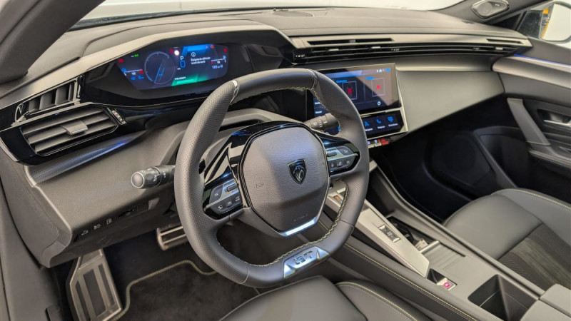 Accès et démarrage mains libres / Frein de stationnement électrique / Peugeot Connect SOS / Détection de sous gonflage / Commutation automatique des feux de route / Vitres AV feuilletées acoustiques / Airbags frontaux conducteur et passager adaptatifs (passager neutralisable par clé), airbags latéraux conducteur et passager AV.airbags rideaux de tête aux places AV/AR / Essuie-vitre AV à déclenchement automatique / Sélecteur de modes de conduite (Electric, Hybrid, Sport) / Feux diurnes à LED sous projecteurs / Vitres latérales AR et lunette AR chauffante temporisée surteintées / Fonction DAB (Radio Numérique Terrestre) / Rétroviseurs extérieurs électriques, dégivrants et rabattables électriquement, avec répétiteurs de feux clignotants à LED / Feux AR spécifiques avec allumage dynamique griffe à griffe / Pare-brise teinté feuilleté acoustique / Câble de recharge mode 2 (10A, 2,3kW) pour prise domestique standard / Navigation connectée avec écran central tactile 10'' et i-Toggles virtuels personnalisables / Fonction Mirror Screen (Apple CarPlay / Android Auto ) sans fil / Peugeot i-Cockpit avec instrumentation numérique 10" 3D personnalisable / Projecteurs Peugeot Matrix LED Technology Éclairage adaptatif en fonction des conditions extérieures et de la circulation / Jantes alliage 19" diamantées GRAPHITE / Rétroviseur intérieur électrochrome sans cadre / Sellerie Tri matières maille Fraxx Knit / TEP / Alcantara / Volet motorisé avec accès bras chargés / Accoudoir central avec rangement et porte gobelet / Reconnaissance vocale en langage naturel / Volant chauffant / Active Safety Brake piloté par caméra et radar / Pédalier Sport et repose pied en aluminium / Pack Safety Plus : Alerte attention conducteur Reconnaissance étendue des panneaux de signalisation et préconisation de vitesse Alerte active de franchissement involontaire de ligne et bas côté Freinage d'urgence automatique de jour et de nuit (caméra & radar) Freinage d'urgence automatique (Active Safety Brake) avec alerte risque de collision / Console centrale avec double surpiqûre et arche de console peinture gris Stène / Pack Drive Assist Plus : Régulateur de vitesse adaptatif avec fonction Stop&Go Conduite semi-autonome (niveau 2) Aide au maintien de la position dans la voie / Lève-vitres AV/AR électriques et séquentiels avec antipincement / Kit de dépannage de pneumatique /