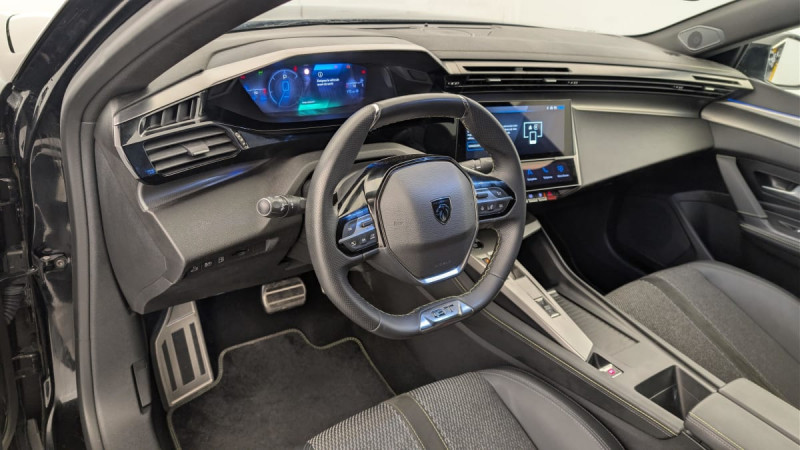 Accès et démarrage mains libres / Frein de stationnement électrique / Détection de sous gonflage / Commutation automatique des feux de route / Rétroviseur intérieur photosensible / Vitres AV feuilletées acoustiques / Airbags frontaux conducteur et passager adaptatifs (passager neutralisable par clé), airbags latéraux conducteur et passager AV.airbags rideaux de tête aux places AV/AR / Essuie-vitre AV à déclenchement automatique / Sélecteur de modes de conduite (Electric, Hybrid, Sport) / Feux diurnes à LED sous projecteurs / Vitres latérales AR et lunette AR chauffante temporisée surteintées / Fonction DAB (Radio Numérique Terrestre) / Rétroviseurs extérieurs électriques, dégivrants et rabattables électriquement, avec répétiteurs de feux clignotants à LED / Chargeur embarqué 3,7kW / Feux AR spécifiques avec allumage dynamique griffe à griffe / ESP avec fonction Hill Assist (Aide au démarrage en pente) / Pare-brise teinté feuilleté acoustique / Câble de recharge mode 2 (10A, 2,3kW) pour prise domestique standard / Navigation connectée avec écran central tactile 10'' et i-Toggles virtuels personnalisables / Fonction Mirror Screen (Apple CarPlay / Android Auto ) sans fil / Projecteurs Peugeot Matrix LED Technology Éclairage adaptatif en fonction des conditions extérieures et de la circulation / Jantes alliage 19" diamantées GRAPHITE / Accoudoir central avec rangement et porte gobelet / Volant chauffant / Pédalier Sport et repose pied en aluminium / Pack Safety Plus : Alerte attention conducteur Reconnaissance étendue des panneaux de signalisation et préconisation de vitesse Alerte active de franchissement involontaire de ligne et bas côté Freinage d'urgence automatique de jour et de nuit (caméra & radar) Freinage d'urgence automatique (Active Safety Brake) avec alerte risque de collision / Peugeot i-Cockpit avec instrumentation numérique 10" personnalisable / Pack Drive Assist Plus : Régulateur de vitesse adaptatif avec fonction Stop&Go Conduite semi-autonome (niveau 2) Aide au maintien de la position dans la voie / Réglage lombaire du siège conducteur / Peugeot Connect SOS / Sellerie tri-matière tissu TEP / Tissu New Belomka / Lève-vitres AV/AR électriques et séquentiels avec antipincement /