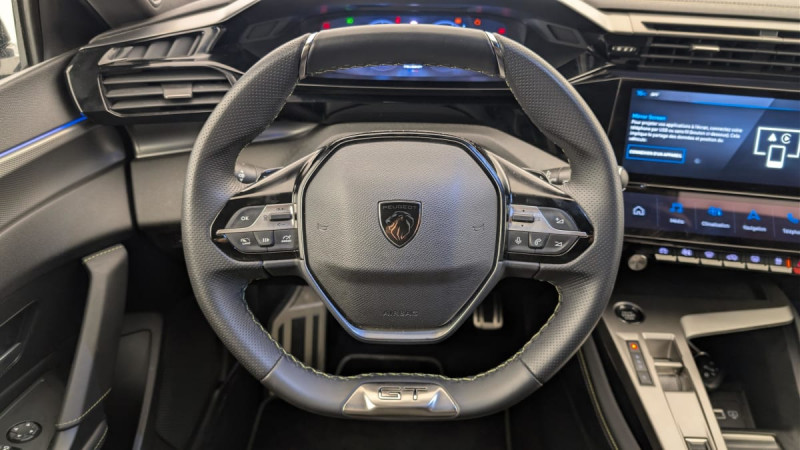 Accès et démarrage mains libres / Frein de stationnement électrique / Détection de sous gonflage / Commutation automatique des feux de route / Rétroviseur intérieur photosensible / Vitres AV feuilletées acoustiques / Airbags frontaux conducteur et passager adaptatifs (passager neutralisable par clé), airbags latéraux conducteur et passager AV.airbags rideaux de tête aux places AV/AR / Essuie-vitre AV à déclenchement automatique / Sélecteur de modes de conduite (Electric, Hybrid, Sport) / Feux diurnes à LED sous projecteurs / Vitres latérales AR et lunette AR chauffante temporisée surteintées / Fonction DAB (Radio Numérique Terrestre) / Rétroviseurs extérieurs électriques, dégivrants et rabattables électriquement, avec répétiteurs de feux clignotants à LED / Chargeur embarqué 3,7kW / Feux AR spécifiques avec allumage dynamique griffe à griffe / ESP avec fonction Hill Assist (Aide au démarrage en pente) / Pare-brise teinté feuilleté acoustique / Câble de recharge mode 2 (10A, 2,3kW) pour prise domestique standard / Navigation connectée avec écran central tactile 10'' et i-Toggles virtuels personnalisables / Fonction Mirror Screen (Apple CarPlay / Android Auto ) sans fil / Projecteurs Peugeot Matrix LED Technology Éclairage adaptatif en fonction des conditions extérieures et de la circulation / Jantes alliage 19" diamantées GRAPHITE / Accoudoir central avec rangement et porte gobelet / Volant chauffant / Pédalier Sport et repose pied en aluminium / Pack Safety Plus : Alerte attention conducteur Reconnaissance étendue des panneaux de signalisation et préconisation de vitesse Alerte active de franchissement involontaire de ligne et bas côté Freinage d'urgence automatique de jour et de nuit (caméra & radar) Freinage d'urgence automatique (Active Safety Brake) avec alerte risque de collision / Peugeot i-Cockpit avec instrumentation numérique 10" personnalisable / Pack Drive Assist Plus : Régulateur de vitesse adaptatif avec fonction Stop&Go Conduite semi-autonome (niveau 2) Aide au maintien de la position dans la voie / Réglage lombaire du siège conducteur / Peugeot Connect SOS / Sellerie tri-matière tissu TEP / Tissu New Belomka / Lève-vitres AV/AR électriques et séquentiels avec antipincement /