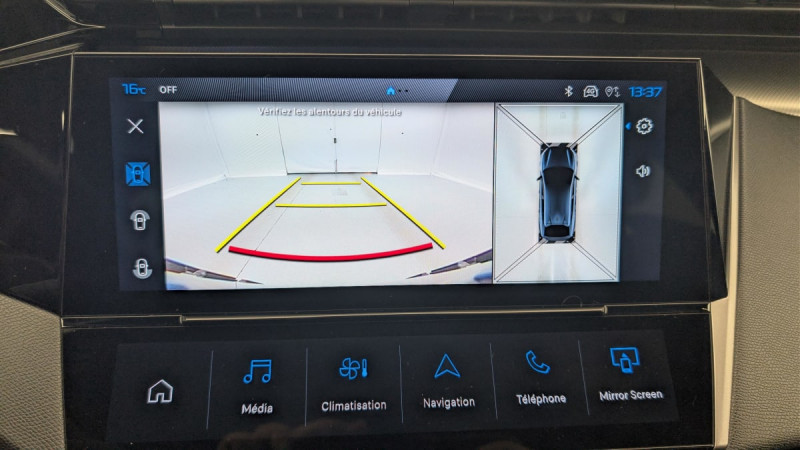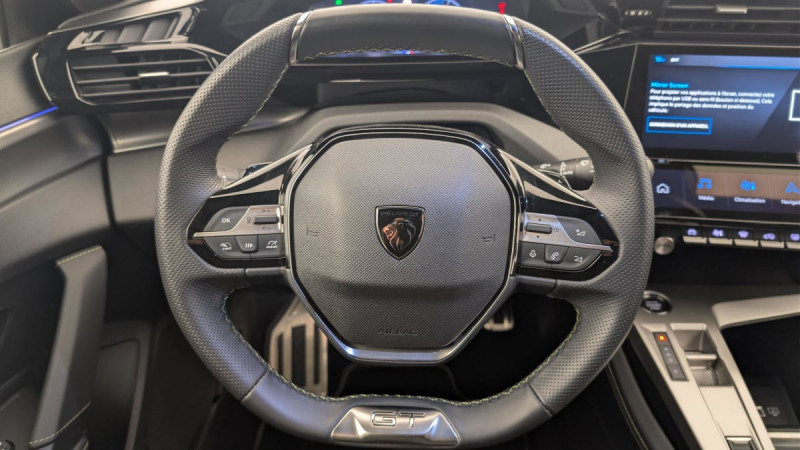 Accès et démarrage mains libres / Frein de stationnement électrique / Peugeot Connect SOS / Détection de sous gonflage / Commutation automatique des feux de route / Vitres AV feuilletées acoustiques / Airbags frontaux conducteur et passager adaptatifs (passager neutralisable par clé), airbags latéraux conducteur et passager AV.airbags rideaux de tête aux places AV/AR / Essuie-vitre AV à déclenchement automatique / Sélecteur de modes de conduite (Electric, Hybrid, Sport) / Feux diurnes à LED sous projecteurs / Vitres latérales AR et lunette AR chauffante temporisée surteintées / Fonction DAB (Radio Numérique Terrestre) / Rétroviseurs extérieurs électriques, dégivrants et rabattables électriquement, avec répétiteurs de feux clignotants à LED / Chargeur embarqué 3,7kW / Feux AR spécifiques avec allumage dynamique griffe à griffe / ESP avec fonction Hill Assist (Aide au démarrage en pente) / Pare-brise teinté feuilleté acoustique / Câble de recharge mode 2 (10A, 2,3kW) pour prise domestique standard / Navigation connectée avec écran central tactile 10'' et i-Toggles virtuels personnalisables / Fonction Mirror Screen (Apple CarPlay / Android Auto ) sans fil / Peugeot i-Cockpit avec instrumentation numérique 10" 3D personnalisable / Projecteurs Peugeot Matrix LED Technology Éclairage adaptatif en fonction des conditions extérieures et de la circulation / Jantes alliage 19" diamantées GRAPHITE / Rétroviseur intérieur électrochrome sans cadre / Volet motorisé avec accès bras chargés / Accoudoir central avec rangement et porte gobelet / Reconnaissance vocale en langage naturel / Volant chauffant / Active Safety Brake piloté par caméra et radar / Pédalier Sport et repose pied en aluminium / Pack Safety Plus : Alerte attention conducteur Reconnaissance étendue des panneaux de signalisation et préconisation de vitesse Alerte active de franchissement involontaire de ligne et bas côté Freinage d'urgence automatique de jour et de nuit (caméra & radar) Freinage d'urgence automatique (Active Safety Brake) avec alerte risque de collision / Pack Drive Assist Plus : Régulateur de vitesse adaptatif avec fonction Stop&Go Conduite semi-autonome (niveau 2) Aide au maintien de la position dans la voie / Réglage lombaire du siège conducteur / Sellerie tri-matière tissu TEP / Tissu New Belomka / Lève-vitres AV/AR électriques et séquentiels avec antipincement / Kit de dépannage de pneumatique /