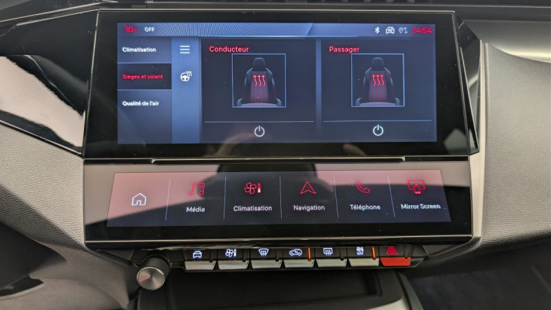 Accès et démarrage mains libres / Frein de stationnement électrique / Détection de sous gonflage / Commutation automatique des feux de route / Rétroviseur intérieur photosensible / Vitres AV feuilletées acoustiques / Airbags frontaux conducteur et passager adaptatifs (passager neutralisable par clé), airbags latéraux conducteur et passager AV.airbags rideaux de tête aux places AV/AR / Essuie-vitre AV à déclenchement automatique / Feux diurnes à LED sous projecteurs / Vitres latérales AR et lunette AR chauffante temporisée surteintées / Fonction DAB (Radio Numérique Terrestre) / Seuils de portes AV aluminium / Sélecteur mode de conduite Eco et Sport / Rétroviseurs extérieurs électriques, dégivrants et rabattables électriquement, avec répétiteurs de feux clignotants à LED / Feux AR spécifiques avec allumage dynamique griffe à griffe / ESP avec fonction Hill Assist (Aide au démarrage en pente) / Pare-brise teinté feuilleté acoustique / Navigation connectée avec écran central tactile 10'' et i-Toggles virtuels personnalisables / Fonction Mirror Screen (Apple CarPlay / Android Auto ) sans fil / Projecteurs Peugeot Matrix LED Technology Éclairage adaptatif en fonction des conditions extérieures et de la circulation / Jantes alliage 19" diamantées GRAPHITE / Volet motorisé avec accès bras chargés / Accoudoir central avec rangement et porte gobelet / Volant chauffant / Pédalier Sport et repose pied en aluminium / Pack Safety Plus : Alerte attention conducteur Reconnaissance étendue des panneaux de signalisation et préconisation de vitesse Alerte active de franchissement involontaire de ligne et bas côté Freinage d'urgence automatique de jour et de nuit (caméra & radar) Freinage d'urgence automatique (Active Safety Brake) avec alerte risque de collision / Peugeot i-Cockpit avec instrumentation numérique 10" personnalisable / Pack Drive Assist Plus : Régulateur de vitesse adaptatif avec fonction Stop&Go Conduite semi-autonome (niveau 2) Aide au maintien de la position dans la voie / Réglage lombaire du siège conducteur / Peugeot Connect SOS / Lève-vitres AV/AR électriques et séquentiels avec antipincement /