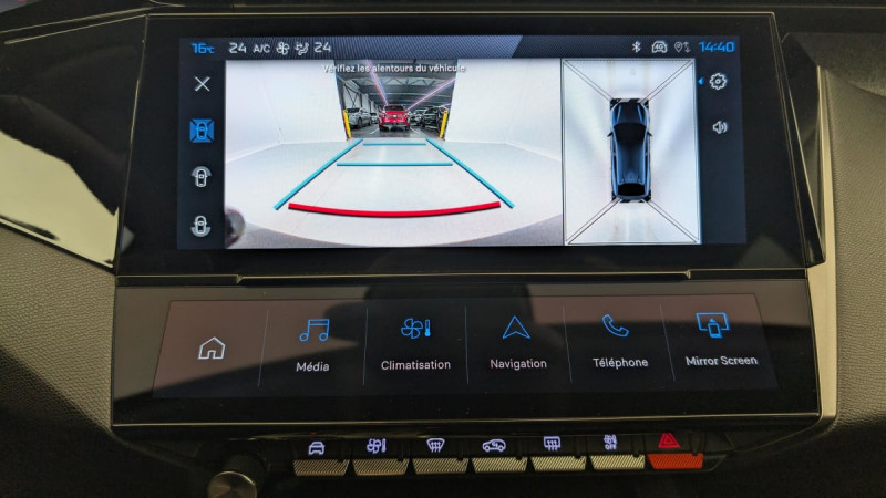 Véhicule livré sans kit de dépannage ni roue de secours / Accès et démarrage mains libres / Frein de stationnement électrique / Détection de sous gonflage / Commutation automatique des feux de route / Rétroviseur intérieur photosensible / Airbags frontaux conducteur et passager adaptatifs (passager neutralisable par clé), airbags latéraux conducteur et passager AV.airbags rideaux de tête aux places AV/AR / Essuie-vitre AV à déclenchement automatique / Feux diurnes à LED sous projecteurs / Vitres latérales AR et lunette AR chauffante temporisée surteintées / Fonction DAB (Radio Numérique Terrestre) / Projecteurs Peugeot LED Technology / Sélecteur mode de conduite Eco et Sport / Rétroviseurs extérieurs électriques, dégivrants et rabattables électriquement, avec répétiteurs de feux clignotants à LED / ESP avec fonction Hill Assist (Aide au démarrage en pente) / Pare-brise teinté feuilleté acoustique / Fonction Mirror Screen (Apple CarPlay / Android Auto ) sans fil / Accoudoir central avec rangement et porte gobelet / Décors intérieurs textiles (planche de bord, panneaux de porte) / Pack Drive Assist : Régulateur de vitesse adaptatif avec fonction Stop&Go / Pack Safety Plus : Alerte attention conducteur Reconnaissance étendue des panneaux de signalisation et préconisation de vitesse Alerte active de franchissement involontaire de ligne et bas côté Freinage d'urgence automatique de jour et de nuit (caméra & radar) Freinage d'urgence automatique (Active Safety Brake) avec alerte risque de collision / Peugeot i-Cockpit avec instrumentation numérique 10" personnalisable / Réglage lombaire du siège conducteur / Sellerie tri-matières TEP / Tissu Falgo, surpiqûres Bleu / Lève-vitres AV/AR électriques et séquentiels avec antipincement /