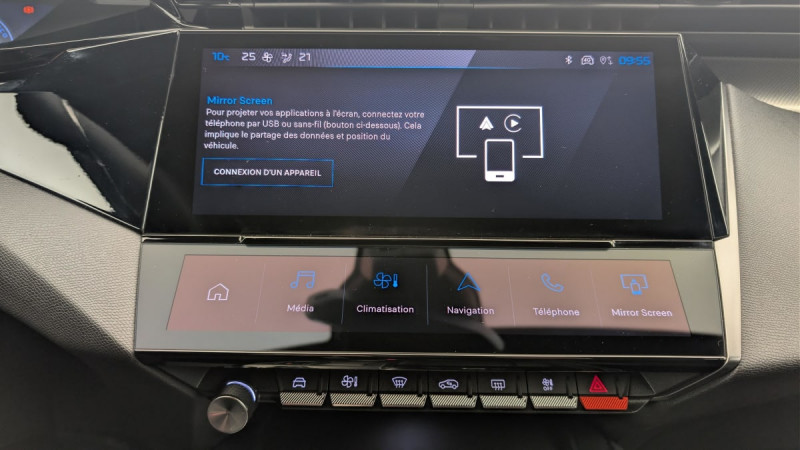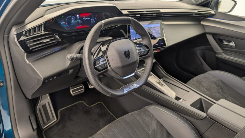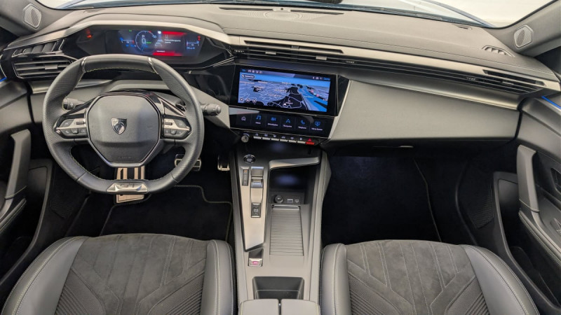 Accès et démarrage mains libres / Frein de stationnement électrique / Détection de sous gonflage / Commutation automatique des feux de route / Pack Safety Plus : Alerte active de franchissement involontaire de ligne et bas côté Alerte attention conducteur par caméra Active Safety Brake piloté par caméra et radar / Vitres AV feuilletées acoustiques / Airbags frontaux conducteur et passager adaptatifs (passager neutralisable par clé), airbags latéraux conducteur et passager AV.airbags rideaux de tête aux places AV/AR / Essuie-vitre AV à déclenchement automatique / 4 poignées de maintien (2 à l'AV et 2 à l'AR) / Sélecteur de modes de conduite (Electric, Hybrid, Sport) / Feux diurnes à LED sous projecteurs / Vitres latérales AR et lunette AR chauffante temporisée surteintées / Fonction DAB (Radio Numérique Terrestre) / VisioPark 1 (caméra de recul) / Chargeur embarqué 3,7kW / Feux AR spécifiques avec allumage dynamique griffe à griffe / ESP avec fonction Hill Assist (Aide au démarrage en pente) / Pare-brise teinté feuilleté acoustique / Câble de recharge mode 2 (10A, 2,3kW) pour prise domestique standard / Pack Drive Assist Plus : Régulateur de vitesse adaptatif avec fonction Stop&Go Aide au maintien de la position dans la voie (conduite semi-autonome) Conduite semi-autonome (niveau 2) / Volant chauffant / Navigation connectée avec écran central tactile 10"et i-Toggles virtuels personnalisables + Peugeot Connect SOS / Fonction Mirror Screen (Apple CarPlay / Android Auto ) sans fil / Peugeot i-Cockpit avec instrumentation numérique 10" 3D personnalisable / Projecteurs Peugeot Matrix LED Technology / Jantes alliage 19" diamantées GRAPHITE / Pack Rear traffic detection : Surveillance d'angles morts Alerte de trafic AR transversal (Rear Cross Traffic Alert) Aide au changement de voie longue portée / Rétroviseurs extérieurs électrique avec éclairage d'approche, dégivrants et rabattables électriquement, avec répétiteurs de feux clignotants à LED / Rétroviseur intérieur électrochrome sans cadre / Sellerie Tri matières maille Fraxx Knit / TEP / Alcantara / Accoudoir central avec rangement et porte gobelet / Reconnaissance vocale en langage naturel / Console centrale avec double surpiqûre et arche de console chromée / Lève-vitres AV/AR électriques et séquentiels avec antipincement / Kit de dépannage de pneumatique /