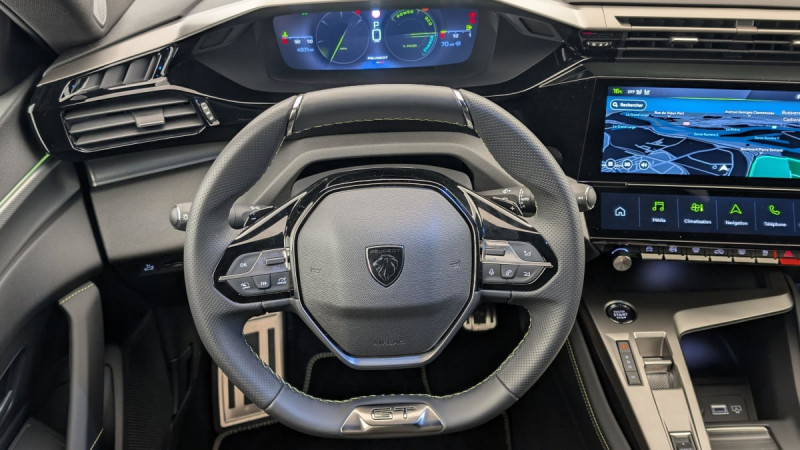 Accès et démarrage mains libres / Frein de stationnement électrique / Détection de sous gonflage / Commutation automatique des feux de route / Rétroviseur intérieur photosensible / Airbags frontaux conducteur et passager adaptatifs (passager neutralisable par clé), airbags latéraux conducteur et passager AV.airbags rideaux de tête aux places AV/AR / Essuie-vitre AV à déclenchement automatique / Feux diurnes à LED sous projecteurs / Vitres latérales AR et lunette AR chauffante temporisée surteintées / Fonction DAB (Radio Numérique Terrestre) / Sélecteur mode de conduite Eco et Sport / Rétroviseurs extérieurs électriques, dégivrants et rabattables électriquement, avec répétiteurs de feux clignotants à LED / Feux AR spécifiques avec allumage dynamique griffe à griffe / ESP avec fonction Hill Assist (Aide au démarrage en pente) / Pare-brise teinté feuilleté acoustique / Navigation connectée avec écran central tactile 10'' et i-Toggles virtuels personnalisables / Fonction Mirror Screen (Apple CarPlay / Android Auto ) sans fil / Projecteurs Peugeot Matrix LED Technology / Jantes alliage 19" diamantées GRAPHITE / Accoudoir central avec rangement et porte gobelet / Volant chauffant / 4 poignées de maintien / Pédalier Sport et repose pied en aluminium / Pack Safety Plus : Alerte attention conducteur Reconnaissance étendue des panneaux de signalisation et préconisation de vitesse Alerte active de franchissement involontaire de ligne et bas côté Freinage d'urgence automatique de jour et de nuit (caméra & radar) Freinage d'urgence automatique (Active Safety Brake) avec alerte risque de collision / Peugeot i-Cockpit avec instrumentation numérique 10" personnalisable / Pack Drive Assist Plus : Régulateur de vitesse adaptatif avec fonction Stop&Go Conduite semi-autonome (niveau 2) Aide au maintien de la position dans la voie / Réglage lombaire du siège conducteur / Peugeot Connect SOS / Lève-vitres AV/AR électriques et séquentiels avec antipincement /