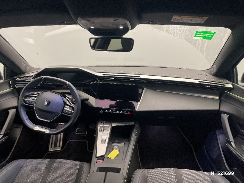 Lécheurs de vitres Noir Brillant / 2 prises USB-C AV/AR / Peugeot Connect SOS & Assistance / Détection de sous gonflage / Driver Sport Pack - Personnalisation du combiné spécifique - Sonorité du moteur amplifiée et plus sportive / Navigation connectée avec i-Toggles virtuels personnalisables / Sellerie tri-matières TEP / Tissu New Belomka / Driver Sport Pack - personnalisation du combiné spécifique, sonorité du moteur amplifiée et plus sportive (désactivable) / Lève-vitres AV et AR électriques séquentiels avec antipincement / Rétroviseurs extérieurs électriques, dégivrants et rabattables électriquement avec répétiteurs de feux clignotants à LED / Feux diurnes à LED sous projecteurs / Vitres latérales AR et lunette AR chauffante temporisée surteintées / 4 poignées de maintien / Sièges dynamiques avec appuis tête AV mécaniques 2 voies / Seuils de portes AV aluminium / Airbags frontaux conducteur et passager adaptatifs (passager neutralisable par clé), airbags latéraux conducteur et passager AV, airbags rideaux de tête aux places AV et AR / Feux AR spécifiques avec allumage dynamique griffe à griffe / Volant chauffant / Planche de bord avec jonc transversal peint, décor Alu et surpiqûres Vert / Vitres AV feuilletées acoustiques / 2 télécommandes 3 boutons / Sélecteur mode de conduite Eco et Sport / Pare-brise teinté feuilleté acoustique / Fonction DAB (Radio Numérique Terrestre) / Essuie-vitre AV à déclenchement automatique / Surtapis AV et AR / Monogrammes latéraux emblème Lion / Rétroviseur intérieur photosensible / Eclairage d?ambiance (8 couleurs) / Pédalier Sport et repose pied en aluminium / Pack Safety Plus Freinage d'urgence automatique (Active Safety Brake ) avec alerte risque de collision Freinage d'urgence automatique de jour et de nuit (caméra & radar) Alerte active de franchissement involontaire de ligne et bas côté Reconnaissance étendue des panneaux de signalisation et préconisation de vitesse Alerte attention conducteur / Peugeot i-Cockpit avec instrumentation numérique 10'' personnalisable / Peugeot Connect SOS & Assistance et Télémaintenance / Sellerie tri-matière tissu TEP / Tissu New Belomka / ESP avec fonction Hill Assist (Aide au démarrage en pente) / Console centrale avec double surpiqûre et arche de console peinture gris Stène / Pack Drive Assist Plus Conduite semi autonome (niveau 2), Régulateur de vitesse adaptatif avec fonction Stop & Go, Aide au maintien de la position dans la voie / Boîte de vitesse automatique, séquentielle (6 rapports) / Réglage lombaire du siège conducteur / Jantes alliage 19" diamantées GRAPHITE / Volet motorisé avec accès bras chargés / Accoudoir central avec rangement et porte gobelet / Calandre avec grille verticale couleur caisse / Panneaux de porte avec surpiqûre Vert Adamite et décors aluminium / Air Quality System (filtre à charbon HEPA) / Ciel de pavillon Noir Mistral / Montants de baie textile Noir Mistral / Navigation connectée avec écran central tactile 10'' et i-Toggles virtuels personnalisables / Fonction Mirror Screen (Apple CarPlay / Android Auto ) sans fil / Projecteurs Peugeot Matrix LED Technology / 2 prises USB-C à l'AR / 2 prises USB-C à l'AV / Commutation automatique des feux de route / Frein de stationnement électrique / Accès et démarrage mains libres