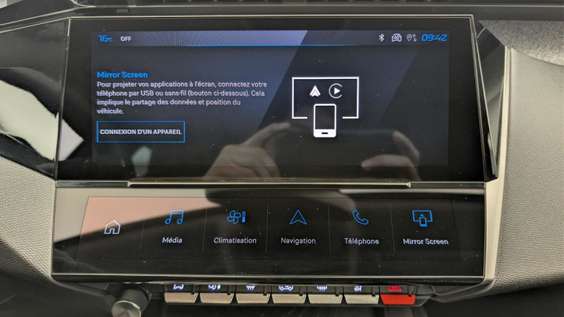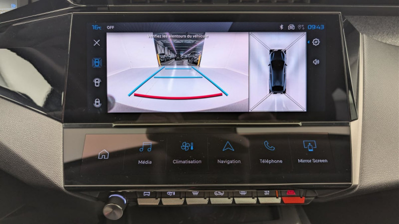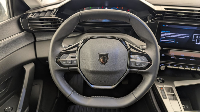 Accès et démarrage mains libres / Frein de stationnement électrique / Détection de sous gonflage / Commutation automatique des feux de route / Rétroviseur intérieur photosensible / Airbags frontaux conducteur et passager adaptatifs (passager neutralisable par clé), airbags latéraux conducteur et passager AV.airbags rideaux de tête aux places AV/AR / Essuie-vitre AV à déclenchement automatique / Feux diurnes à LED sous projecteurs / Vitres latérales AR et lunette AR chauffante temporisée surteintées / Fonction DAB (Radio Numérique Terrestre) / Projecteurs Peugeot LED Technology / Sélecteur mode de conduite Eco et Sport / Rétroviseurs extérieurs électriques, dégivrants et rabattables électriquement, avec répétiteurs de feux clignotants à LED / ESP avec fonction Hill Assist (Aide au démarrage en pente) / Pare-brise teinté feuilleté acoustique / Fonction Mirror Screen (Apple CarPlay / Android Auto ) sans fil / Accoudoir central avec rangement et porte gobelet / Décors intérieurs textiles (planche de bord, panneaux de porte) / Pack Drive Assist : Régulateur de vitesse adaptatif avec fonction Stop&Go / Pack Safety Plus : Alerte attention conducteur Reconnaissance étendue des panneaux de signalisation et préconisation de vitesse Alerte active de franchissement involontaire de ligne et bas côté Freinage d'urgence automatique de jour et de nuit (caméra & radar) Freinage d'urgence automatique (Active Safety Brake) avec alerte risque de collision / Peugeot i-Cockpit avec instrumentation numérique 10" personnalisable / Réglage lombaire du siège conducteur / Sellerie tri-matières TEP / Tissu Falgo, surpiqûres Bleu / Lève-vitres AV/AR électriques et séquentiels avec antipincement /