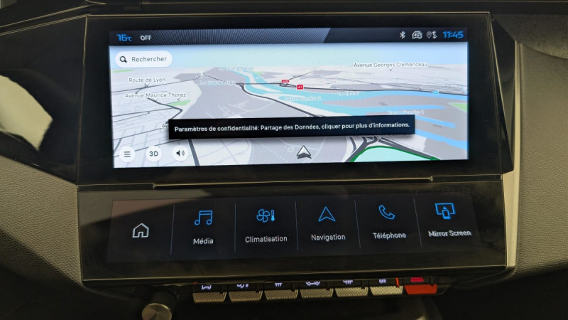 Accès et démarrage mains libres / Frein de stationnement électrique / Détection de sous gonflage / Commutation automatique des feux de route / Airbags frontaux conducteur et passager adaptatifs (passager neutralisable par clé), airbags latéraux conducteur et passager AV.airbags rideaux de tête aux places AV/AR / Feux diurnes à LED sous projecteurs / Vitres latérales AR et lunette AR chauffante temporisée surteintées / Fonction DAB (Radio Numérique Terrestre) / Projecteurs Peugeot LED Technology / VisioPark 1 (caméra de recul) / Sélecteur mode de conduite Eco et Sport / Rétroviseurs extérieurs électriques, dégivrants et rabattables électriquement, avec répétiteurs de feux clignotants à LED / 2 prises USB-C à l'AV / Lécheurs de vitres Noir Brillant / ESP avec fonction Hill Assist (Aide au démarrage en pente) / Fonction Mirror Screen (Apple CarPlay / Android Auto ) sans fil / Accoudoir central avec rangement et porte gobelet / Calandre avec grille chromée / Décors intérieurs textiles (planche de bord, panneaux de porte) / Air Quality System (filtre à charbon HEPA) / Reconnaissance vocale en langage naturel / Active Safety Brake piloté par caméra et radar / Pack Drive Assist : Régulateur de vitesse adaptatif avec fonction Stop&Go / Pack Safety Plus : Alerte attention conducteur Reconnaissance étendue des panneaux de signalisation et préconisation de vitesse Alerte active de franchissement involontaire de ligne et bas côté Freinage d'urgence automatique de jour et de nuit (caméra & radar) Freinage d'urgence automatique (Active Safety Brake) avec alerte risque de collision / Peugeot i-Cockpit avec instrumentation numérique 10" personnalisable / Réglage lombaire du siège conducteur / Lève-vitres AV/AR électriques et séquentiels avec antipincement /