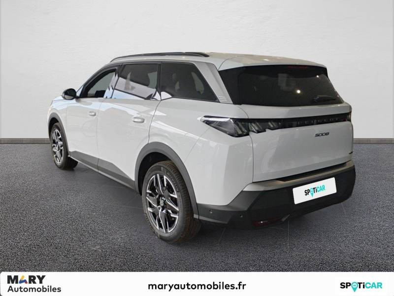 3 prises 12 V (Console centrale / rang 2 / coffre) / 4 poignées de maintien rétractables (2 à l'AV et 2 à l'AR) / 6 airbags: Frontaux conducteur et passager (passager neutralisable par clé) / latéraux conducteur et passager AV (thorax et bassin) / rideaux aux places AV et AR (tête et thorax) / 6 HP (2 tweeters et 2 woofers à l'AV et 2 larges bandes à l'AR) / Accès et démarrage mains libres Proximity 2 Télécommandes 3 boutons (verrouillage / coffre / déverrouillage) / Air conditionné automatique tri-zone / Bandeau entre feux AR Noir laqué avec lettrage 'PEUGEOT' / Bandeau entre les projecteurs Noir laqué avec logo ‘5008' / Banquette 2 places au rang 3 avec dossiers rabattables 50/50 / avec dossiers inclinables et rabattables 40/20/40 / avec fonction Easy Access aux places du rang 3 / Barres de toit longitudinales Noir Brillant / Boîte de vitesse automatique / séquentielle (6 rapports) / Calandre couleur caisse / écopes latérales Noir laqué / décor inférieur Gris Méteor / Contrôle de traction / Détection de sous-gonflage indirecte / Eclairage intérieur Plafonnier AV et liseuses arrière à LED / Boite à gants et rangement de console éclairés à LED / Eclairage des caves à pieds AV à LED / Eléments de style intérieure Planche de bord moussée avec décor tissu RIMINI chiné et alcôve Graphène / façade et aérateurs Noir laqué avec décor Gris Stène / Panneaux de portes avec décor tissu RIMINI chiné / alcôve Graphène et jonc Gris Stène / accoudoirs TEP Isabella / surpiqûres Quartz à l'AV / Console centrale avec décor tissu RIMINI chiné / façade Noir laqué et jonc Gris Stène / accoudoir tissu RIMINI chiné / Enjoliveurs de passages de roues et protections inférieures de portes Noir grainé / Essuie-vitre AV à déclenchement automatique / Fixations ISOFIX et Top Tether aux places latérales rang 2 / Frein de stationnement électrique / Habitacle et ciel de pavillon Noir / Jupe inférieure Noir grainé. / Lécheurs de vitres masqués / Lève-vitres AV/AR électriques et séquentiels avec antipincement / Monogrammes AR '5008' et 'Hybrid / Monogrammes AV: 'blason PEUGEOT' et '5008' / Pack 360° Vision & Drive Assist VisioPark 360° / 4 caméras HD / Rétr.éxter.dégivrants à réglage / rabattement électr. / éclairage de seuil index.marche AR avec mémor. Drive Assist:Régulateur de vitesse adaptatif avec fonction Stop&Go Détection de trafic AR Commutation automatique des feux de route Volant compact cuir fleur lisse avec commandes intégrées Noir laqué / décors Gris Stène et surp.Quartz Volant chauffant Alarme périmétrique / volumique / antisoulèvement Supercondamnation des ouvrants / Pack Panoramic Navigation PEUGEOT i-Cockpit panoramique avec écran incurvé et flottant 21 HD / PEUGEOT i-Toggles virtuels avec 10 raccourcis personnalisables / PEUGEOT i-Connect Advanced: Navigation 3D connectée: 3 prises USB: 1 prise USB-C (Data&Charge) à l'AV / 2 prises USB-C (Charge) à l'AR / 2 prises 12V (console central / coffre) Connect Plus (Abonnement 6 mois inclus / renouvellement 12 € / mois) Recharge smartphone sans fil (15 W) / Pack Safety Plus Régulateur / Limiteur de vitesse / Freinage d'urgence automatique avec alerte risque de collision pilotée par caméra et radar / Alerte active de franchissement involontaire de ligne et bas côté / Alerte attention conducteur / Pare-brise feuilleté acoustique / Pare chocs AR avec décor Gris Meteor / PEUGEOTConnect One Fonctionnalités principales à bord (Mises à jour Over The Air / Géolocalisation) / Services de sécurité (Appel d'urgence / Peugeot Assistance) / Services d'entretien (Télémaintenance / guide d'utilisation digital) (Abonnement 10 ans inclus) / PEUGEOT Connect Plus Services de sécurité: alarme connectée (Si véhicule équipé de l'alarme) / Services à distance (E Remote Control / Remote Control / Find My Car / My Trip Report / Peugeot Skill for Alexa) e-ROUTES par Free2move charge (Abonnement 6 mois inclus / renouvellement 8 € /mois) / PEUGEOT i-Cockpit panoramique avec Double écran HD flottant (2 x 10'') / PEUGEOT i-Connect Radio DAB / Bluetooth (connexion 2 téléphones) / Mirror Screen sans fil (Apple CarPlay / Android Auto) / Peugeot Connect SOS & Assistance / 1 prise USB C (Data & charge) / Plancher de coffre modulable 2 positions / Projecteurs Peugeot LED Technology / Rétroviseur intérieur électrochrome / Rétroviseurs extérieurs dégivrants avec réglage et rabattement électriques / éclairage de seuil / Sellerie tissu CRISPY embossé / accompagnement TEP Isabella / écharpe tissu RIMINI chiné / surpiqûres Quartz / Siège conducteur et passager avec réglage en hauteur manuel / Teintes métallisées / Visiopark 1: caméra de recul HD & aide au stationnement AR / graphique et sonore / Vitres AR / custodes et lunette AR teintées / Volant compact croûte de cuir avec commandes intégrées Noir laqué / décors Gris Stène