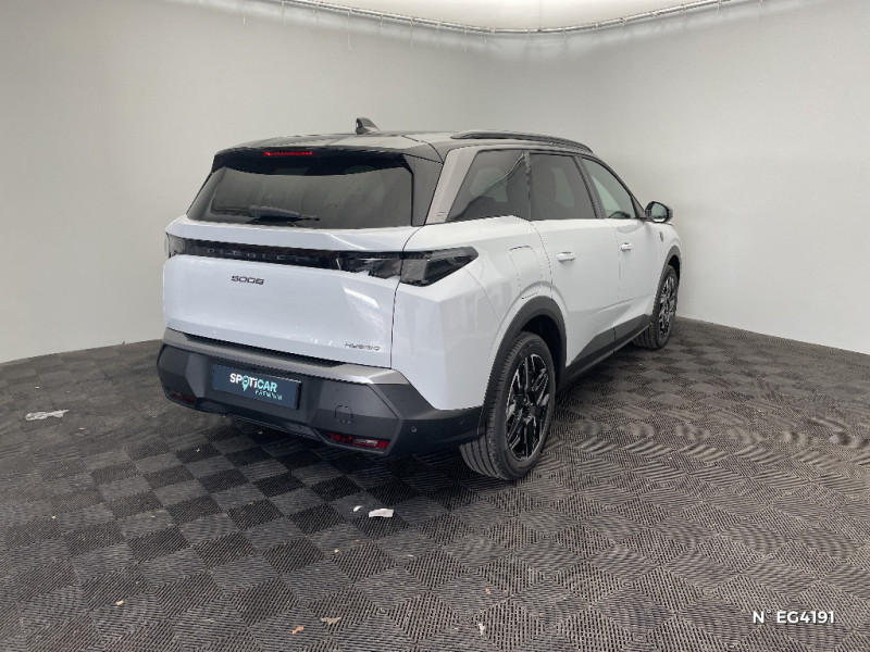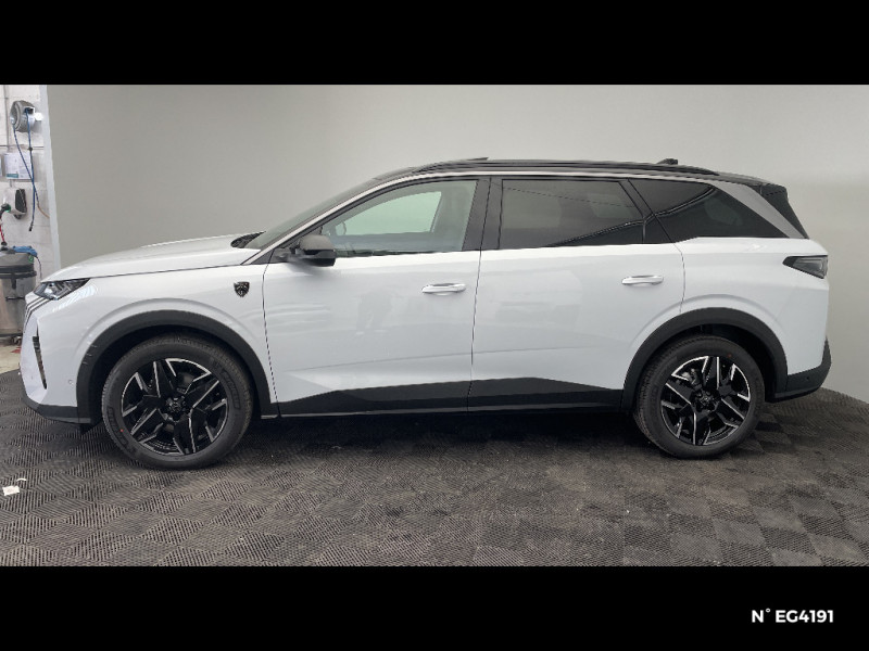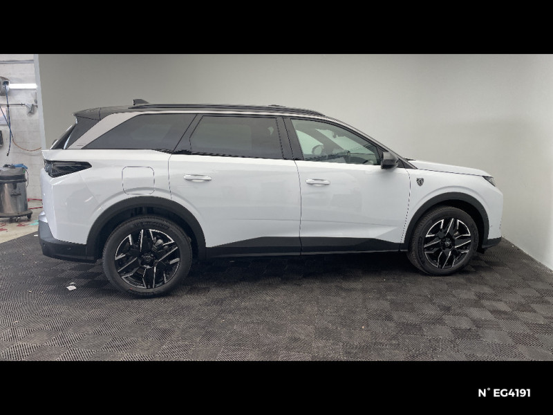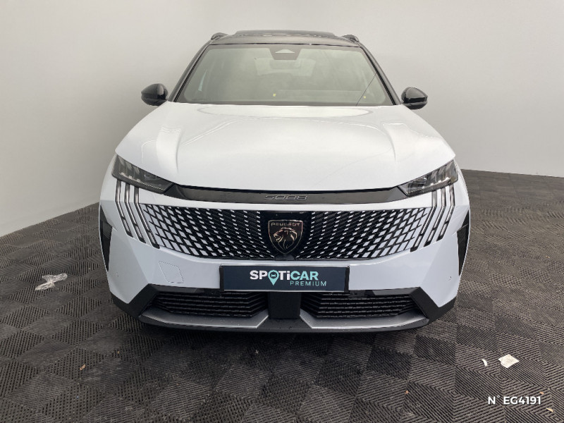 Toit et becquet AR Black Diamond / Surtapis AV et AR avec surpiqûres Iced Clay / Vitres AR, vitres de custode et lunette AR surteintées / Volant chauffant / Volant compact, cuir fleur lisse et perforé avec commandes intégrées Noir Laqué, décors Cast Iron, surpiqûres Iced Clay, insert Noir laqué avec badge 'GT' / 2 prises 12 V (Console centrale, coffre) / 4 poignées de maintien rétractables / 6 airbags: Frontaux conducteur et passager (passager neutralisable par clé), latéraux conducteur et passager AV (thorax et bassin), rideaux aux places AV et AR (tête et thorax) / 6 HP (2 tweeters et 2 woofers à l'AV et 2 larges bandes à l'AR) / Pack Safety Plus Régulateur / Limiteur de vitesse, Freinage d'urgence automatique avec alerte risque de collision pilotée par caméra et radar, Alerte active de franchissement involontaire de ligne et bas côté, Reconnaissance étendue des panneaux de signalisation et préconisation de vitesse, Alerte attention conducteur / Accès et démarrage mains libres Proximity 2 Télécommandes 3 boutons (verrouillage, coffre, déverrouillage) / Bandeau entre les feux AR Noir laqué avec lettrage 'PEUGEOT' / Bandeau entre les projecteurs Noir laqué avec logo '5008' / Banquette rang 2 avec accoudoir central / Banquette rang 2 coulissante 60/40, avec dossiers inclinables et rabattables 40/20/40, avec fonction Easy Access aux places du rang 3 / Banquette 2 places au rang 3 avec dossiers rabattables 50/50 / Barres de toit longitudinales Noir Brillant / Boîte de vitesse automatique, séquentielle (6 rapports) / Calandre couleur caisse, écopes latérales Noir laqué, décor inférieur Gris Méteor / Commutation adaptative des projecteurs / Détection de sous-gonflage indirecte / Drive Assist - Régulateur de vitesse adaptatif avec fonction Stop & Go / Eclairage d'ambiance indirect, jour & nuit sur la planche de bord, les panneaux de portes AV/AR et sous l'écran panoramique 21'', associé aux modes de conduite, personnalisable en 8 couleurs / Eclairage intérieur Miroirs de courtoisie conducteur et passager occultables éclairés à LED, Plafonnier AV et lisseuses AR DOME à LED / Eléments de style intérieure Planche de bord moussée avec décor tissu RIMINI chiné, décor d'alcôve en Aluminium sérigraphié, faà§ade et aérateurs Noir laqué avec décor Gris Stène Panneaux de portes avec décor tissu RIMINI chiné, décor d'alcôve en Aluminium sérigraphié et jonc Gris Stène, accoudoirs TEP Isabella, surpiqûres Iced Clay à l'AV Console centrale avec décor tissu RIMINI chiné, faà§ade Noir laqué et jonc Gris Stène, accoudoir tissu RIMINI chiné / Enjoliveurs de passages de roues et protections inférieures de portes Noir grainé / Essuie-vitre AV à déclenchement automatique / Frein de stationnement électrique / Habitacle et ciel de pavillon Noir / Hayon motorisé avec accès mains libres / Jantes alliage 19" diamantées BREDA Noir Orbital, vernis brillant / Jupe inférieure Noir grainé / Lécheurs de vitres masqués / Lève-vitres AV/AR électriques et séquentiels avec antipincement / Monogrammes ailes AV: 'blason PEUGEOT' / Monogrammes AR '5008' et 'Hybrid / Monogrammes AV : blason PEUGEOT et 5008 / Pare chocs AR avec décor Gris Meteor / Pare-brise feuilleté acoustique / Pédalier et repose pied aluminium / PEUGEOT i-Cockpit panoramique avec écran incurvé et flottant 21'' HD / PEUGEOT i-Connect Advanced - Navigation 3D connectée, 4 prises USB: 1 prise USB C (Data & charge) et 1 prise USB C (Charge) à l'AV, 2 prises USB C (Charge) à l'AR - Connect Plus (Abonnement 6 mois inclus) - 2 prises 12 V (Console centrale, coffre) / PEUGEOT i-Toggles virtuels avec 10 raccourcis personnalisables / Plancher de coffre modulable 2 positions / Projecteurs PEUGEOT PIXEL LED Eclairage adaptatif, commutation automatique des feux de route, feux de route avec fonctions anti éblouissement et boost / Rétroviseur intérieur électrochrome / Rétroviseurs extérieurs dégivrants avec réglage et rabattement électriques, éclairage de seuil / Sellerie tissu NEW UZIRIS embossé, accompagnement TEP Isabella, écharpe tissu RIMINI chiné, surpiqûres Iced Clay / Seuil de portes AV inox avec lettrage PEUGEOT / Siège conducteur à réglage lombaire manuel / Stores pare soleil intégrés dans les portes AR / Visiopark 1: caméra de recul HD & aide au stationnement AV/AR, graphique et sonore