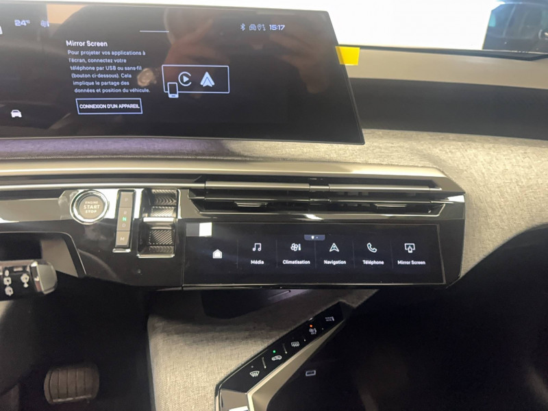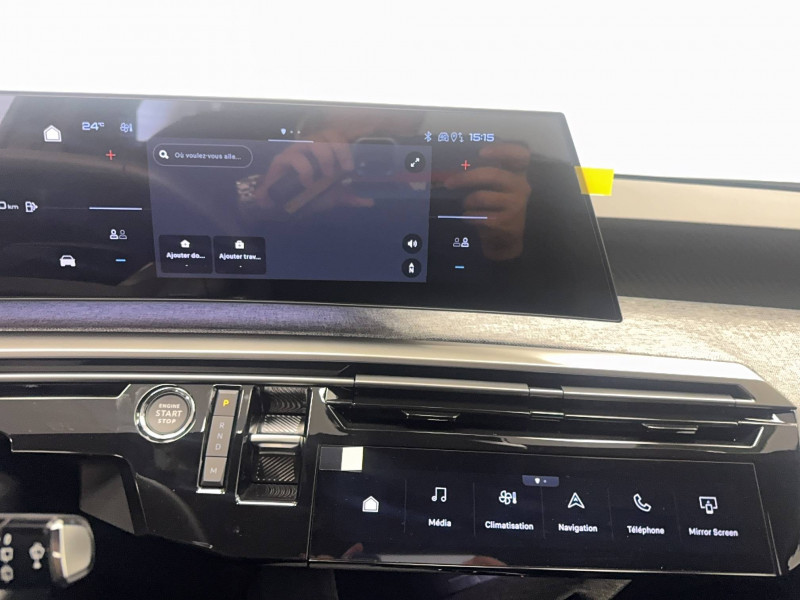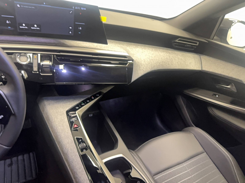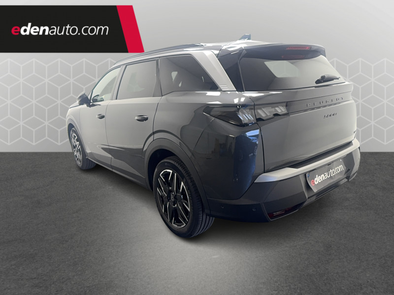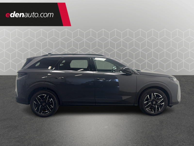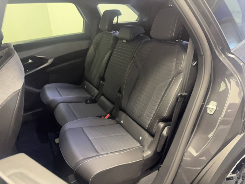 3 prises 12 V (Console centrale, AR de la console centrale, coffre) / 4 poignées de maintien rétractables (2 à l'AV et 2 à l'AR) / 6 HP (2 tweeters et 2 woofers à l'AV et 2 larges bandes à l'AR) / 8 airbags: frontaux conducteur et passager auto-adaptatifs (passager neutralisable par clé), latéraux conducteur et passager AV (thorax et bassin), rideaux aux places AV et AR (tête et thorax) / Accès et démarrage mains libres Proximity 2 Télécommandes 3 boutons (verrouillage, coffre, déverrouillage) / Bandeau entre feux AR Noir laqué avec lettrage 'PEUGEOT' / Bandeau entre les projecteurs Noir laqué avec logo ?5008' / Banquette 2 places au rang 3 avec dossiers rabattables 50/50 / Banquette rang 2 coulissante 60/40, avec dossiers inclinables et rabattables 40/20/40, avec fonction Easy Access aux places du rang 3 / Calandre couleur caisse, écopes latérales Noir laqué, décor inférieur Gris Méteor / Détection de sous-gonflage indirecte / Eclairage intérieur Plafonnier AV et liseuses arrière à LED, Boite à gants et rangement de console éclairés à LED, Eclairage des caves à pieds AV à LED / Eléments de style intérieure Planche de bord moussée avec décor tissu RIMINI chiné et alcôve Graphène, façade et aérateurs Noir laqué avec décor Gris Stène, Panneaux de portes avec décor tissu RIMINI chiné, alcôve Graphène et jonc Gris Stène, accoudoirs TEP Isabella, surpiqûres Quartz à l'AV, Console centrale avec décor tissu RIMINI chiné, façade Noir laqué et jonc Gris Stène, accoudoir tissu RIMINI chiné / Enjoliveurs de passages de roues et protections inférieures de portes Noir grainé / Essuie-vitre AV à déclenchement automatique / Frein de stationnement électrique / Habitacle et ciel de pavillon Noir / Jantes alliage 19" diamantées BREDA Noir Orbital, vernis brillant / Jupe inférieure Noir grainé. / Lécheurs de vitres masqués / Lève-vitres AV/AR électriques et séquentiels avec antipincement / Monogrammes AR '5008' et 'Hybrid / Monogrammes AV: 'blason PEUGEOT' et '5008' / Pack Safety Plus Régulateur / Limiteur de vitesse, Freinage d'urgence automatique avec alerte risque de collision pilotée par caméra et radar, Alerte active de franchissement involontaire de ligne et bas côté, Reconnaissance étendue des panneaux de signalisation et préconisation de vitesse, Alerte attention conducteur / Pare-brise feuilleté acoustique / Pare chocs AR avec décor Gris Meteor / PEUGEOTConnect One Fonctionnalités principales à bord (Mises à jour Over The Air, Géolocalisation), Services de sécurité (Appel d'urgence, Peugeot Assistance), Services d'entretien (Télémaintenance, guide d'utilisation digital) (Abonnement 10 ans inclus) / PEUGEOT Connect Plus Services de sécurité: alarme connectée (Si véhicule équipé de l'alarme), Services à distance (E Remote Control, Remote Control, Find My Car, My Trip Report, Peugeot Skill for Alexa) e-ROUTES par Free2move charge (Abonnement 6 mois inclus, renouvellement 8 ? /mois) / PEUGEOT i-Cockpit panoramique avec Double écran HD flottant (2 x 10'') / PEUGEOT i-Connect Radio DAB, Bluetooth (connexion 2 téléphones), Mirror Screen sans fil (Apple CarPlay / Android Auto), Peugeot Connect SOS & Assistance, 1 prise USB C (Data & charge) / Plancher 1 position, rangement sous plancher / Projecteurs Peugeot LED Technology / Rétroviseur intérieur électrochrome / Rétroviseurs extérieurs dégivrants avec réglage et rabattement électriques, éclairage de seuil / Sellerie tissu CRISPY embossé, accompagnement TEP Isabella, écharpe tissu RIMINI chiné, surpiqûres Quartz / Visiopark 1: caméra de recul HD & aide au stationnement AR, graphique et sonore / Vitres AR, custodes et lunette AR teintées / Volant compact croûte de cuir avec commandes intégrées Noir laqué, décors Gris Stène