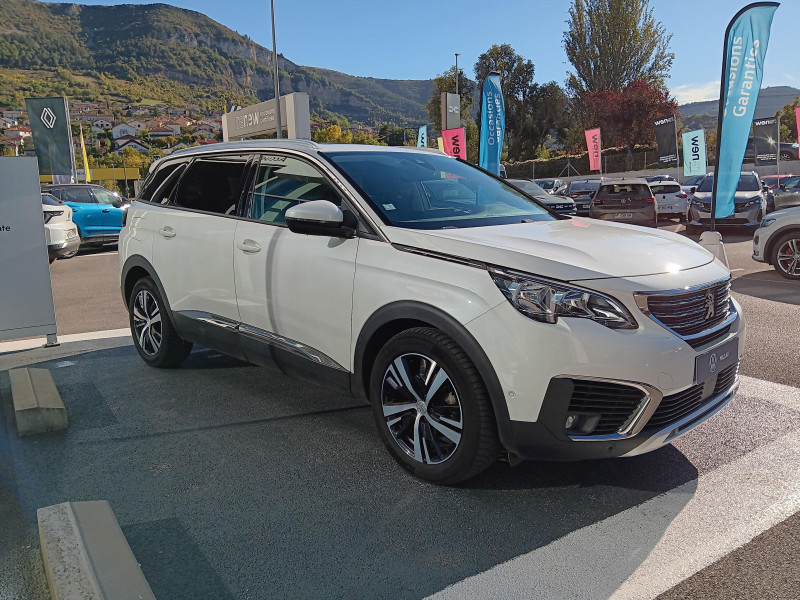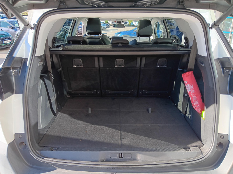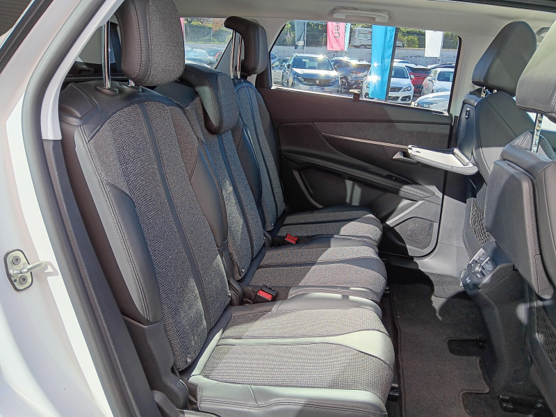 Aide graphique et sonore au stationnement AR / Aide graphique et sonore au stationnement AV / Air conditionné automatique bi-zone avec aérateurs aux places AR / Barres de toit longitudinales profilée en Aluminium / Essuie-vitre AR avec enclenchement automatique en marche AR / Frein de stationnement électrique avec aide au démarrage en pente / Jantes alliage 18" "Detroit" bi-ton diamantées / Kit de dépannage de pneumatique : compresseur 12 volts, flacon de produit de colmatage, anneau de remorquage, deux cales de roue, manivelle de frein de stationnement électrique / Pack City 1 / Pack Eclairage d'ambiance / Pack Safety Plus / Pack Visibilité / Projecteurs halogènes à l'AV avec feux diurnes à LED / Volant Cuir pleine fleur / 2 sièges escamotables et extractibles pour les passagers du 3ème rang / Accoudoir central AV à ouverture papillon, avec compartiment de rangement éclairé et réfrigérable / Accès et démarrage mains libres / Airbags frontaux conducteur et passager adaptatifs (passager neutralisable par clé), airbags latéraux conducteur et passager AV.airbags rideaux de tête aux places AV/AR / Appuis-tête à sécurité optimisée réglables en hauteur sur les sièges conducteur et passager AV ainsi que sur les places latérales AR / Avertisseur de temps de conduite / Boîte à gants floquée et éclairée / Boîtiers de rétroviseurs extérieurs dans la couleur de la carrosserie / Calandre avec jonc périphérique et ailettes chromés / Ceintures de sécurité 3 points à enrouleur (x2) au 3ème rang / Ceintures de sécurité 3 points à enrouleur (x3) au 2ème rang, avec prétensionneurs et limiteurs d'effort aux places latérales / Ceintures de sécurité AV 3 points à enrouleur, réglables en hauteur avec prétensionneurs et limiteurs d'effort / Commande de verrouillage à distance (2 plips) / Console centrale AV avec 2 porte-gobelets / Contrôle dynamique de stabilité CDS avec antipatinage électronique ASR / Direction assistée électrique, colonne de direction réglable en hauteur et profondeur (mécanique) / Décors de planche de bord et panneaux de portes en maille "Brumeo" / Décors intérieurs (baguettes de planche de bord et panneaux de portes, enjoliveur de console) chromés / Détection de sous-gonflage indirecte / Ecran tactile capacitif 8" et "Toggles Switches" / Enjoliveur d'arc de pavillon en inox / Enjoliveur de seuil d'entrée de coffre chromé / Enjoliveur en inox sur les protecteurs de bas de portes / Essuie-vitre AV avec système de lavage "Magic Wash" / Fixations pour 3 sièges enfants suivant norme ISOFIX aux places du 2ème rang / Fonction "Mirror Screen" / Indicateur de rapport conseillé / Inserts d'ailes AV chromés / Lunette AR chauffante avec antennes sérigraphiées / Lève-vitres AR électriques et séquentiels avec antipincement / Lève-vitres AV électriques et séquentiels avec antipincement / Nouveau Peugeot i-Cockpit : combiné tête haute numérique reconfigurable et volant compact multi-fonctions / Passages de roues rapportés noirs / Peugeot Connect / Plafonnier AV avec spots de lecture (x2) et plafonniers à extinction temporisée aux 2ème et 3ème rangs / Poches/filets aumonières au dos des sièges AV / Poignées de maintien (x4) rétractables avec frein (crochets pour cintres aux places AR) / Poignées de portes couleur carrosserie / Prise 12 V (x3 : zone connectique, AR de console et coffre) / Prise USB (dans la zone connectique) / Radio 6 HP, bi-tuner compatible MP3 et connectivité Bluetooth (audio streaming, kit mains libres), avec commandes au volant, écran tactile capacitif 8" / Rideaux pare-soleil (x2) pour les passagers du 2ème rang / Rétroviseurs indéxés à la marche AR / Sabots de pare-chocs AV gris métallisé / Siège conducteur à réglage lombaire manuel / Siège passager AV mécanique avec mise en tablette / Siège passager AV mécanique réglable en hauteur / Spots de lecture (x2) aux 2ème et 3ème rangs / Système d'antiblocage des roues ABS avec répartiteur électronique de freinage REF et assistance au freinage d'urgence AFU / Sécurité enfants électrique des vitres AR / Tablettes aviation aux dos des sièges du rang 1 / Trappes de rangement (x2) aux pieds des passagers du 2ème rang / Visiopark 1 / Vitres latérales AR et lunette AR surteintées