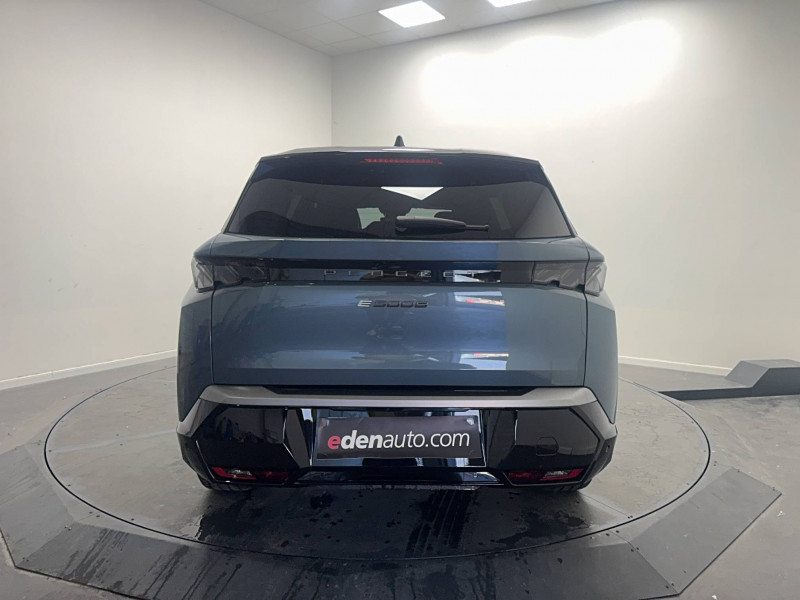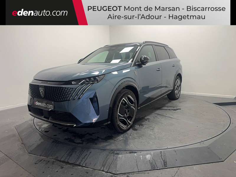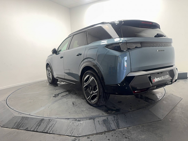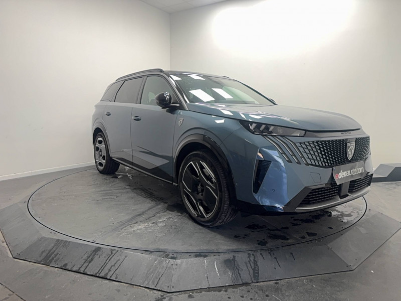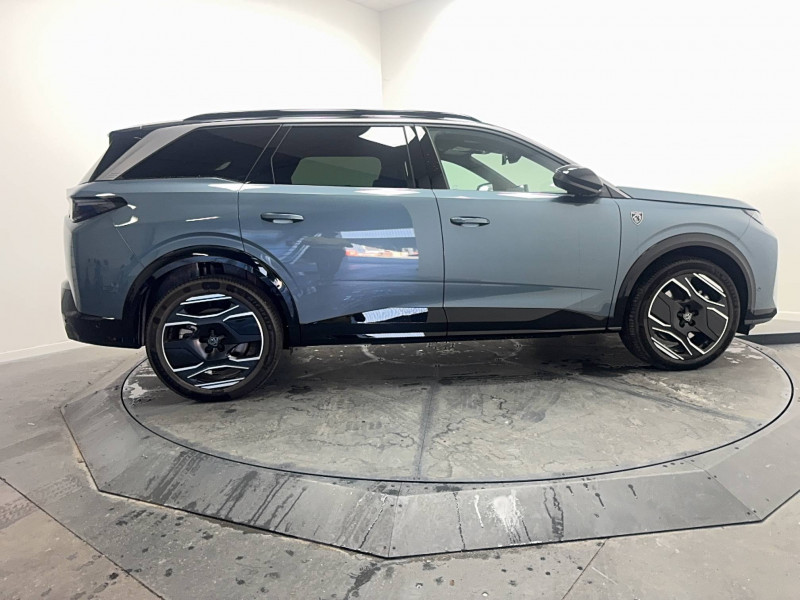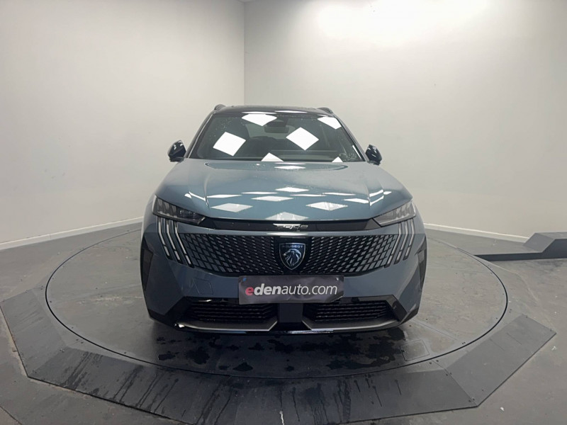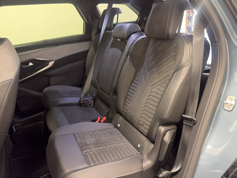 3 prises 12 V (Console centrale, AR de la console centrale, coffre) / 4 poignées de maintien rétractables (2 à l'AV et 2 à l'AR) / 6 HP (2 tweeters et 2 woofers à l'AV et 2 larges bandes à l'AR) / 8 airbags: frontaux conducteur et passager auto-adaptatifs (passager neutralisable par clé), latéraux conducteur et passager AV (thorax et bassin), rideaux aux places AV et AR (tête et thorax) / Accès et démarrage mains libres Proximity / Bandeau entre les feux AR Noir laqué avec lettrage 'PEUGEOT' / Bandeau entre les projecteurs Noir laqué avec logo ?5008' / Banquette 2 places au rang 3 avec dossiers rabattables 50/50 / Banquette rang 2 avec accoudoir central / Banquette rang 2 coulissante 60/40, avec dossiers inclinables et rabattables 40/20/40, avec fonction Easy Access aux places du rang 3 / Câble électrique mode 3 triphasé 22 kW / Calandre couleur caisse, écopes latérales Noir laqué, décor inférieur Gris Méteor / Chargeur embarqué 11kW triphasé / Commutation adaptative des projecteurs / Détection de sous-gonflage indirecte / Drive Assist - Régulateur de vitesse adaptatif avec fonction Stop & Go / Eclairage d'ambiance indirect, jour & nuit sur la planche de bord, les panneaux de portes AV et sous l'écran panoramique 21'', associé aux modes de conduite, personnalisable en 8 couleurs / Eclairage intérieur Miroirs de courtoisie conducteur et passager occultables éclairés à LED, Plafonnier AV et lisseuses AR i-DOME tactiles à LED / Eléments de style extérieur Jupes inférieures AV et AR, enjoliveurs de passages de roues et protections inférieures de portes Noir laqué / Eléments de style intérieure Planche de bord moussée avec décor tissu RIMINI chiné, décor d'alcôve en Aluminium sérigraphié, façade et aérateurs Noir laqué avec décor Cast Iron, Panneaux de portes avec décor tissu RIMINI chiné, décor d'alcôve en Aluminium sérigraphié et jonc Cast Iron , accoudoirs TEP Isabella, surpiqûres Iced Clay à l'AV, Console centrale avec décor tissu RIMINI chiné, façade Noir laqué et jonc Cast Iron, accoudoir tissu RIMINI chiné / Enjoliveurs de passages de roues et protections inférieures de portes Noir grainé / Essuie-vitre AV à déclenchement automatique / Frein de stationnement électrique / Habitacle et ciel de pavillon Noir / Hayon motorisé avec accès mains libres / Jantes alliage 20'' diamantées SOFIA Noir Orbital, vernis mat avec inserts aéro, vernis brillant / Jupe inférieure Noir grainé. / Kit de dépannage de pneumatique Compresseur 12 volts, flacon de produit de colmatage, anneau de remorquage, deux cales de roue / Lécheurs de vitres masqués / Lève-vitres AV/AR électriques et séquentiels avec antipincement / Monogrammes ailes AV: 'blason PEUGEOT' / Monogrammes AR 'E5008' / Monogrammes AV : blason PEUGEOT et 5008 / Pack Safety Plus Régulateur / Limiteur de vitesse, Freinage d'urgence automatique avec alerte risque de collision pilotée par caméra et radar, Alerte active de franchissement involontaire de ligne et bas côté, Reconnaissance étendue des panneaux de signalisation et préconisation de vitesse, Alerte attention conducteur / Pare-brise feuilleté acoustique / Pare chocs AR avec décor Gris Meteor / Pédalier et repose pied aluminium / PEUGEOTConnect One Fonctionnalités principales à bord (Mises à jour Over The Air, Géolocalisation), Services de sécurité (Appel d'urgence, Peugeot Assistance), Services d'entretien (Télémaintenance, guide d'utilisation digital) (Abonnement 10 ans inclus) / PEUGEOT Connect Plus: Reconnaissance vocale connectée en langage naturel. ChatGPT(Disponibilité ultérieurement), Services de sécurité: alarme connectée (Si véhicule équipé de l'alarme).Services à distance (E-Remote Control, Remote Control, Find My Car, My Trip Report, Peugeot Skill for Alexa).Fonctions de Navigation (Trafic en temps réel, prévisions météorologiques, parking, recherche TomTom, limitations de vitesse, prix du carburant, mise à jour cartographie Over The Air, Send to Nav, Geofencing) echarges publiques, Trip Planner, e-ROUTES par Free2move charge / PEUGEOT i-Cockpit panoramique avec écran incurvé et flottant 21'' HD / PEUGEOT i-Connect Advanced Navigation 3D connectée, 4 prises USB: 1 prise USB C (Data & charge) et 1 prise USB C (Charge) à l'AV, 2 prises USB C (Charge) à l'AR / PEUGEOT i-Toggles virtuels avec 10 raccourcis personnalisables / Plancher 1 position, rangement sous plancher / Projecteurs PEUGEOT PIXEL LED Eclairage adaptatif, commutation automatique des feux de route, feux de route avec fonctions anti éblouissement et boost / Recharge smartphone sans fil (puissance 15W) / Rétroviseur intérieur électrochrome sans cadre / Rétroviseurs extérieurs dégivrants avec réglage et rabattement électriques, éclairage de seuil / Sellerie Alcantara REFLECTION embossé, accompagnement TEP Isabella, écharpe tissu RIMINI chiné, surpiqûres Iced Clay / Seuil de portes AV inox avec lettrage PEUGEOT / Siège conducteur à réglage lombaire manuel / Stores pare soleil intégrés dans les portes AR / Surtapis AV et AR avec surpiqûres Iced Clay et logo GT / Toit et becquet AR Black Diamond / Visiopark 1: caméra de recul HD & aide au stationnement AV/AR, graphique et sonore / Vitres AR, custodes et lunette AR teintées / Volant chauffant / Volant compact, cuir fleur lisse et perforé avec commandes intégrées Noir Laqué, décors Cast Iron, surpiqûres Iced Clay, insert Noir laqué avec badge ?GT'