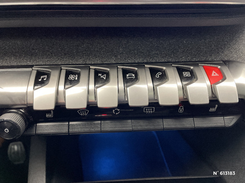 Système d'antiblocage des roues ABS avec répartiteur électronique de freinage REF et assistance au freinage d'urgence AFU / Volant Cuir pleine fleur / Rétroviseurs indéxés à la marche AR / Lève-vitres AV électriques et séquentiels avec antipincement / Plafonnier AV avec spots de lecture (x2) et plafonniers à extinction temporisée aux 2ème et 3ème rangs / Spots de lecture (x2) aux 2ème et 3ème rangs / Trappes de rangement (x2) aux pieds des passagers du 2ème rang / Siège passager AV mécanique réglable en hauteur / Projecteurs halogènes à l'AV avec feux diurnes à LED / Fonction "Mirror Screen" / Sellerie TEP & Tissu "Evron" / Fixations pour 3 sièges enfants suivant norme ISOFIX aux places du 2ème rang / Ceintures de sécurité 3 points à enrouleur (x3) au 2ème rang, avec prétensionneurs et limiteurs d'effort aux places latérales / Ceintures de sécurité 3 points à enrouleur (x2) au 3ème rang / Kit de dépannage de pneumatique : compresseur 12 volts, flacon de produit de colmatage, anneau de remorquage, deux cales de roue, manivelle de frein de stationnement électrique / Commande de verrouillage à distance (2 plips) / Décors intérieurs (baguettes de planche de bord et panneaux de portes, enjoliveur de console) chromés / Détection de sous-gonflage indirecte / Radio 6 HP, bi-tuner compatible MP3 et connectivité Bluetooth (audio streaming, kit mains libres), avec commandes au volant, écran tactile capacitif 8" / Lève-vitres AR électriques et séquentiels avec antipincement / Poignées de portes couleur carrosserie / Peugeot Connect / Airbags frontaux conducteur et passager adaptatifs (passager neutralisable par clé), airbags latéraux conducteur et passager AV, airbags rideaux de tête aux places AV et AR / Barres de toit longitudinales profilée en Aluminium / Calandre avec jonc périphérique et ailettes chromés / Enjoliveur de seuil d'entrée de coffre chromé / Nouveau Peugeot i-Cockpit : combiné tête haute numérique reconfigurable et volant compact multi-fonctions / Pack Visibilité / Pack Enfants / Aide graphique et sonore au stationnement AR / Eclairage LED au plafonnier / Accès et démarrage mains libres / Siège passager AV mécanique avec mise en tablette / 3 sièges AR indépendants, coulissants, inclinables et escamotables dans le plancher, pour les passagers du 2ème rang / 2 sièges escamotables et extractibles pour les passagers du 3ème rang / Sécurité enfants électrique des vitres AR / Passages de roues rapportés noirs / Direction assistée électrique, colonne de direction réglable en hauteur et profondeur (mécanique) / Enjoliveur en inox sur les protecteurs de bas de portes / Jantes alliage 18" "Detroit" bi-ton diamantées / Enjoliveur d'arc de pavillon en inox / Sabots de pare-chocs AV gris métallisé / Décors de planche de bord et panneaux de portes en maille "Brumeo" / Pack Eclairage d'ambiance / Poignées de maintien (x4) rétractables avec frein (crochets pour cintres aux places AR) / Essuie-vitre AV avec système de lavage "Magic Wash" / Essuie-vitre AR avec enclenchement automatique en marche AR / Lunette AR chauffante avec antennes sérigraphiées / Poches/filets aumonières au dos des sièges AV / Inserts d'ailes AV chromés / Prise USB (dans la zone connectique) / Prise 12V (x3 : zone connectique, AR de console et coffre) / Appuis-tête à sécurité optimisée réglables en hauteur sur les sièges conducteur et passager AV ainsi que sur les places latérales AR / Ceintures de sécurité AV 3 points à enrouleur, réglables en hauteur avec prétensionneurs et limiteurs d'effort / Contrôle dynamique de stabilité CDS avec antipatinage électronique ASR / Coques de rétroviseurs couleur carrosserie / Frein de stationnement électrique avec aide au démarrage en pente / Pack City 1 / Avertisseur de temps de conduite / Siège conducteur à réglage lombaire manuel / Ecran tactile capacitif 8" et "Toggles Switches" / Indicateur de rapport conseillé / Vitres latérales AR et lunette AR surteintées / Pack Safety Plus / Accoudoir central AV à ouverture papillon, avec compartiment de rangement éclairé et réfrigérable / Boîte à gants floquée et éclairée / Console centrale AV avec 2 porte-gobelets