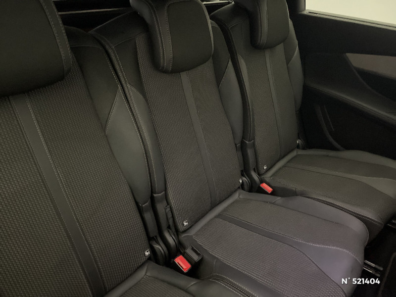 Vitres latérales AR et lunette AR chauffante surteintées / Volant cuir fleur perforé Mistral avec bagues chromées et badge GT / Protecteurs de bas de portes avec inserts Inox Brillant / Appuis-tête à sécurité optimisée réglables en hauteur (conducteur, passager, rang 2 (x3) et rang 3 (x2)) / Coques de rétroviseurs extérieurs Noir Perla Nera / Direction assistée électrique, colonne de direction réglable en hauteur et profondeur (mécanique) / 3 sièges indépendants,coulissants,inclinables et escamotables dans le plancher - 2ème rang / Air conditionné automatique bi-zone avec aérateurs aux places AR / Pack City 1 / 2 sièges escamotables et extractibles pour les passagers - 3ème rang / Pack Drive Assist Plus / Toit "Black Diamond" (toit Noir Perla Nera) / Commandes de lève-vitres avec inserts chromés / Plafonniers AV, rang 2 et rang 3 à LED avec 2 spots de lecture / Pack Visibilité / Lève-vitres AV et AR électriques séquentiels avec antipincement / Kit de dépannage de pneumatique / Projecteurs "Peugeot Full LED Technology" avec correction automatique de site, fonction Eclairage Virage Statique,"Foggy Mode" et feux diurnes à LED sous projecteurs / Accès et démarrage mains libres / Détection de sous-gonflage indirecte / Pack Enfants / Driver Sport Pack / Feux AR à LED avec effet 3D, clignotants à défilement / Pédalier et repose-pied conducteur en aluminium / Navigation 3D connectée avec écran tactile capacitif 10" HD Avec reconnaissance vocale, cartographie Europe, services de Navigation connectée TomTom 3 ans inclus, connexion automatique et permanente via carte SIM intégrée au véhicule / Rétroviseur intérieur photosensible sans cadre / Fonction "Mirror Screen" (Apple CarPlay / Android Auto ) / Accoudoir central AV à ouverture papillon, avec compartiment de rangement réfrigérable / Calandre avec design évolutif chromé / Enjoliveur d'arc de pavillon en Inox Brillant / Enjoliveurs d'ailes AV chromés / Jantes alliage 18" diamantées DETROIT bi-ton Noir Onyx brillant avec pneumatiques 225/55 R18 102 V / Lécheurs de vitres, joncs de vitres latérales en Inox Brillant / Pares-soleil avec miroirs de courtoisie éclairés / Passages de roues rapportés Noir Mat / Peugeot i-Cockpit avec combiné tête haute numérique, volant compact multi-fonctions / Rétroviseurs extérieurs dégivrants avec réglage et rabattement électriques, éclairage d'accueil à LED, témoin de surveillance d'angles morts / Sabot de pare-chocs AV peint Métallure / Barres de toit longitudinales en aluminium / 6 airbags (Frontaux adaptatifs, latéraux AV, rideaux AV, rang 2 et rang 3) / "Toggle Switches" chromés (touches "piano" d'activation des fonctions de l'écran tactile) / Siège conducteur avec réglage lombaire / Avertisseur de temps de conduite / Frein de stationnement électrique avec aide au démarrage en pente et serrage automatique / Trappes de rangement (x2) aux pieds des passagers du 2ème rang / Rétroviseurs extérieurs dégivrants avec réglage et rabattement électriques / Sécurité enfants électrique des vitres AR / Pack Safety Plus / Habitacle et ciel de pavillon Noir Mistral / Décors de planche de bord et panneaux de portes Alcantara Gris Greval / Drive Mode : Choix de 2 modes de conduite (Eco ou Sport) / Essuie-vitre AV avec système de lavage "Magic Wash" / Prises USB de charge (x2) au 2 rang / Canules d'echappement de style chromées / Toit "Black Diamond" / Seuils de portes AV en Inox / Prises 12 V (x 3 : zone connectique, AR de console et coffre) / Siège passager AV avec mise en tablette / Pack Eclairage d'ambiance / PEUGEOT Connect SOS & Assistance et Teleservices / Surtapis AV et AR / Garnissage Tissu BELOMKA / TEP