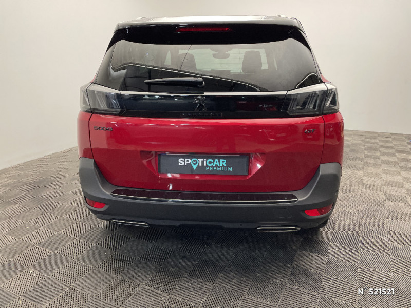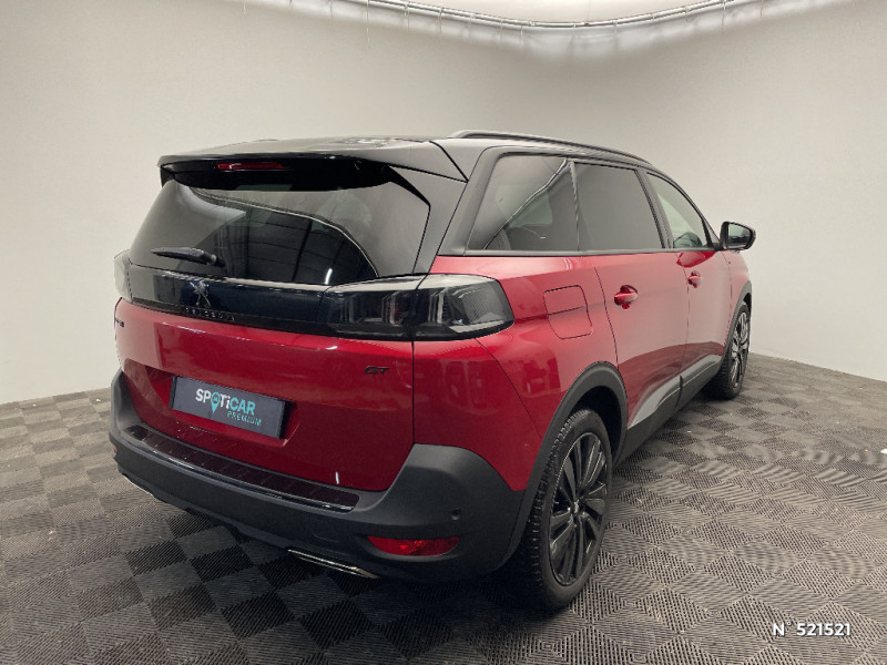 Pack Eclairage d'ambiance / Pédalier et repose-pied conducteur en aluminium / Lève-vitres AV et AR électriques séquentiels avec antipincement / Aide graphique et sonore au stationnement AR / Surtapis AV et AR / Décors intérieurs (baguettes de planche de bord et panneaux de portes, enjoliveur de console) chromés / Prises 12 V (x 3 : zone connectique, AR de console et coffre) / Passages de roues rapportés noirs / Pédale d'accélarateur plus réactive / Joncs de vitres latérales en inox / Pack City 2 / Essuie-vitre AR avec enclenchement automatique en marche AR / Lunette AR chauffante avec antennes sérigraphiées / Poches/filets aumonières au dos des sièges AV / Frein de stationnement électrique avec aide au démarrage en pente / Barres de toit longitudinales profilée en Aluminium / Toit "Black Diamond" (toit Noir Perla Nera) / Enjoliveur en inox sur les protecteurs de bas de portes / Essuie-vitre AV avec système de lavage "Magic Wash" / Appuis-tête à sécurité optimisée réglables en hauteur sur les sièges conducteur et passager AV ainsi que sur les places latérales AR / PEUGEOT Connect SOS & Assistance et Teleservices / Indicateur de rapport conseillé / Sécurité enfants électrique des vitres AR / Enjoliveur d'arc de pavillon en inox / Pack Safety Plus / Seuils de portes AV en Inox / Air conditionné automatique bi-zone avec aérateurs aux places AR / Système HI-FI Premium FOCAL - La signature acoustique franà§aise / Avertisseur de temps de conduite / Boîte à gants floquée et éclairée / Prise USB (dans la zone connectique) / Coques de rétroviseurs extérieurs Noir Perla Nera / Direction assistée électrique, colonne de direction réglable en hauteur et profondeur (mécanique) / Canules d'echappement de style chromées / Habitacle et ciel de pavillon Noir Mistral / Planche de bord surpiquée / Sabot de pare-chocs AV gris métallisé / Inserts d'ailes AV chromés / Hayon mains libres / Accoudoir central AV à ouverture papillon, avec compartiment de rangement éclairé et réfrigérable / Projecteurs "Peugeot Full LED Technology" avec correction automatique de site, fonction Eclairage Virage Statique,"Foggy Mode" et feux diurnes à LED prolongés dans les projecteurs / Calandre GT avec design évolutif chromé / Kit de dépannage de pneumatique : compresseur 12 volts, flacon de produit de colmatage, anneau de remorquage, deux cales de roue, manivelle de frein de stationnement électrique / Trappes de rangement (x2) aux pieds des passagers du 2ème rang / Reconnaissance étendue des panneaux (Stop, Sens interdit) et préconisation des panneaux de vitesse / Driver Sport Pack Sonorité du moteur amplifiée et plus sportive, pédale d'accélarateur plus réactive, direction assistée plus sportive, passage de vitesses sport (pour les motorisaions à boîte automatique). Possibilité d'affichage des paramètres véhicule dans le combiné numérique tête haute. / Contrôle dynamique de stabilité ESP avec antipatinage électronique ASR / Pack Visibilité / Vitres latérales AR et lunette AR surteintées / Accès et démarrage mains libres / Pack Drive Assist Plus / Commande de verrouillage à distance (2 télécommandes) / Prises USB de charge (x2) au 2 rang / Mirror Screen (compatible Mirrorlink, Apple CarPlay, Android Auto) / 2 sièges escamotables et extractibles pour les passagers - 3ème rang / Siège passager AV avec mise en tablette / Eclairage intérieur à LED: plafonniers et rangements / Plafonniers avec spots de lecture avant (x2), arrière (x2) et en rang 3 (x2) / Rétroviseur intérieur photosensible sans cadre / Radio avec fonction DAB,bi-tuner compatible MP3 et connectivité Bluetooth (audio streaming, kit mains libres), avec commandes au volant, 6 HP, écran tactile capacitif 10" HD / Commandes de lève-vitres avec inserts chromés / Jantes alliage 19" 'San Francisco' bi-ton diamantées Noir Onyx mat / Décors de planche de bord et panneaux de portes Alcantara Gris Greval / Drive Mode : Choix de 2 modes de conduite (Eco ou Sport) / Tablettes aviation aux dos des sièges du rang 1 / "Toggle Switches" chromés (touches "piano" d'activation des fonctions de l'écran tactile) / Enjoliveur de seuil d'entrée de coffre chromé / 3 sièges indépendants,coulissants,inclinables et escamotables dans le plancher - 2ème rang / Navigation 3D connectée avec écran tactile capacitif 10" HD Avec reconnaissance vocale, cartographie Europe, services de Navigation connectée TomTom 3 ans inclus, connexion automatique et permanente via carte SIM intégrée au véhicule / Toggle Switches' chromés (touches 'piano' d'activation des fonctions de l'écran tactile) / Détection de sous-gonflage indirecte / Siège conducteur mécanique avec réglage lombaire / Peugeot i-Cockpit avec combiné tête haute numérique haute qualité d'affichage, écran tactile capacitif 10" HD et volant compact multi-fonctions / Airbags frontaux conducteur et passager adaptatifs (passager neutralisable par clé), airbags latéraux conducteur et passager AV, airbags rideaux de tête aux places AV et AR, en rang 1,2,3 / Rétroviseurs extérieurs électriques, dégivrants et rabattables électriquement avec éclairage d'accueil à LED / Sièges AV mécaniques à réglage manuel en hauteur / Ecrous de roues antivol / Système d'antiblocage des roues ABS avec répartiteur électronique de freinage REF et assistance au freinage d'urgence AFU / Volant cuir fleur perforé avec bagues chromées et badge GT