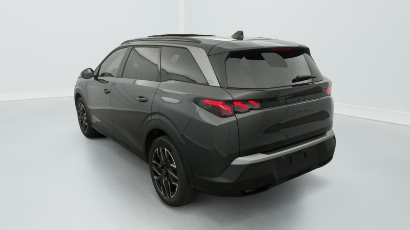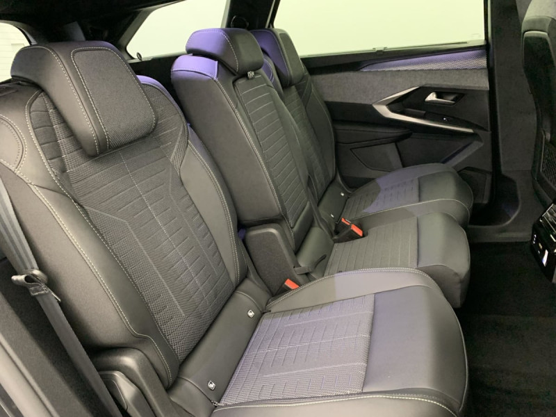 Frein de stationnement électrique / Détection de sous-gonflage indirecte / 6 HP (2 tweeters et 2 woofers à l'AV et 2 larges bandes à l'AR) / Essuie-vitre AV à déclenchement automatique / Rétroviseurs extérieurs dégivrants avec réglage et rabattement électriques, éclairage de seuil / Hayon motorisé avec accès mains libres / Pédalier et repose pied aluminium / Pack Safety Plus : Alerte attention conducteur Régulateur / Limiteur de vitesse Reconnaissance étendue des panneaux de signalisation et préconisation de vitesse Alerte active de franchissement involontaire de ligne et bas côté Freinage d'urgence automatique avec alerte risque de collision pilotée par caméra et radar / Plancher de coffre modulable 2 positions / Volant chauffant / Drive Assist - Régulateur de vitesse adaptatif avec fonction Stop & Go / PEUGEOT i-Toggles virtuels avec 10 raccourcis personnalisables / Vitres AR, custodes et lunette AR teintées / Projecteurs PEUGEOT PIXEL LED Eclairage adaptatif, commutation automatique des feux de route, feux de route avec fonctions anti éblouissement et boost / Toit et becquet AR Black Diamond / Volant compact, cuir fleur lisse et perforé avec commandes intégrées Noir Laqué, décors Cast Iron, surpiqûres Iced Clay, insert Noir laqué avec badge ?GT? / Commutation adaptative des projecteurs / Visiopark 1: caméra de recul HD & aide au stationnement AV/AR, graphique et sonore / PEUGEOT i-Cockpit panoramique avec écran incurvé et flottant 21'' HD / PEUGEOT i-Connect Advanced Navigation 3D connectée, 4 prises USB: 1 prise USB C (Data & charge) et 1 prise USB C (Charge) à l'AV, 2 prises USB C (Charge) à l'AR / Bandeau entre les projecteurs Noir laqué avec logo '5008' / Bandeau entre les feux AR Noir laqué avec lettrage 'PEUGEOT' / Stores pare soleil intégrés dans les portes AR / Banquette rang 2 avec accoudoir central / Banquette rang 2 coulissante 60/40, avec dossiers inclinables et rabattables 40/20/40, avec fonction Easy Access aux places du rang 3 / Banquette 2 places au rang 3 avec dossiers rabattables 50/50 / Sellerie tissu NEW UZIRIS embossé, accompagnement TEP Isabella, écharpe tissu RIMINI chiné, surpiqûres Iced Clay / 2 prises 12 V (Console centrale, coffre) / Rétroviseur intérieur électrochrome / 6 airbags: Frontaux conducteur et passager (passager neutralisable par clé), latéraux conducteur et passager AV (thorax et bassin), rideaux aux places AV et AR (tête et thorax) / Eclairage d'ambiance indirect, jour & nuit sur la planche de bord, les panneaux de portes AV/AR et sous l'écran panoramique 21'', associé aux modes de conduite, personnalisable en 8 couleurs / Boîte de vitesse automatique, séquentielle (6 rapports) / Jantes alliage 19" diamantées BREDA Noir Orbital, vernis brillant / 4 poignées de maintien rétractables / Accès et démarrage mains libres Proximity 2 Télécommandes 3 boutons (verrouillage, coffre, déverrouillage) / Barres de toit longitudinales Noir Brillant / Eclairage intérieur Miroirs de courtoisie conducteur et passager occultables éclairés à LED, Plafonnier AV et lisseuses AR DOME à LED / Pare-brise feuilleté acoustique / Lève-vitres AV/AR électriques et séquentiels avec antipincement / Siège conducteur à réglage lombaire manuel / / Véhicules équivalents: Tiguan Allspace - X-Trail - Espace