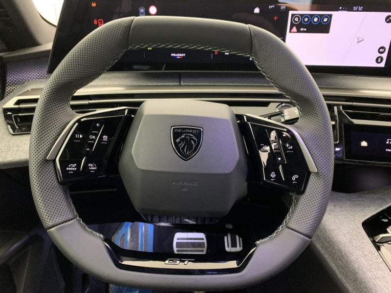 Frein de stationnement électrique / Détection de sous-gonflage indirecte / 6 HP (2 tweeters et 2 woofers à l'AV et 2 larges bandes à l'AR) / Essuie-vitre AV à déclenchement automatique / Rétroviseurs extérieurs dégivrants avec réglage et rabattement électriques, éclairage de seuil / Hayon motorisé avec accès mains libres / Pédalier et repose pied aluminium / Pack Safety Plus : Alerte attention conducteur Régulateur / Limiteur de vitesse Reconnaissance étendue des panneaux de signalisation et préconisation de vitesse Alerte active de franchissement involontaire de ligne et bas côté Freinage d'urgence automatique avec alerte risque de collision pilotée par caméra et radar / Plancher de coffre modulable 2 positions / Volant chauffant / Drive Assist - Régulateur de vitesse adaptatif avec fonction Stop & Go / PEUGEOT i-Toggles virtuels avec 10 raccourcis personnalisables / Vitres AR, custodes et lunette AR teintées / Projecteurs PEUGEOT PIXEL LED Eclairage adaptatif, commutation automatique des feux de route, feux de route avec fonctions anti éblouissement et boost / Toit et becquet AR Black Diamond / Volant compact, cuir fleur lisse et perforé avec commandes intégrées Noir Laqué, décors Cast Iron, surpiqûres Iced Clay, insert Noir laqué avec badge ?GT? / Commutation adaptative des projecteurs / Visiopark 1: caméra de recul HD & aide au stationnement AV/AR, graphique et sonore / PEUGEOT i-Cockpit panoramique avec écran incurvé et flottant 21'' HD / PEUGEOT i-Connect Advanced Navigation 3D connectée, 4 prises USB: 1 prise USB C (Data & charge) et 1 prise USB C (Charge) à l'AV, 2 prises USB C (Charge) à l'AR / Bandeau entre les projecteurs Noir laqué avec logo '5008' / Bandeau entre les feux AR Noir laqué avec lettrage 'PEUGEOT' / Stores pare soleil intégrés dans les portes AR / Banquette rang 2 avec accoudoir central / Banquette rang 2 coulissante 60/40, avec dossiers inclinables et rabattables 40/20/40, avec fonction Easy Access aux places du rang 3 / Banquette 2 places au rang 3 avec dossiers rabattables 50/50 / Sellerie tissu NEW UZIRIS embossé, accompagnement TEP Isabella, écharpe tissu RIMINI chiné, surpiqûres Iced Clay / 2 prises 12 V (Console centrale, coffre) / Rétroviseur intérieur électrochrome / 6 airbags: Frontaux conducteur et passager (passager neutralisable par clé), latéraux conducteur et passager AV (thorax et bassin), rideaux aux places AV et AR (tête et thorax) / Eclairage d'ambiance indirect, jour & nuit sur la planche de bord, les panneaux de portes AV/AR et sous l'écran panoramique 21'', associé aux modes de conduite, personnalisable en 8 couleurs / Boîte de vitesse automatique, séquentielle (6 rapports) / Jantes alliage 19" diamantées BREDA Noir Orbital, vernis brillant / 4 poignées de maintien rétractables / Accès et démarrage mains libres Proximity 2 Télécommandes 3 boutons (verrouillage, coffre, déverrouillage) / Barres de toit longitudinales Noir Brillant / Eclairage intérieur Miroirs de courtoisie conducteur et passager occultables éclairés à LED, Plafonnier AV et lisseuses AR DOME à LED / Pare-brise feuilleté acoustique / Lève-vitres AV/AR électriques et séquentiels avec antipincement / Siège conducteur à réglage lombaire manuel / / Véhicules équivalents: Tiguan Allspace - X-Trail - Espace