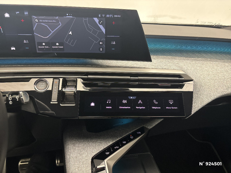 Vitres AR, vitres de custode et lunette AR surteintées / Visiopark 1: caméra de recul HD & aide au stationnement AV et AR, graphique et sonore / Frein de stationnement électrique / Boîte automatique à variation continue / Lève-vitres AV et AR électriques séquentiels avec antipincement / Fonction préchauffage de la batterie de traction / PEUGEOT i-Toggles virtuels avec 10 raccourcis personnalisables / Siège conducteur à réglage lombaire manuel / Câble électrique mode 3 triphasé 22 kW / Volant compact, cuir fleur lisse et perforé avec commandes intégrées Noir Laqué, décors Cast Iron, surpiqûres Iced Clay, insert Noir laqué avec badge 'GT' / Commutation adaptative des projecteurs / Monogrammes ailes AV: 'blason PEUGEOT' / Toit et becquet AR Black Diamond / Seuil de portes AV inox avec lettrage 'PEUGEOT' / Essuie-vitre AV à déclenchement automatique / 6 airbags: Frontaux conducteur et passager (passager neutralisable par clé), latéraux conducteur et passager AV (thorax et bassin), rideaux aux places AV et AR (tête et thorax) / Eclairage d'ambiance indirect, jour & nuit sur la planche de bord, les panneaux de portes AV/AR et sous l'écran panoramique 21'', associé aux modes de conduite, personnalisable en 8 couleurs / Volant chauffant / Eléments de style intérieure Planche de bord moussée avec décor tissu RIMINI chiné, décor d'alcôve en Aluminium sérigraphié, faà§ade et aérateurs Noir laqué avec décor Gris Stène Panneaux de portes avec décor tissu RIMINI chiné, décor d'alcôve en Aluminium sérigraphié et jonc Gris Stène, accoudoirs TEP Isabella, surpiqûres Iced Clay à l'AV Console centrale avec décor tissu RIMINI chiné, faà§ade Noir laqué et jonc Gris Stène, accoudoir tissu RIMINI chiné / Vitres AR, custodes et lunette AR teintées / Jantes alliage 20'' diamantées SOFIA Noir Orbital, vernis mat avec inserts aéro, vernis brillant / Surtapis AV et AR avec surpiqûres Iced Clay / Hayon motorisé avec accès mains libres / Projecteurs PEUGEOT PIXEL LED Eclairage adaptatif, commutation automatique des feux de route, feux de route avec fonctions anti éblouissement et boost / Habitacle et ciel de pavillon noir / Pare-brise feuilleté acoustique / Banquette rang 2 avec accoudoir central / Banquette rang 2 coulissante 60/40, avec dossiers inclinables et rabattables 40/20/40, avec fonction Easy Access aux places du rang 3 / 2 prises 12 V (Console centrale, coffre) / Banquette 2 places au rang 3 avec dossiers rabattables 50/50 / Pack Safety Plus Régulateur / Limiteur de vitesse, Freinage d'urgence automatique avec alerte risque de collision, Alerte active de franchissement involontaire de ligne et bas côté, Reconnaissance étendue des panneaux de signalisation et préconisation de vitesse, Alerte attention conducteur / Chargeur embarqué 11 kW triphasé bi-directionnel Avec prédisposition V2L (Vehicle to Load) / Bandeau entre feux AR Noir laqué avec lettrage 'PEUGEOT' / Pare chocs AR avec décor Gris Meteor / Monogrammes AR 'E5008' / Monogrammes AV: 'blason PEUGEOT' et '5008' / Rétroviseurs extérieurs dégivrants avec réglage et rabattement électriques,éclairage de seuil / Pompe à chaleur / Rétroviseur intérieur électrochrome / PEUGEOT i-Cockpit panoramique avec écran incurvé et flottant 21'' HD / 6 haut-parleurs (2 tweeters et 2 woofers à l'AV et 2 larges bandes à l'AR) / PEUGEOT i-Connect Advanced Navigation 3D connectée, 3 prises USB: 1 prise USB C (Data & charge) et 1 prise USB C (Charge) à l'AV, 2 prises USB C (Charge) à l'AR / Intérieur Alcantara Executive Sellerie Alcantara REFLECTION embossé, accompagnement TEP Isabella, écharpe tissu RIMINI chiné, surpiqûres Iced Clay Sièges conducteur et passager à réglages électriques certifiés AGR, réglage longueur d'assise manuel, maintien latéral adaptatif, réglage lombaire pneumatique, mémorisation des réglages pour le conducteur Sièges conducteur et passager chauffants et massants Sièges latéraux AR chauffants Appuis-tête AV avec réglages en hauteur intégrés / PEUGEOT i-Connect Advanced - Navigation 3D connectée, 4 prises USB: 1 prise USB C (Data & charge) et 1 prise USB C (Charge) à l'AV, 2 prises USB C (Charge) à l'AR - Connect Plus (Abonnement 6 mois inclus) - 2 prises 12 V (Console centrale, coffre) / Pack 360° Vision & Drive Assist Plus - VisioPark 360 - Rétroviseurs ext. dégivrants à réglage et rabattement électriques, éclairage de seuil, indexation marche AR avec mémorisation - Alerte attention conducteur par caméra - Drive Assist Plus 2.0 (conduite semi-autonome) - Détection de trafic AR - Alarme périmétrique, volumique, anti-soulèvement - Super-condamnation des ouvrants - Recharge smartphone sans fil (15 W) / 4 poignées de maintien rétractables / Accès et démarrage mains libres Proximity 2 Télécommandes 3 boutons (verrouillage, coffre, déverrouillage) / Barres de toit longitudinales Noir Brillant / Eclairage intérieur Miroirs de courtoisie conducteur et passager occultables éclairés à LED, Plafonnier AV et lisseuses AR DOME à LED / Connect Plus: Abonnement 6 mois Reconnaissance vocale connectée en langage naturel. ChatGPT. Services de sécurité: alarme connectée (Si véhicule équipé de l'alarme). Services à distance (E-Remote Control, Remote Control, Find My Car, My Trip Report, Peugeot Skill for Alexa). Fonctions de Navigation (Trafic en temps réel, prévisions météorologiques, parking, recherche TomTom, limitations de vitesse, prix du carburant, mise à jour cartographie Over The Air, Send to Nav, Geofencing) Recharges publiques, Trip Planner / Connect One (Abonnement 10 ans) Fonctionnalités principales à bord (Mises à jour Over The Air, Géolocalisation) Services de sécurité (Appel d'urgence, Peugeot Assistance) Services d'entretien (Télémaintenance, guide d'utilisation digital) e-ROUTES par Free2move charge Services à distance (E Remote Control) / Eléments de style extérieur Jupes inférieures