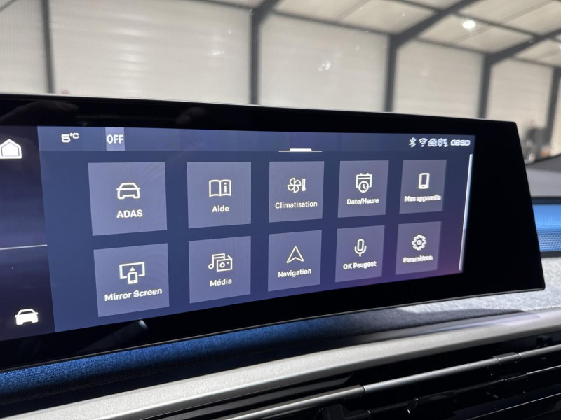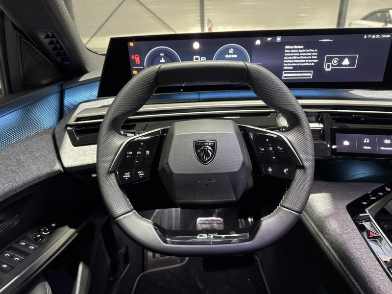 2 prises 12 v (console centrale / 2 prises usb c (charge) à l'ar / 4 poignées de maintien rétractables / 4 prises usb: 1 prise usb c (data & charge) et 1 prise usb c (charge) à l'av / 6 airbags: frontaux conducteur et passager (passager neutralisable par clé) / 6 hp (2 tweeters et 2 woofers à l'av et 2 larges bandes à l'ar) / Accès et démarrage mains libres proximity 2 / Accompagnement tep isabella / Accoudoir tissu rimini chiné / Accoudoirs tep isabella / Advanced grip control : contrôle de traction avancé avec mode de conduite / Aide au démarrage en pente et contrôle de descente / Alerte active de franchissement involontaire de ligne et bas côté / Alerte attention conducteur / Anti-soulèvement + super-condamnation des ouvrants / Arrière et latérale (graphique et sonore) + rétroviseurs extérieurs dégivrants à réglage et rabattement électriques / Arrière et latérales) + aide au stationnement avant / Avec dossiers inclinables et rabattables 40/20/40 / Avec fonction easy access aux places du rang 3 / Bandeau entre les feux ar noir laqué avec lettrage 'peugeot' / Bandeau entre les projecteurs noir laqué avec logo '5008' / Banquette 2 places au rang 3 avec dossiers rabattables 50/50 / Banquette rang 2 avec accoudoir central / Barres de toit longitudinales noir brillant / Boîte de vitesse automatique / Calandre couleur caisse / Coffre) / Commutation adaptative des projecteurs / Commutation automatique des feux de route / Contrôle de traction optimisé avec 3 modes spécifiques / Cuir fleur lisse et perforé avec commandes intégrées noir laqué / Custodes et lunette ar teintées / Décor d'alcôve en aluminium sérigraphié / Décor d'alcôve en aluminium sérigraphié et jonc gris stène / Décor inférieur gris méteor / Décors cast iron / Détection de sous-gonflage indirecte / Drive assist - régulateur de vitesse adaptatif avec fonction stop & go / écharpe tissu rimini chiné / Eclairage d'ambiance indirect / éclairage de seuil / éclairage de seuil / Eclairage intérieur : miroirs de courtoisie conducteur et passager occultables éclairés à led / écopes latérales noir laqué / Eléments de style intérieure : planche de bord moussée avec décor tissu rimini chiné / Enjoliveurs de passages de roues et protections inférieures de portes noir grainé / Essuie-vitre av à déclenchement automatique / Façade et aérateurs noir laqué avec décor gris stène panneaux de portes avec décor tissu rimini chiné / Façade noir laqué et jonc gris stène / Feux de route avec fonctions anti éblouissement et boost / Filet vertical de retenue de charge haute / Frein de stationnement électrique / Freinage d'urgence automatique avec alerte risque de collision pilotée par caméra et radar / Habitacle et ciel de pavillon noir / Hayon motorisé avec accès mains libres / Indexation marche arrière avec mémorisation + régulateur de vitesse adaptatif avec fonction stop & go + détection de trafic arrière : surveillance d'angles morts longue portée + aide au changement de voie + alerte de trafic arrière transversal + commutation automatique des feux de route + volant com / Insert noir laqué avec badge gt' / Jantes alliage 19" diamantées breda noir orbital / Jour & nuit sur la planche de bord / Jupe inférieure noir grainé / Latéraux conducteur et passager av (thorax et bassin) / Lécheurs de vitres masqués / Les panneaux de portes av/ar et sous l'écran panoramique 21'' / Lève-vitres av/ar électriques et séquentiels avec antipincement / Monogrammes ailes av: 'blason peugeot' / Monogrammes ar '5008' et 'hybrid / Monogrammes av : blason peugeot et 5008 / Pack 360° vision & drive assist : visiopark 360° : 4 caméras hd (avant / Pack safety plus : régulateur / limiteur de vitesse / Pare chocs ar avec décor gris meteor / Pare-brise chauffant / Pare-brise feuilleté acoustique / Pédalier et repose pied aluminium / Personnalisable en 8 couleurs / Peugeot i-cockpit panoramique avec écran incurvé et flottant 21'' hd / Peugeot i-connect advanced : navigation 3d connectée / Peugeot i-toggles virtuels avec 10 raccourcis personnalisables / Plafonnier av et lisseuses ar dome à led / Plancher de coffre modulable 2 positions / Projecteurs peugeot pixel led : eclairage adaptatif / Rétroviseur intérieur électrochrome / Rétroviseurs extérieurs dégivrants avec réglage et rabattement électriques / Rideaux aux places av et ar (tête et thorax) / Sellerie tissu new uziris embossé / Séquentielle (6 rapports) / Seuil de portes av inox avec lettrage peugeot / Siège conducteur à réglage lombaire manuel / Stores pare soleil intégrés dans les portes ar / Surpiqûres iced clay / Surpiqûres iced clay / Surpiqûres iced clay à l'av console centrale avec décor tissu rimini chiné / Teinte métallisée gris artense / Toit et becquet ar black diamond / Vernis brillant / Vitres ar / Volant chauffant / Volant compact / Volumétrique