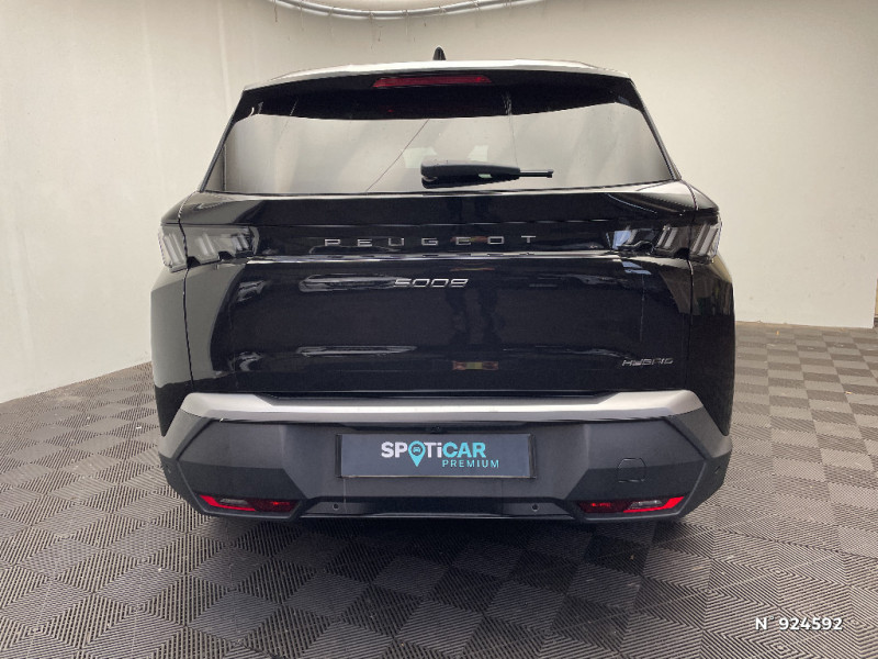 PEUGEOTConnect One Fonctionnalités principales à bord (Mises à jour Over The Air, Géolocalisation) Services de sécurité (Appel d'urgence, Peugeot Assistance) Services d'entretien (Télémaintenance, guide d'utilisation digital) e-ROUTES par Free2move charge Services à distance (E Remote Control) / PEUGEOT Connect Plus Services de sécurité: alarme connectée (Si véhicule équipé de l'alarme), Services à distance (Remote Control, Find My Car, My Trip Report, Peugeot Skill for Alexa) / Boîte de vitesse automatique, séquentielle (6 rapports) / Habitacle et ciel de pavillon noir / Projecteurs Peugeot LED Technology / Banquette 2 places au rang 3 avec dossiers rabattables 50/50 / Essuie-vitre AV à déclenchement automatique / Frein de stationnement électrique / Détection de sous-gonflage indirecte / 4 poignées de maintien rétractables (2 à l'AV et 2 à l'AR) / 3 prises 12 V (Console centrale, rang 2, coffre) / 6 haut-parleurs (2 tweeters et 2 woofers à l'AV et 2 larges bandes à l'AR) / Jantes alliage 19" diamantées BREDA Noir Orbital, vernis brillant / Barres de toit longitudinales Noir Brillant / 6 airbags: Frontaux conducteur et passager (passager neutralisable par clé), latéraux conducteur et passager AV (thorax et bassin), rideaux aux places AV et AR (tête et thorax) / 3 prises 12V 3 prises 12 V (Console centrale, AR de la console centrale, coffre) / Bandeau entre feux AR Noir laqué avec lettrage 'PEUGEOT' / Pare chocs AR avec décor Gris Meteor / Monogrammes AR '5008' et 'Hybrid / Rétroviseur intérieur électrochrome / Eléments de style intérieure Planche de bord moussée avec décor tissu RIMINI chiné et alcôve Graphène,faà§ade et aérateurs Noir laqué avec décor Gris Stène, Panneaux de portes avec décor tissu RIMINI chiné, alcôve Graphène et jonc Gris Stène, accoudoirs TEP Isabella, surpiqûres Quartz à l'AV, Console centrale avec décor tissu RIMINI chiné, faà§ade Noir laqué et jonc Gris Stène, accoudoir tissu RIMINI chiné / Sellerie tissu CRISPY embossé, accompagnement TEP Isabella, écharpe tissu RIMINI chiné, surpiqûres Quartz / PEUGEOTConnect One Fonctionnalités principales à bord (Mises à jour Over The Air, Géolocalisation), Services de sécurité (Appel d'urgence, Peugeot Assistance), Services d'entretien (Télémaintenance, guide d'utilisation digital) (Abonnement 10 ans) / Bandeau entre les projecteurs Noir laqué avec logo '5008' / Enjoliveurs de passages de roues et protections inférieures de portes Noir grainé / Rétroviseurs extérieurs dégivrants avec réglage et rabattement électriques,éclairage de seuil / Plancher de coffre modulable 2 positions / Jupe inférieure Noir grainé. / Lécheurs de vitres masqués / Banquette rang 2 coulissante 60/40, avec dossiers inclinables et rabattables 40/20/40, avec fonction Easy Access aux places du rang 3 / Calandre couleur caisse, écopes latérales Noir laqué, décor inférieur Gris Méteor / Pack Safety Plus Régulateur / Limiteur de vitesse, Freinage d'urgence automatique avec alerte risque de collision, Alerte active de franchissement involontaire de ligne et bas côté, Reconnaissance étendue des panneaux de signalisation et préconisation de vitesse, Alerte attention conducteur / Visiopark 1 Caméra de recul HD & aide au stationnement AV et AR, graphique et sonore / Eclairage intérieur Plafonnier AV et liseuses arrière à LED, Boite à gants et rangement de console éclairés à LED, Eclairage des caves à pieds AV à LED / Monogrammes AV: 'blason PEUGEOT' et '5008' / Lève-vitres AV et AR électriques séquentiels avec antipincement / PEUGEOT i-Cockpit panoramique avec Double écran HD flottant (2 x 10'') / Volant compact croute de cuir avec commandes intégrées Noir laqué, décors Gris Stène / Accès et démarrage mains libres Proximity 2 Télécommandes 3 boutons (verrouillage, coffre, déverrouillage) / PEUGEOT i-Connect Radio DAB, Bluetooth® (connexion 2 téléphones), Mirror Screen sans fil (Apple CarPlay / Android Auto), Peugeot Connect SOS & Assistance, 1 prise USB C (Data & charge) / Vitres AR, custodes et lunette AR teintées / Pare-brise feuilleté acoustique / PEUGEOT Connect Plus Services de sécurité: alarme connectée (Si véhicule équipé de l'alarme), Services à distance (E Remote Control, Remote Control, Find My Car, My Trip Report, Peugeot Skill for Alexa) e-ROUTES par Free2move charge (Abonnement 6 mois inclus, renouvellement 8 /mois)