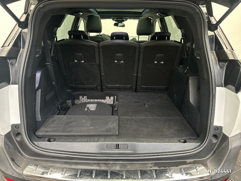 Poignées de portes couleur carrosserie / Radio 6 HP, bi-tuner compatible MP3 et connectivité Bluetooth (audio streaming, kit mains libres), avec commandes au volant, écran tactile capacitif 8" / Lève-vitres AR électriques et séquentiels avec antipincement / Accès et démarrage mains libres / Accoudoir central AV à ouverture papillon, avec compartiment de rangement éclairé et réfrigérable / Sabots de pare-chocs AV gris métallisé / Boîte à gants floquée et éclairée / Console centrale AV avec 2 porte-gobelets / Essuie-vitre AR avec enclenchement automatique en marche AR / Lunette AR chauffante avec antennes sérigraphiées / Habitacle et ciel de pavillon Noir Mistral / Jonc de vitres en inox / Visiopark 1 / Toit "Black Diamond" (toit Noir Perla Nera) / Aide graphique et sonore au stationnement AV / Ecran tactile capacitif 8" et "Toggles Switches" / Pack Safety Plus / Appuis-tête à sécurité optimisée réglables en hauteur sur les sièges conducteur et passager AV ainsi que sur les places latérales AR / Volant Cuir pleine fleur perforé avec bagues chromées et badge GT Line / Fonction "Mirror Screen" / Peugeot Connect / Inserts d'ailes AV chromés / Avertisseur de temps de conduite / Enjoliveur en inox sur les protecteurs de bas de portes / Ceintures de sécurité AV 3 points à enrouleur, réglables en hauteur avec prétensionneurs et limiteurs d'effort / Jantes alliage 18" "Detroit" bi-ton diamantées / Direction assistée électrique, colonne de direction réglable en hauteur et profondeur (mécanique) / Enjoliveur d'arc de pavillon en inox / Sécurité enfants électrique des vitres AR / Passages de roues rapportés noirs / Essuie-vitre AV avec système de lavage "Magic Wash" / Projecteurs "Peugeot Full Led Technology" / Pack City 1 / Siège passager AV mécanique avec mise en tablette / 2 sièges escamotables et extractibles pour les passagers du 3ème rang / Siège passager AV mécanique réglable en hauteur / Vitres latérales AR et lunette AR surteintées / Enjoliveur de seuil d'entrée de coffre chromé / Tablettes aviation aux dos des sièges du rang 1 / Pédalier et repose-pied conducteur aluminium / Eclairage intérieur LED: plafonnier tactile 3 spots + 2 LEDs d'ambiance, 2 liseuses AR, pare-soleil, boîte à gants, accoudoir central, zone connectique, caves à pied, zone coffre (x2) / Nouveau Peugeot i-Cockpit : combiné tête haute numérique reconfigurable et volant compact multi-fonctions / Pack Visibilité / Lève-vitres AV électriques et séquentiels avec antipincement / Décors de planche de bord et panneaux de portes en maille "Brumeo" / Pack Eclairage d'ambiance / Plafonnier AV avec spots de lecture (x2) et plafonniers à extinction temporisée aux 2ème et 3ème rangs / Projecteurs antibrouillard à LED avec fonction cornering / Bouclier AV exclusif et calandre à damier chromé / Canules d'echappement de style chromées / Spots de lecture (x2) aux 2ème et 3ème rangs / Trappes de rangement (x2) aux pieds des passagers du 2ème rang / Sellerie TEP & Tissu "Imila" / Contrôle dynamique de stabilité CDS avec antipatinage électronique ASR / Indicateur de rapport conseillé / Peugeot i-Cockpit Amplify : choix de 2 ambiances paramétrables / Siège conducteur à réglage lombaire manuel / Détection de sous-gonflage indirecte / Décors intérieurs (baguettes de planche de bord et panneaux de portes, enjoliveur de console) chromés / Commande de verrouillage à distance (2 plips) / Frein de stationnement électrique avec aide au démarrage en pente / Prise USB (dans la zone connectique) / Prise 12V (x3 : zone connectique, AR de console et coffre) / Aide graphique et sonore au stationnement AR / Ceintures de sécurité 3 points à enrouleur (x3) au 2ème rang, avec prétensionneurs et limiteurs d'effort aux places latérales / Ceintures de sécurité 3 points à enrouleur (x2) au 3ème rang / Fixations pour 3 sièges enfants suivant norme ISOFIX aux places du 2ème rang / Kit de dépannage de pneumatique : compresseur 12 volts, flacon de produit de colmatage, anneau de remorquage, deux cales de roue, manivelle de frein de stationnement électrique / Rideaux pare-soleil (x2) pour les passagers du 2ème rang / Surtapis AV et AR / Airbags frontaux conducteur et passager adaptatifs (passager neutralisable par clé), airbags latéraux conducteur et passager AV, airbags rideaux de tête aux places AV et AR / Boîtiers de rétroviseurs extérieurs Noir Perla Nera / Barres de toit longitudinales profilée en Aluminium / Air conditionné automatique bi-zone avec aérateurs aux places AR / Poches/filets aumonières au dos des sièges AV / Rétroviseurs indéxés à la marche AR / Système d'antiblocage des roues ABS avec répartiteur électronique de freinage REF et assistance au freinage d?urgence AFU / Poignées de maintien (x4) rétractables avec frein (crochets pour cintres aux places AR)