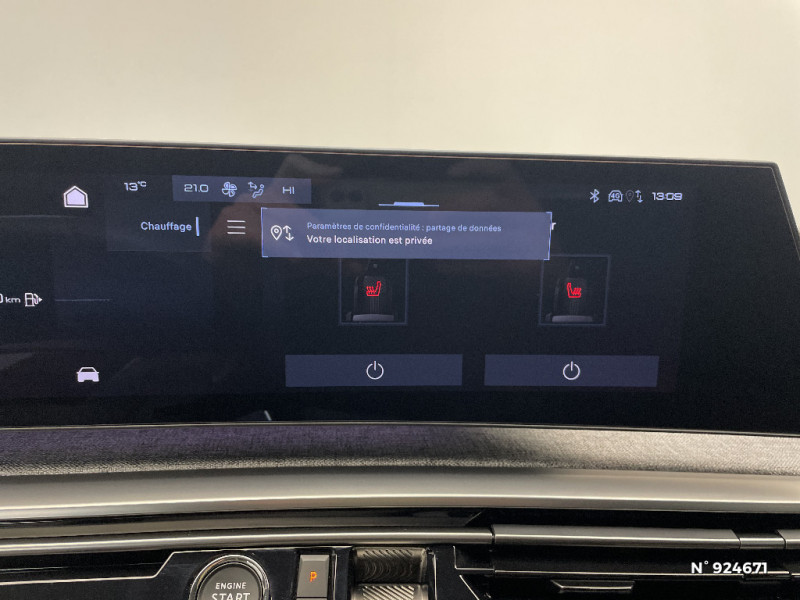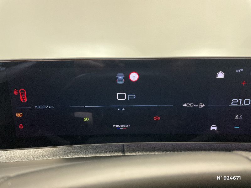 Sellerie tissu NEW UZIRIS embossé, accompagnement TEP Isabella, écharpe tissu RIMINI chiné, surpiqûres Iced Clay / Frein de stationnement électrique / 6 haut-parleurs (2 tweeters et 2 woofers à l'AV et 2 larges bandes à l'AR) / Visiopark 1: caméra de recul HD & aide au stationnement AV et AR, graphique et sonore / Lécheurs de vitres masqués / Enjoliveurs de passages de roues et protections inférieures de portes Noir grainé / Rétroviseurs extérieurs dégivrants avec réglage et rabattement électriques,éclairage de seuil / Bandeau entre feux AR Noir laqué avec lettrage 'PEUGEOT' / Pare chocs AR avec décor Gris Meteor / 4 poignées de maintien rétractables (2 à l'AV et 2 à l'AR) / Monogrammes AR '5008' et 'Hybrid / Monogrammes AV: 'blason PEUGEOT' et '5008' / 8 airbags: frontaux conducteur et passager auto-adaptatifs (passager neutralisable par clé), latéraux conducteur et passager AV (thorax et bassin), rideaux aux places AV et AR (tête et thorax) / PEUGEOT i-Cockpit panoramique avec écran incurvé et flottant 21'' HD / PEUGEOT i-Connect Advanced Navigation 3D connectée, 3 prises USB: 1 prise USB C (Data & charge) et 1 prise USB C (Charge) à l'AV, 2 prises USB C (Charge) à l'AR / 3 prises 12V 3 prises 12 V (Console centrale, AR de la console centrale, coffre) / Rétroviseur intérieur électrochrome sans cadre / Recharge smartphone sans fil (puissance 15W) / Pare-brise feuilleté acoustique / Bandeau entre les projecteurs Noir laqué avec logo ?5008' / Pack Safety Plus Régulateur / Limiteur de vitesse, Freinage d'urgence automatique avec alerte risque de collision, Alerte active de franchissement involontaire de ligne et bas côté, Reconnaissance étendue des panneaux de signalisation et préconisation de vitesse, Alerte attention conducteur / Calandre couleur caisse, écopes latérales Noir laqué, décor inférieur Gris Méteor / Jupe inférieure Noir grainé. / Lève-vitres AV et AR électriques séquentiels avec antipincement / Pédalier et repose pied aluminium / PEUGEOT Connect Plus: Reconnaissance vocale connectée en langage naturel. ChatGPT(Disponibilité ultérieurement), Services de sécurit: alarme connectée (Si véhicule équipé de l?alarme). Services à distance (E-Remote Control, Remote Control, Find My Car, My Trip Report, Peugeot Skill for Alexa). Fonctions de Navigation (Trafic en temps réel, prévisions météorologiques, parking, recherche TomTom, limitations de vitesse, prix du carburant, mise à jour cartographie Over The Air, Send to Nav, Geofencing) / Eléments de style intérieure Planche de bord moussée avec décor tissu RIMINI chiné, décor d?alcôve en Aluminium sérigraphié, façade et aérateurs Noir laqué avec décor Cast Iron, Panneaux de portes avec décor tissu RIMINI chiné, décor d?alcôve en Aluminium sérigraphié et jonc Cast Iron , accoudoirs TEP Isabella, surpiqûres Iced Clay à l'AV, Console centrale avec décor tissu RIMINI chiné, façade Noir laqué et jonc Cast Iron, accoudoir tissu RIMINI chiné / Drive Assist - Régulateur de vitesse adaptatif avec fonction Stop & Go / PEUGEOT i-Toggles virtuels avec 10 raccourcis personnalisables / Essuie-vitre AV à déclenchement automatique / Siège conducteur à réglage lombaire manuel / Plancher 1 position, rangement sous plancher / Stores pare soleil intégrés dans les portes AR / Banquette rang 2 avec accoudoir central / Banquette rang 2 coulissante 60/40, avec dossiers inclinables et rabattables 40/20/40, avec fonction Easy Access aux places du rang 3 / PEUGEOTConnect One Fonctionnalités principales à bord (Mises à jour Over The Air, Géolocalisation), Services de sécurité (Appel d?urgence, Peugeot Assistance), Services d?entretien (Télémaintenance, guide d?utilisation digital) (Abonnement 10 ans) / Banquette 2 places au rang 3 avec dossiers rabattables 50/50 / Volant chauffant / Surtapis AV et AR avec surpiqûres Iced Clay et logo 'GT' / Volant compact, cuir fleur lisse et perforé avec commandes intégrées Noir Laqué, décors Cast Iron, surpiqûres Iced Clay, insert Noir laqué avec badge ?GT? / Accès et démarrage mains libres Proximity 2 Télécommandes 3 boutons (verrouillage, coffre, déverrouillage) / Vitres AR, custodes et lunette AR teintées / Commutation adaptative des projecteurs / Eclairage intérieur Miroirs de courtoisie conducteur et passager occultables éclairés à LED, Plafonnier AV et lisseuses AR i-DOME tactiles à LED / Détection de sous-gonflage indirecte / Sellerie Alcantara REFLECTION embossé, accompagnement TEP Isabella, écharpe tissu RIMINI chiné, surpiqûres Iced Clay / Jantes alliage 19" diamantées BREDA Noir Orbital, vernis brillant / Hayon motorisé avec accès mains libres / Toit et becquet AR Black Diamond / Projecteurs PEUGEOT PIXEL LED Eclairage adaptatif, commutation automatique des feux de route, feux de route avec fonctions anti éblouissement et boost / Monogrammes ailes AV: 'blason PEUGEOT' / Kit de dépannage de pneumatique Compresseur 12 volts, flacon de produit de colmatage, anneau de remorquage, deux cales de roue / Eclairage d'ambiance indirect, jour & nuit sur la planche de bord, les panneaux de portes AV et sous l'écran panoramique 21'', associé aux modes de conduite, personnalisable en 8 couleurs / Seuil de portes AV inox avec lettrage ?PEUGEOT? / Habitacle et ciel de pavillon noir