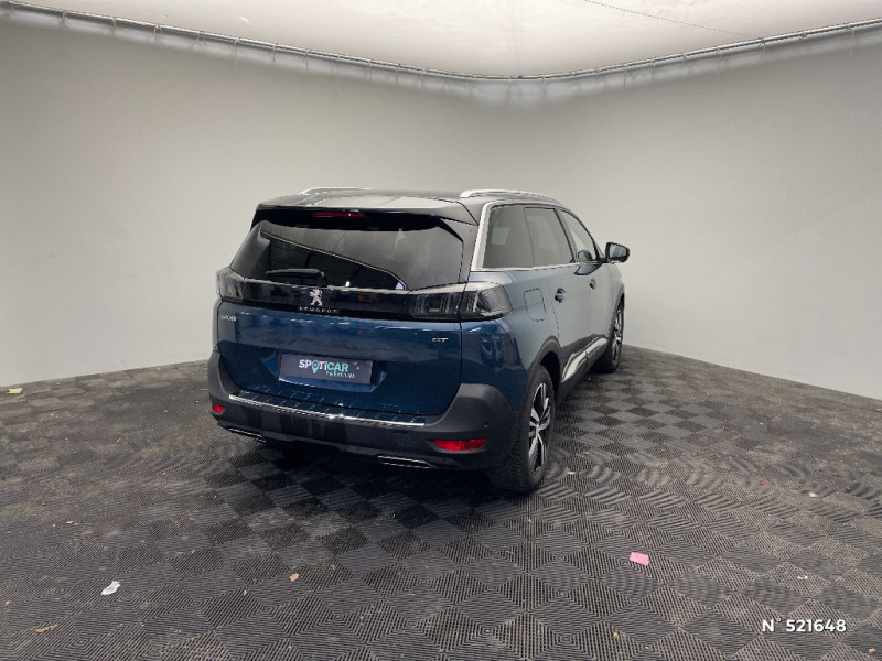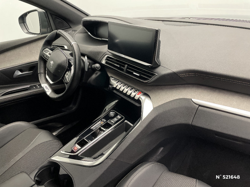 Sécurité enfants électrique des vitres AR / Habitacle et ciel de pavillon Noir Mistral / Canules d'echappement de style chromées / Driver Sport Pack / Pack Eclairage d'ambiance / Pack City 1 / Air conditionné automatique bi-zone avec aérateurs aux places AR / PEUGEOT Connect SOS & Assistance et Teleservices Appel d'urgence automatique ou manuel par push SOS, et mise en relation directe avec la plateforme d'assistance PEUGEOT (24/24 - 7/7), Détection du besoin d?une intervention technique ou d?une opération d?entretien périodique et transmission au réseau PEUGEOT pour prise de rendez-vous / Sabot de pare--chocs AV peint Gris Lion / Pack Enfants / Rétroviseurs extérieurs dégivrants avec réglage et rabattement électriques / Kit de dépannage de pneumatique / Surtapis AV et AR / Lève-vitres AV et AR électriques séquentiels avec antipincement / Garnissage Tissu BELOMKA / TEP / Fonction "Mirror Screen" (Apple CarPlay / Android Auto ) / Kit de dépannage de pneumatique Avec compresseur 12 volts, flacon de produit de colmatage, anneau de remorquage, cales pour frein de stationnement électrique / Frein de stationnement électrique avec aide au démarrage en pente et serrage automatique / Commandes de lève-vitres avec inserts chromés / Barres de toit longitudinales en aluminium / Pack Visibilité Allumage automatique des feux de croisement; Essuie vitre AV à déclenchement automatique; Eclairage d'accompagnement automatique / Pack Drive Assist Plus Régulateur de vitesse adaptatif avec fonction Stop & GO Aide au maintien de la position dans la voie / Seuils de portes AV en Inox / Calandre avec design évolutif chromé / Enjoliveur d'arc de pavillon en Inox Brillant / Enjoliveurs d'ailes AV chromés / Jantes alliage 18" diamantées DETROIT bi-ton Noir Onyx brillant avec pneumatiques 225/55 R18 102 V / Lécheurs de vitres, joncs de vitres latérales en Inox Brillant / Pares-soleil avec miroirs de courtoisie éclairés / Passages de roues rapportés Noir Mat / 6 airbags (Frontaux adaptatifs, latéraux AV, rideaux AV, rang 2 et rang 3) / Appuis-tête à sécurité optimisée réglables en hauteur (conducteur, passager, rang 2 (x3) et rang 3 (x2)) / Plafonniers AV, rang 2 et rang 3 à LED avec 2 spots de lecture / Pack City 1 Pack City + Aide au stationnement AV (Graphique et sonore) / Pack Drive Assist Plus Régulateur de vitesse adaptatif avec fonction Stop & GO Aide au maintien de la position dans la voie Système de surveillance d'angles mort / Pack Eclairage d'ambiance - Eclairage à LED des caves à pied / Projecteurs "Peugeot Full LED Technology" avec correction automatique de site, fonction Eclairage Virage Statique,"Foggy Mode" et feux diurnes à LED sous projecteurs / Pack Safety Plus Pack Safety Alerte active de franchissement involontaire de ligne et bas côté Alerte attention conducteur Commutation automatique des feux de route / "Toggle Switches" chromés (touches "piano" d'activation des fonctions de l'écran tactile) / Navigation 3D connectée avec écran tactile capacitif 10" HD Connexion automatique et permanente via carte SIM intégrée au véhicule Avec reconnaissance vocale Cartographie Europe Services de Navigation connectée TomTom (TomTom Traffic, Prix Carburant, Parkings, Météo, Recherche Locale) et Alertes Zones de Danger avec 6 mois d'essai gratuit des services connectés / PEUGEOT Connect SOS & Assistance et Teleservices SOS & Assistance : Appel d'urgence automatique ou manuel par push SOS,et mise en relation directe avec la plateforme d'assistance PEUGEOT (24h/24 - 7j/7) Teleservices : Détection du besoin d'une intervention technique ou d'une opération d'entretien périodique et transmission au réseau PEUGEOT pour prise de rendez vous / Pack City Aide au stationnement AR (Graphique et sonore) Visiopark 1 (Caméra de recul avec restitution sur l'écran tactile d'une vue AR et d'une vue de dessus de l'environnement AR du véhicule) / Pack Enfants Rideaux pare-soleil en rang 2 Tablettes aviation au dos des sièges AV / 2 sièges escamotables et extractibles pour les passagers - 3ème rang / Pack Visibilité / 3 sièges indépendants,coulissants,inclinables et escamotables dans le plancher - 2ème rang / Protecteurs de bas de portes avec inserts Inox Brillant / Volant cuir fleur perforé Mistral avec bagues chromées et badge GT / Siège passager AV avec mise en tablette / Driver Sport Pack Sonorité du moteur amplifiée et plus sportive, pédale d'accélarateur plus réactive, direction assistée plus sportive, passage de vitesses sport (pour les motorisaions à boîte automatique). Possibilité d'affichage des paramètres véhicule dans le combiné numérique tête haute. / Pédalier et repose-pied conducteur en aluminium / Coques de rétroviseurs extérieurs Noir Perla Nera / Navigation 3D connectée avec écran tactile capacitif 10" HD Avec reconnaissance vocale, cartographie Europe, services de Navigation connectée TomTom 3 ans inclus, connexion automatique et permanente via carte SIM intégrée au véhicule / Accoudoir central AV à ouverture papillon, avec compartiment de rangement réfrigérable / Rétroviseur intérieur photosensible sans cadre / Pack Drive Assist Plus / Pack Safety Plus / Direction assistée électrique, colonne de direction réglable en hauteur et profondeur (mécanique) / Prises USB de charge (x2) au 2 rang / Avertisseur de temps de conduite / Toit "Black Diamond" / Drive Mode : Choix de 2 modes de conduite (Eco ou Sport) / Peugeot Connect SOS & Assistance et Teleservices / Décors de planche de bord et panneaux de portes Alcantara Gris Greval / Peugeot i-Cockpit avec combiné tête haute numérique, volant compact multi-fonctions / Rétroviseurs extérieurs dégivrants avec réglage et rabattement électriques, éclairage d'accueil à LED, témoin de surveillance d'angles morts / Sabot de pare-chocs AV peint Métallure / Siège conducteur avec réglage lombaire / Vitres latérales AR et lunette AR chauffante surteintée