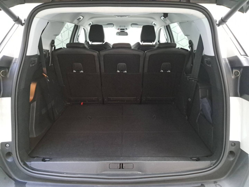 2 sièges escamotables et extractibles pour les passagers du 3ème rang / 3 sièges AR indépendants, coulissants, inclinables et escamotables dans le plancher, pour les passagers du 2ème rang / Accès et démarrage mains libres / Accoudoir central AV à ouverture papillon, avec compartiment de rangement éclairé et réfrigérable / Airbags frontaux conducteur et passager adaptatifs (passager neutralisable par clé), airbags latéraux conducteur et passager AV.airbags rideaux de tête aux places AV/AR / Appuis-tête à sécurité optimisée réglables en hauteur sur les sièges conducteur et passager AV ainsi que sur les places latérales AR / Avertisseur de temps de conduite / Barres de toit longitudinales profilées / Boîte à gants floquée et éclairée / Calandre avec jonc périphérique et facettes chromés / Ceintures de sécurité 3 points à enrouleur (x2) au 3ème rang / Ceintures de sécurité 3 points à enrouleur (x3) au 2ème rang, avec prétensionneurs et limiteurs d'effort aux places latérales / Ceintures de sécurité AV 3 points à enrouleur, réglables en hauteur avec prétensionneurs et limiteurs d'effort / Commande de verrouillage à distance (2 plips) / Console centrale AV avec 2 porte-gobelets / Contrôle dynamique de stabilité CDS avec antipatinage électronique ASR / Coques de rétroviseurs couleur carrosserie / Décors de planche de bord et panneaux de portes en maille "Brumeo" / Détection de sous-gonflage indirecte / Direction assistée électrique, colonne de direction réglable en hauteur et profondeur (mécanique) / Eclairage intérieur à LED: plafonniers / Ecran tactile capacitif 8" et "Toggles Switches" et radio bi-tuner / Enjoliveur d'arc de pavillon en inox / Enjoliveur de seuil d'entrée de coffre chromé / Enjoliveur en inox sur les protecteurs de bas de portes / Essuie-vitre AR avec enclenchement automatique en marche AR / Essuie-vitre AV avec système de lavage "Magic Wash" / Fixations pour 3 sièges enfants suivant norme ISOFIX aux places du 2ème rang / Fonction DAB (Radio Numérique Terrestre) / Fonction "Mirror Screen" / Frein de stationnement électrique avec aide au démarrage en pente / Indicateur de rapport conseillé / Inserts d'ailes AV chromés / Jantes alliage 18" "Detroit" bi-ton diamantées / Kit de dépannage de pneumatique : compresseur 12 volts, flacon de produit de colmatage, anneau de remorquage, deux cales de roue, manivelle de frein de stationnement électrique / Lève-vitres AR électriques et séquentiels avec antipincement / Lève-vitres AV électriques et séquentiels avec antipincement / Lunette AR chauffante avec antennes sérigraphiées / Navigation connectée 3D avec reconnaissance vocale / Nouveau PEUGEOT i-Cockpit avec dalle numérique tête haute / Pack City 1 / Pack Eclairage d'ambiance / Pack Enfants / Pack Safety Plus / Pack Visibilité / Passages de roues rapportés noirs / Peugeot Connect : Navigation 3D connectée avec reconnaissance vocale, abonnement de 3 ans inclus aux aux services de Navigation connectée TomTom, SOS & Assistance, Teleservices / Plafonnier AV avec spots de lecture (x2) et plafonniers à extinction temporisée aux 2ème et 3ème rangs / Poches/filets aumonières au dos des sièges AV / Poignées de maintien (x4) rétractables avec frein (crochets pour cintres aux places AR) / Poignées de portes couleur carrosserie / Prise 12 V (x3 : zone connectique, AR de console et coffre) / Prise USB (dans la zone connectique) / Projecteurs halogènes à l'AV avec feux diurnes à LED / Radio 6 HP, bi-tuner compatible MP3 et connectivité Bluetooth (audio streaming, kit mains libres), avec commandes au volant, écran tactile capacitif 8" / Rétroviseurs indéxés à la marche AR / Rideaux pare-soleil (x2) pour les passagers du 2ème rang / Sabots de pare-chocs AV gris métallisé / Sécurité enfants électrique des vitres AR / Sellerie TEP & Tissu "Piedimonte" ou "Evron" / Siège conducteur à réglage lombaire manuel / Siège passager AV mécanique avec mise en tablette / Siège passager AV mécanique réglable en hauteur / Spots de lecture (x2) aux 2ème et 3ème rangs / Système d'antiblocage des roues ABS avec répartiteur électronique de freinage REF et assistance au freinage d'urgence AFU / Tablettes aviation aux dos des sièges du rang 1 / Teinte opaque Blanc Banquise / Trappes de rangement (x2) aux pieds des passagers du 2ème rang / Vitres latérales AR et lunette AR surteintées / Volant Cuir pleine fleur