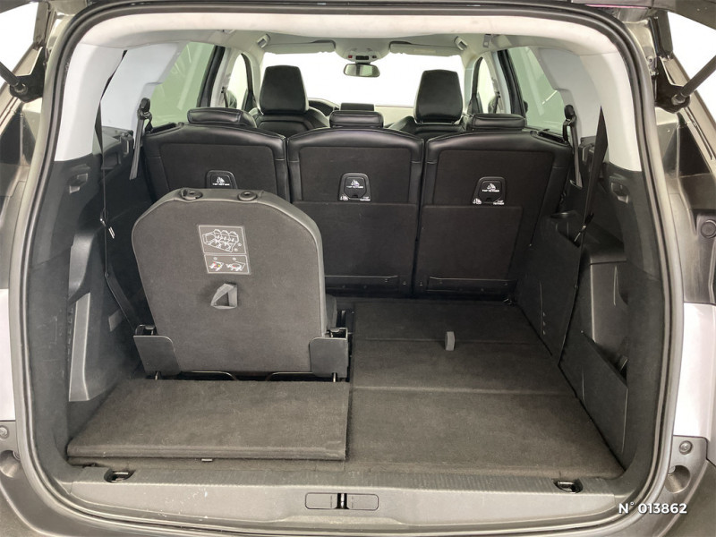 Enjoliveur d'arc de pavillon en inox / Inserts d'ailes AV chromés / Pack Safety Plus / Enjoliveur en inox sur les protecteurs de bas de portes / Sabots de pare-chocs AV gris métallisé / Décors de planche de bord et panneaux de portes en maille "Brumeo" / Pack Eclairage d'ambiance / Appuis-tête à sécurité optimisée réglables en hauteur sur les sièges conducteur et passager AV ainsi que sur les places AR / Ceintures de sécurité AV 3 points à enrouleur, réglables en hauteur avec prétensionneurs et limiteurs d'effort / Contrôle dynamique de stabilité CDS avec antipatinage électronique ASR / Indicateur de rapport conseillé / Sécurité enfants électrique des vitres AR / Passages de roues rapportés noirs / Accoudoir central AV à ouverture papillon, avec compartiment de rangement éclairé et réfrigérable / Boîte à gants floquée et éclairée / Console centrale AV avec 2 porte-gobelets / Direction assistée électrique, colonne de direction réglable en hauteur et profondeur (mécanique) / Essuie-vitre AV avec système de lavage "Magic Walsh" / Essuie-vitre AR avec enclenchement automatique en marche AR / Lunette AR chauffante avec antennes sérigraphiées / Poches/filets aumonières au dos des sièges AV / Airbags frontaux conducteur et passager adaptatifs (passager neutralisable par clé), airbags latéraux conducteur et passager AV, airbags rideaux de tête aux places AV et AR / Ceintures de sécurité 3 points à enrouleur (x3) au 2ème rang, avec prétensionneurs et limiteurs d'effort aux places latérales / Ceintures de sécurité 3 points à enrouleur (x2) au 3ème rang / Poignées de maintien (x4) rétractables avec frein (crochets pour cintres aux places AR) / Prise USB (dans la zone connectique) / Prise 12V (x3 : zone connectique, AR de console et coffre) / Jantes alliage 18" "Los Angeles" avec pneumatiques Mud and Snow (boue et neige) / Aide graphique et sonore au stationnement AR / Air conditionné automatique bi-zone avec aérateurs aux places AR / Décors intérieurs (baguettes de planche de bord et panneaux de portes, enjoliveur de console) chromés / Boîtiers de rétroviseurs extérieurs chromés / Calandre avec jonc périphérique et ailettes chromés / Enjoliveur de seuil d'entrée de coffre chromé / "Toggle Switches" chromés (touches 'piano' d'activation des fonctions de l'écran tactile) / Eclairage intérieur à LED : plafonniers, rangements, coffre / Nouveau Peugeot i-Cockpit : combiné tête haute numérique reconfigurable et volant compact multi-fonctions / Pack Visibilité / Plafonnier AV avec spots de lecture (x2) et plafonniers à extinction temporisée aux 2ème et 3ème rangs / Spots de lecture (x2) aux 2ème et 3ème rangs / Trappes de rangement (x2) aux pieds des passagers du 2ème rang / Siège passager AV mécanique réglable en hauteur / Siège passager AV mécanique avec mise en tablette / 3 sièges AR indépendants, coulissants, inclinables et escamotables dans le plancher, pour les passagers du 2ème rang / 2 sièges escamotables et extractibles pour les passagers du 3ème rang / Radio 6 HP, bi-tuner compatible MP3 et connectivité Bluetooth (audio streaming, kit mains libres), avec commandes au volant, écran tactile capacitif 8" / Lève-vitres AR électriques et séquentiels avec antipincement / Sérigraphie sur montants de portes / Commande de verrouillage à distance (2 plips) / Rideaux pare-soleil (x2) pour les passagers du 2ème rang / Fixations pour 3 sièges enfants suivant norme ISOFIX aux places du 2ème rang / Kit de dépannage de pneumatique : compresseur 12 volts, flacon de produit de colmatage, anneau de remorquage, deux cales de roue, manivelle de frein de stationnement électrique / Projecteurs halogènes à l'AV avec feux diurnes à LED / Système d'antiblocage des roues ABS avec répartiteur électronique de freinage REF et assistance au freinage d?urgence AFU / Barres de toit longitudinales profilée en Aluminium / Volant Cuir pleine fleur / Détection de sous-gonflage indirecte / Seuils de portes AV en Inox / Surtapis AV et AR / Tablettes aviation aux dos des sièges du rang 1 / Advanced Grip Control / Lève-vitres AV électriques et séquentiels avec antipincement / Siège conducteur à réglage lombaire manuel / Frein de stationnement électrique avec aide au démarrage en pente / Vitres latérales AR et lunette AR surteintées / Pack City 1 / Visiopark 1 / Toit "Black Diamond" (toit Noir Perla Nera) / Accès et démarrage mains libres / Fonction "Mirror Screen" / Peugeot Connect / Avertisseur de temps de conduite