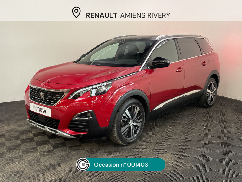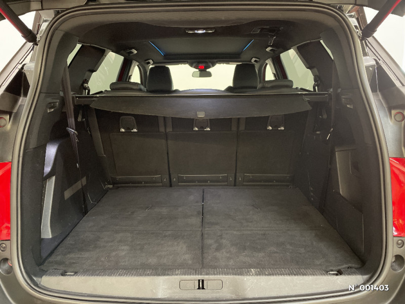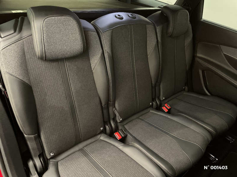 Contrôle dynamique de stabilité CDS avec antipatinage électronique ASR / Indicateur de rapport conseillé / Système d'antiblocage des roues ABS avec répartiteur électronique de freinage REF et assistance au freinage d?urgence AFU / Sécurité enfants électrique des vitres AR / Passages de roues rapportés noirs / Accoudoir central AV à ouverture papillon, avec compartiment de rangement éclairé et réfrigérable / Boîte à gants floquée et éclairée / Accès et démarrage mains libres / Détection de sous-gonflage indirecte / Coques de rétroviseurs extérieurs Noir Perla Nera / Surtapis AV et AR / Tablettes aviation aux dos des sièges du premier rang / Projecteurs "Peugeot Full Led Technology" / Pack City 1 / Peinture Opaque Blanc Banquise / Toit "Black Diamond" (toit Noir Perla Nera) / Navigation connectée 3D avec reconnaissance vocale / Avertisseur de temps de conduite / Calandre avec jonc périphérique et facettes chromés / Enjoliveur d'arc de pavillon en inox / Nouveau PEUGEOT i-Cockpit avec dalle numérique tête haute / Inserts d'ailes AV chromés / Pack Safety Plus / Jantes alliage 18" "Detroit" bi-ton diamantées / Enjoliveur en inox sur les protecteurs de bas de portes / Sabots de pare-chocs AV gris métallisé / Décors de planche de bord et panneaux de portes en maille "Brumeo" / Pack Eclairage d'ambiance / Bouclier AV exclusif et calandre à damier chromé / Canules d'echappement de style chromées / Jonc de vitres en inox / Habitacle et ciel de pavillon Noir Mistral / Volant Cuir pleine fleur perforé avec bagues chromées et badge GT Line / Appuis-tête à sécurité optimisée réglables en hauteur sur les sièges conducteur et passager AV ainsi que sur les places AR / Ceintures de sécurité AV 3 points à enrouleur, réglables en hauteur avec prétensionneurs et limiteurs d'effort / Console centrale AV avec 2 porte-gobelets / Direction assistée électrique, colonne de direction réglable en hauteur et profondeur (mécanique) / Essuie-vitre AV avec système de lavage "Magic Walsh" / Essuie-vitre AR avec enclenchement automatique en marche AR / Lunette AR chauffante avec antennes sérigraphiées / Poches/filets aumonières au dos des sièges AV / Poignées de maintien (x4) rétractables avec frein (crochets pour cintres aux places AR) / Prise USB (dans la zone connectique) / Prise 12V (x3 : zone connectique, AR de console et coffre) / Commande de verrouillage à distance (2 plips) / Rideaux pare-soleil (x2) pour les passagers du 2ème rang / Airbags frontaux conducteur et passager adaptatifs (passager neutralisable par clé), airbags latéraux conducteur et passager AV, airbags rideaux de tête aux places AV et AR / Ceintures de sécurité 3 points à enrouleur (x3) au 2ème rang, avec prétensionneurs et limiteurs d'effort aux places latérales / Ceintures de sécurité 3 points à enrouleur (x2) au 3ème rang / Fixations pour 3 sièges enfants suivant norme ISOFIX aux places du 2ème rang / Kit de dépannage de pneumatique : compresseur 12 volts, flacon de produit de colmatage, anneau de remorquage, deux cales de roue, manivelle de frein de stationnement électrique / Peugeot Connect : Navigation 3D connectée avec reconnaissance vocale, abonnement de 3 ans inclus aux aux services de Navigation connectée TomTom, SOS & Assistance, Teleservices / Teinte opaque Blanc Banquise / Poignées de portes couleur carrosserie / Lève-vitres AV électriques et séquentiels avec antipincement / Enjoliveur de seuil d'entrée de coffre chromé / Eclairage intérieur à LED : plafonniers, rangements, coffre / Pack Visibilité / Plafonnier AV avec spots de lecture (x2) et plafonniers à extinction temporisée aux 2ème et 3ème rangs / Spots de lecture (x2) aux 2ème et 3ème rangs / Trappes de rangement (x2) aux pieds des passagers du 2ème rang / Siège passager AV mécanique réglable en hauteur / Siège passager AV mécanique avec mise en tablette / 3 sièges AR indépendants, coulissants, inclinables et escamotables dans le plancher, pour les passagers du 2ème rang / 2 sièges escamotables et extractibles pour les passagers du 3ème rang / Fonction "Mirror Screen" / Radio 6 HP, bi-tuner compatible MP3 et connectivité Bluetooth (audio streaming, kit mains libres), avec commandes au volant, écran tactile capacitif 8" / Lève-vitres AR électriques et séquentiels avec antipincement / Seuils de porte AV aluminium / Pack Enfants / Driver Sport Pack / Barres de toit longitudinales profilées / Ecran tactile capacitif 8" et "Toggles Switches" et radio bi-tuner / Fonction DAB (Radio Numérique Terrestre) / Peugeot Connect / Sellerie TEP & Tissu "Imila" avec médaillons de portes AV en injecté / Rétroviseurs indéxés à la marche AR / Siège conducteur à réglage lombaire manuel / Frein de stationnement électrique avec aide au démarrage en pente / Vitres latérales AR et lunette AR surteintées