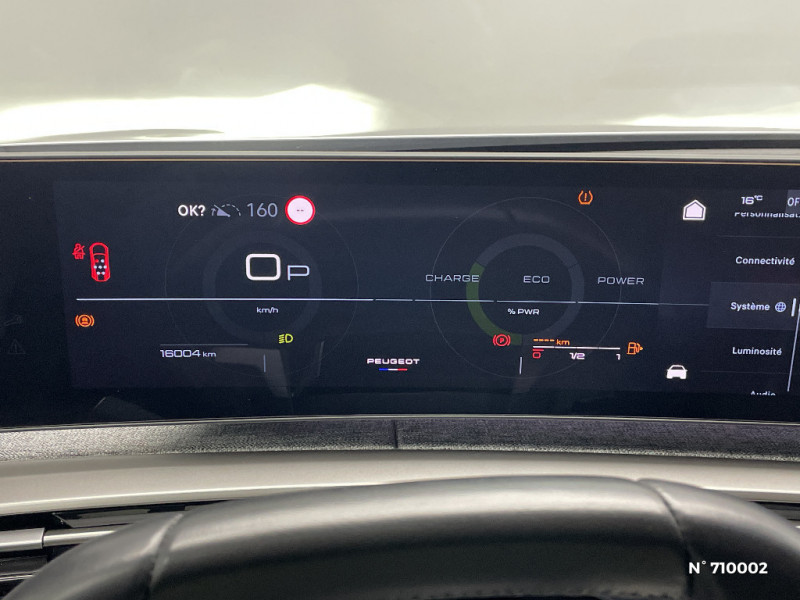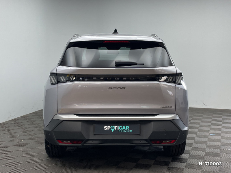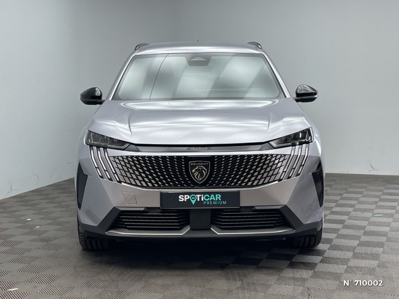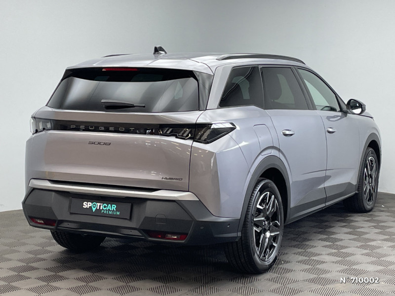 PEUGEOT i-Connect - Radio DAB, Bluetooth (connexion 2 téléphones), Mirror Screen sans fil (Apple CarPlay / Android Auto), Peugeot Connect SOS & Assistance, 1 prise USB C (Data & charge) - Connect One (Abonnement 10 ans inclus) - Connect Plus (Abonnement 6 mois inclus) / Accès et démarrage mains libres Proximity 2 Télécommandes 3 boutons (verrouillage, coffre, déverrouillage) / Projecteurs Peugeot LED Technology / Rétroviseur intérieur électrochrome / Rétroviseurs extérieurs dégivrants avec réglage et rabattement électriques, éclairage de seuil / Sellerie tissu CRISPY embossé, accompagnement TEP Isabella, écharpe tissu RIMINI chiné, surpiqûres Quartz / Visiopark 1: caméra de recul HD & aide au stationnement AR, graphique et sonore / Vitres AR, vitres de custode et lunette AR surteintées / Volant compact croûte de cuir avec commandes intégrées Noir laqué, décors Gris Stène / 3 prises 12 V (Console centrale, rang 2, coffre) / 4 poignées de maintien rétractables / 6 airbags: Frontaux conducteur et passager (passager neutralisable par clé), latéraux conducteur et passager AV (thorax et bassin), rideaux aux places AV et AR (tête et thorax) / 6 HP (2 tweeters et 2 woofers à l'AV et 2 larges bandes à l'AR) / Bandeau entre les feux AR Noir laqué avec lettrage PEUGEOT / Bandeau entre les projecteurs Noir laqué avec logo 5008 / Banquette rang 2 coulissante 60/40, avec dossiers inclinables et rabattables 40/20/40, avec fonction Easy Access aux places du rang 3 / Banquette 2 places au rang 3 avec dossiers rabattables 50/50 / Boîte de vitesse automatique, séquentielle (7 rapports) / Câble de recharge T2 mode 2 (10 A / 2,3 kW) / Calandre couleur caisse, écopes latérales Noir laqué, décor inférieur Gris Méteor / Chargeur embarqué 3,7 kW / Détection de sous-gonflage indirecte / Eclairage intérieur Plafonnier AV et liseuses AR à LED, Boite à gants et rangement de console éclairés à LED, Eclairage des caves à pieds AV à LED / Eléments de style intérieure Planche de bord moussée avec décor tissu RIMINI chiné et alcôve Graphène, façade et aérateurs Noir laqué avec décor Gris Stène, Panneaux de portes avec décor tissu RIMINI chiné, alcôve Graphène et jonc Gris Stène, accoudoirs TEP Isabella, surpiqûres Quartz à l'AV, Console centrale avec décor tissu RIMINI chiné, façade Noir laqué et jonc Gris Stène, accoudoir tissu RIMINI chiné / Enjoliveurs de passages de roues et protections inférieures de portes Noir grainé / Essuie-vitre AV à déclenchement automatique / Frein de stationnement électrique / Habitacle et ciel de pavillon Noir / Jantes alliage 19'' diamantées LULEA Noir Orbital, vernis brillant / Jupe inférieure Noir grainé / Lécheurs de vitres masqués / Lève-vitres AV/AR électriques et séquentiels avec antipincement / Monogrammes AR 5008 et Plug-in / Monogrammes AV : blason PEUGEOT et 5008 / Pack Safety Plus Régulateur / Limiteur de vitesse, Freinage d'urgence automatique avec alerte risque de collision pilotée par caméra et radar, Alerte active de franchissement involontaire de ligne et bas côté, Reconnaissance étendue des panneaux de signalisation et préconisation de vitesse, Alerte attention conducteur par caméra / Pare chocs AR avec décor Gris Meteor / Pare-brise feuilleté acoustique / PEUGEOT i-Cockpit panoramique avec Double écran HD flottant (2 x 10'') / Plancher 1 position, rangement sous plancher