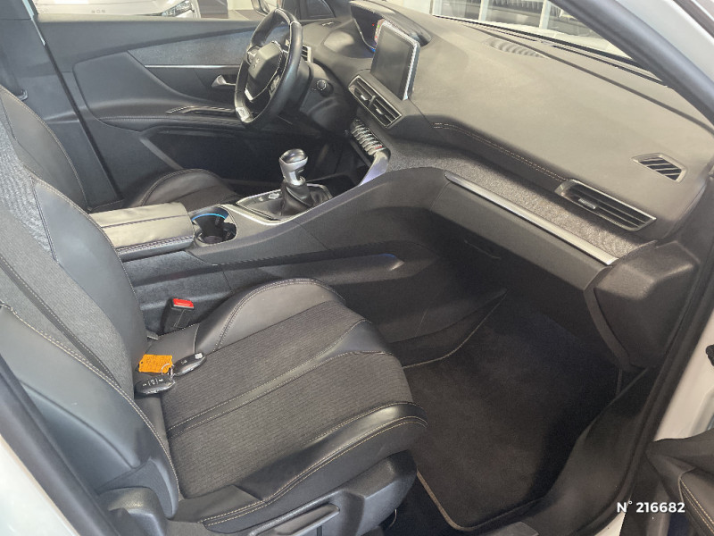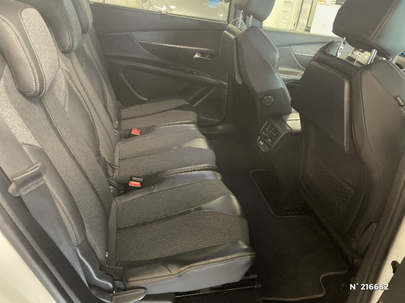 Détection de sous-gonflage indirecte / Pack Safety Plus / Enjoliveur en inox sur les protecteurs de bas de portes / Sabots de pare-chocs AV gris métallisé / Décors de planche de bord et panneaux de portes en maille "Brumeo" / Pack Eclairage d'ambiance / Jantes alliage 18" "Detroit" bi-ton diamantées vernis mat / Siège passager AV mécanique avec mise en tablette / 3 sièges AR indépendants, coulissants, inclinables et escamotables dans le plancher, pour les passagers du 2ème rang / 2 sièges escamotables et extractibles pour les passagers du 3ème rang / Vitres latérales AR et lunette AR surteintées / Plafonnier AV avec spots de lecture (x2) et plafonniers à extinction temporisée aux 2ème et 3ème rangs / Spots de lecture (x2) aux 2ème et 3ème rangs / Trappes de rangement (x2) aux pieds des passagers du 2ème rang / Sellerie TEP & Tissu "Imila" / Siège passager AV mécanique réglable en hauteur / Peugeot i-Cockpit Amplify : choix de 2 ambiances paramétrables / Rétroviseurs extérieurs rabattables électriquement avec éclairage d'accueil à LED inclut la fonction "Lion Spotlight" / Essuie-vitre AR avec enclenchement automatique en marche AR / Lunette AR chauffante avec antennes sérigraphiées / Poches/filets aumonières au dos des sièges AV / Poignées de maintien (x4) rétractables avec frein (crochets pour cintres aux places AR) / Prise USB (dans la zone connectique) / Prise 12V (x3 : zone connectique, AR de console et coffre) / Direction assistée électrique, colonne de direction réglable en hauteur et profondeur (mécanique) / Essuie-vitre AV avec système de lavage "Magic Wash" / Console centrale AV avec 2 porte-gobelets / Eclairage intérieur LED: plafonnier tactile 3 spots + 2 LEDs d'ambiance, 2 liseuses AR, pare-soleil, boîte à gants, accoudoir central, zone connectique, caves à pied, zone coffre (x2) / Nouveau Peugeot i-Cockpit : combiné tête haute numérique reconfigurable et volant compact multi-fonctions / Pack Visibilité / Enjoliveur d'arc de pavillon en inox / Tablettes aviation aux dos des sièges du rang 1 / Inserts d'ailes AV chromés / Surtapis AV et AR / Détection de sous-gonflage directe / Boîtiers de rétroviseurs extérieurs Noir Perla Nera / Enjoliveur de seuil d'entrée de coffre chromé / "Toggle Switches" chromés (touches 'piano' d'activation des fonctions de l'écran tactile) / Peinture Blanc Banquise / Pédalier et repose-pied conducteur aluminium / Barres de toit longitudinales profilée en Aluminium / Lève-vitres AV électriques et séquentiels avec antipincement / Fonction "Mirror Screen" / Peugeot Connect / Avertisseur de temps de conduite / Frein de stationnement électrique avec aide au démarrage en pente / Accoudoir central AV à ouverture papillon, avec compartiment de rangement éclairé et réfrigérable / Toit "Black Diamond" (toit Noir Perla Nera) / Accès et démarrage mains libres / Contrôle dynamique de stabilité CDS avec antipatinage électronique ASR / Indicateur de rapport conseillé / Sécurité enfants électrique des vitres AR / Calandre avec jonc périphérique chrome brillant et satiné, damier chromé et lettrage Peugeot noir / Siège conducteur à réglage lombaire manuel / Boîte à gants floquée et éclairée / Passages de roues rapportés noirs / Bacs de portes AV floqués / Projecteurs "Peugeot Full Led Technology" / Pack City 1 / Radio 6 HP, bi-tuner compatible MP3 et connectivité Bluetooth (audio streaming, kit mains libres), avec commandes au volant, écran tactile capacitif 8" / Lève-vitres AR électriques et séquentiels avec antipincement / Kit de dépannage de pneumatique : compresseur 12 volts, flacon de produit de colmatage, anneau de remorquage, deux cales de roue, manivelle de frein de stationnement électrique / Système d'antiblocage des roues ABS avec répartiteur électronique de freinage REF et assistance au freinage d?urgence AFU / Ceintures de sécurité AV 3 points à enrouleur, réglables en hauteur avec prétensionneurs et limiteurs d'effort / Ceintures de sécurité AV à enrouleur, réglables en hauteur avec prétensionneurs et limiteurs d'effort / Ceintures de sécurité 3 points à enrouleur (x3) au 2ème rang, avec prétensionneurs et limiteurs d'effort aux places latérales / Ceintures de sécurité 3 points à enrouleur (x2) au 3ème rang / Fixations pour 3 sièges enfants suivant norme ISOFIX aux places du 2ème rang / Air conditionné automatique bi-zone avec aérateurs aux places AR / Décors intérieurs (baguettes de planche de bord et panneaux de portes, enjoliveur de console) chromés / Commande de verrouillage à distance (2 plips) / Rideaux pare-soleil (x2) pour les passagers du 2ème rang / Airbags frontaux conducteur et passager adaptatifs (passager neutralisable par clé), airbags latéraux conducteur et passager AV, airbags rideaux de tête aux places AV et AR / Radio 6HP, compatible MP3 et connectivité Bluetooth (audio streaming, kit mains libres), avec commandes au volant / Aide graphique et sonore au stationnement AR / Seuils de portes AV en Inox / Canules d'echappement de style chromées / Jonc de vitres en inox / Habitacle et ciel de pavillon Noir Mistral / Planche de bord surpiquée / Volant Cuir pleine fleur perforé avec bagues chromées et badge GT Line / Appuis-tête à sécurité optimisée réglables en hauteur sur les sièges conducteur et passager AV ainsi que sur les places latérales AR